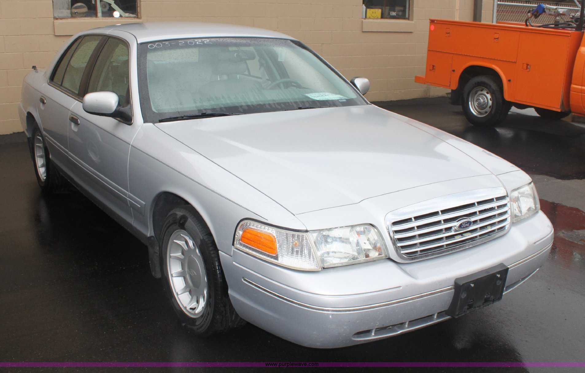 Purple Wave is selling a used Passenger Vehicle in Kansas. This item is a 2002 Ford Crown Victoria LX with the following: 114,052 miles on odometer, 4.6L V8 EFI engine, Automatic transmission, AC and heat, Rear defrost, AM/FM, Cruise, Power windows, seats, and mirrors, Adjustable brake pedal, Steering wheel controls, Split front seat, Paint faded and scratched, KDOT ID 003-2022