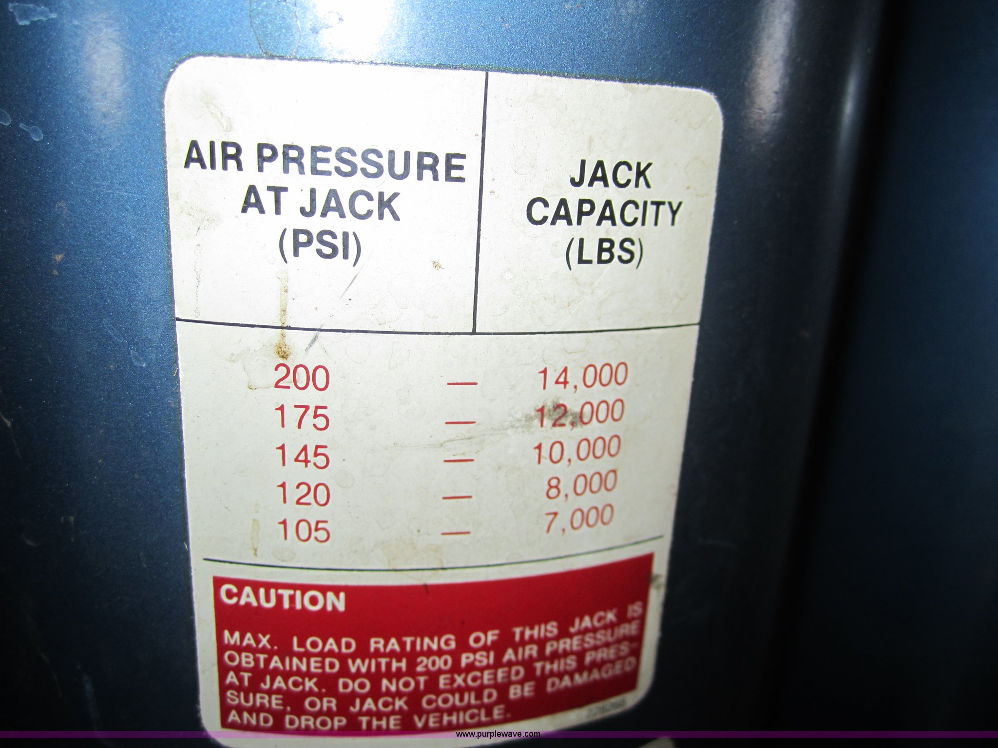 This 1981 Walker 63692 seven ton bumper jack will sell to the highest bidder regardless of price.