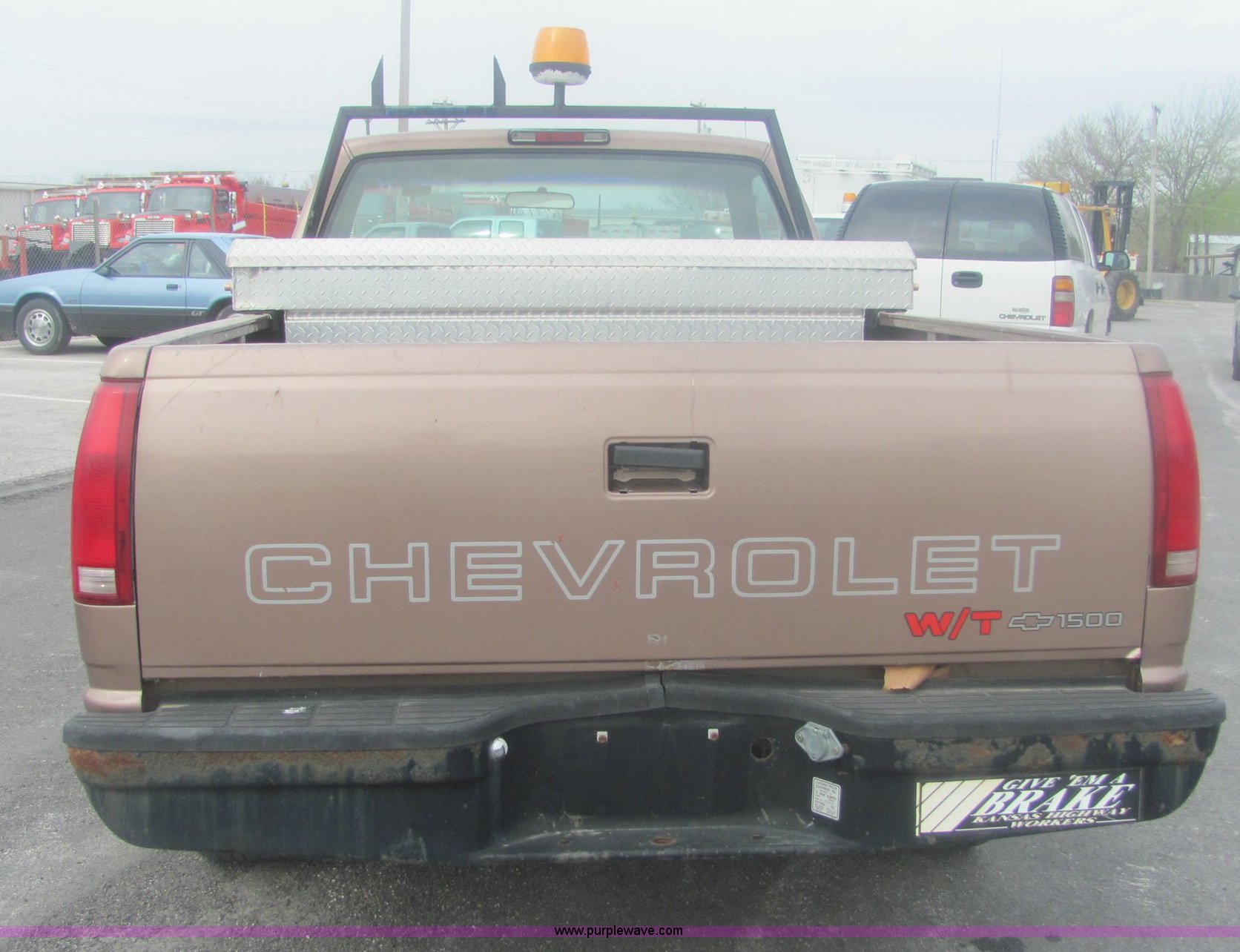 Purple Wave is selling a used Passenger Vehicle in Kansas. This item is a 1994 Chevrolet C1500 W/T pickup truck with the following: 145,200 miles on odometer, 4.3L V6 TBI engine, Automatic transmission, Aluminum cross bed toolbox, Paint faded and scratched, Some rust at cab corners, KDOT ID 052-4094