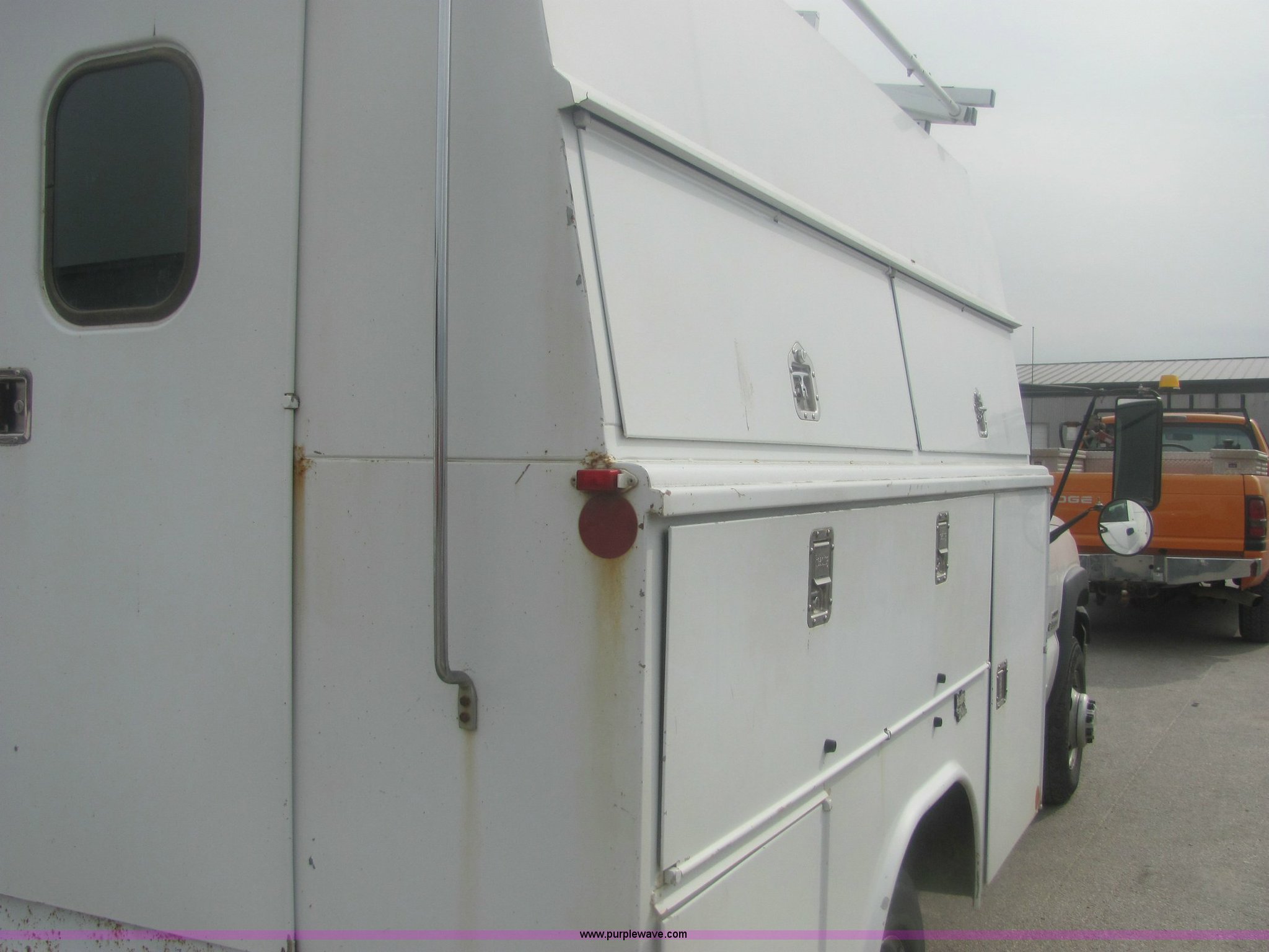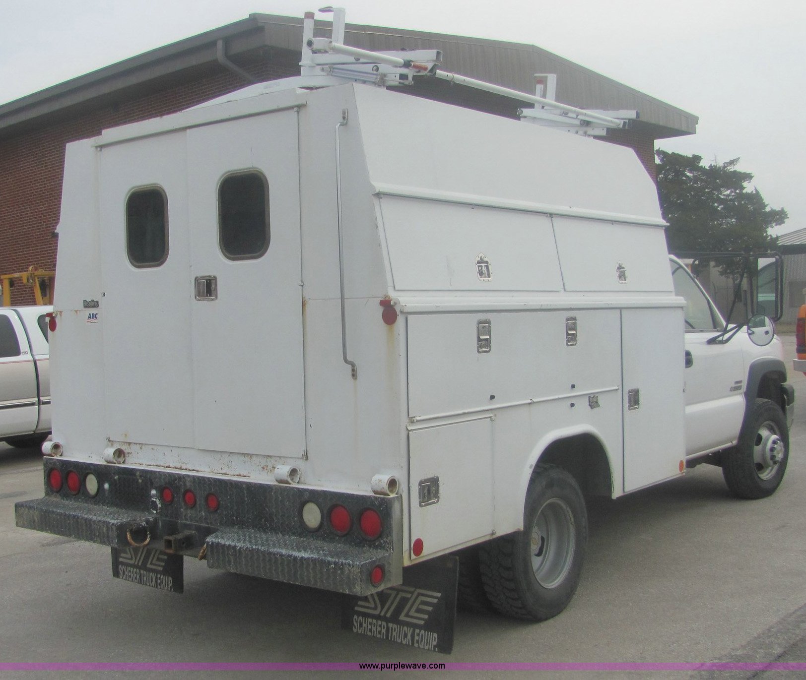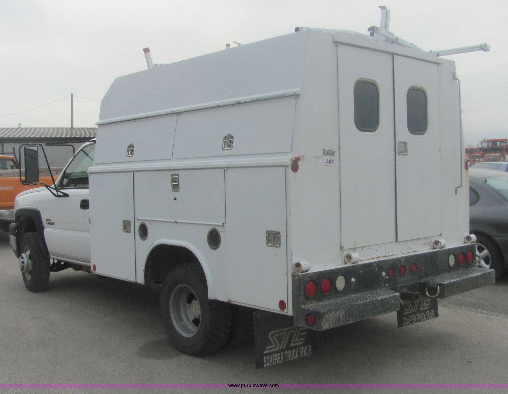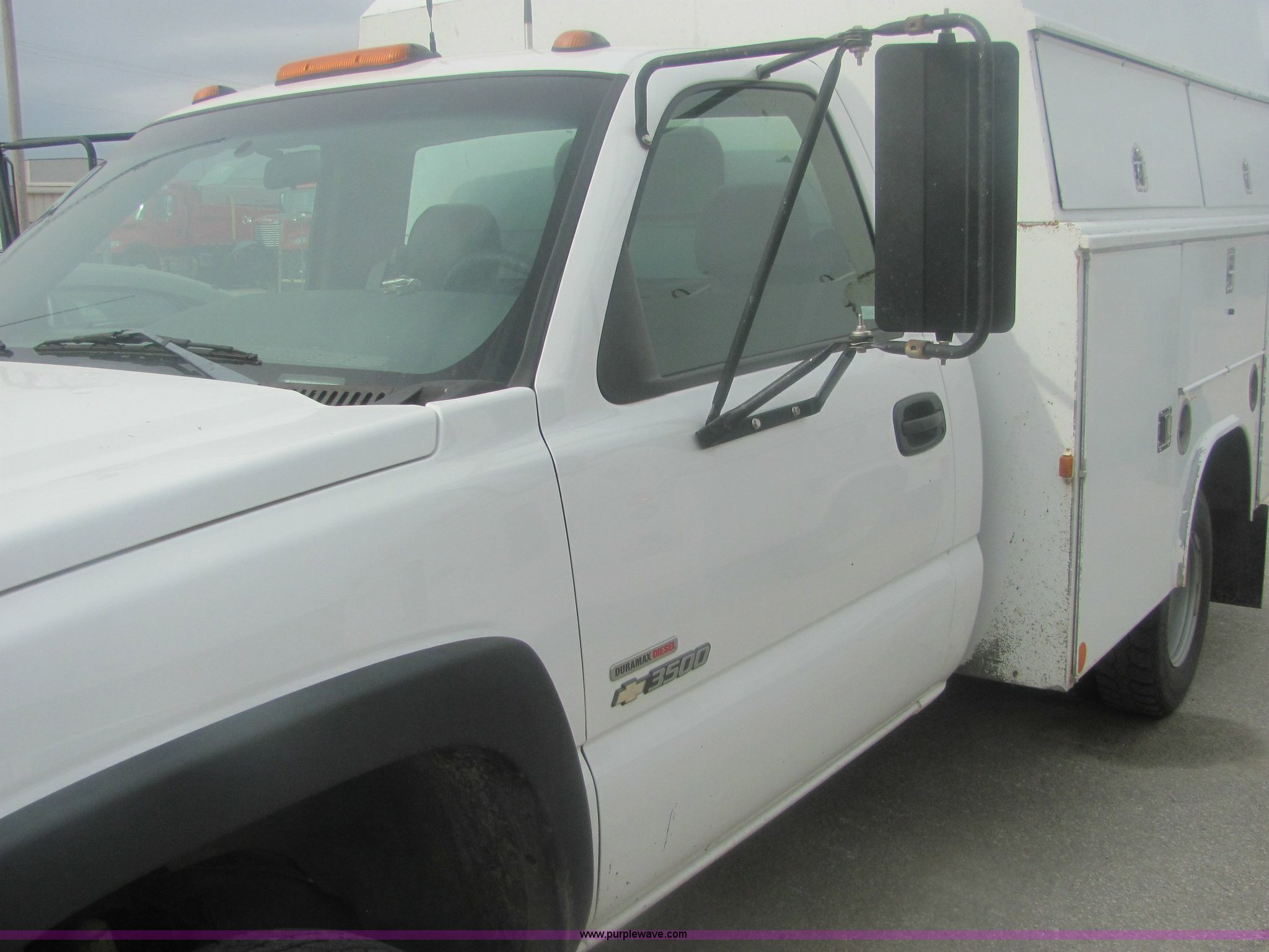 Purple Wave is selling a used Service Truck in Kansas. This item is a 2003 Chevrolet C3500 Silverado pickup truck with the following: 195,722 miles on odometer, Duramax 6.6L V8 diesel engine, Automatic transmission, Reading utility bed, Dually, Paint faded and scratched, Hood dented, KDOT ID 152-0013