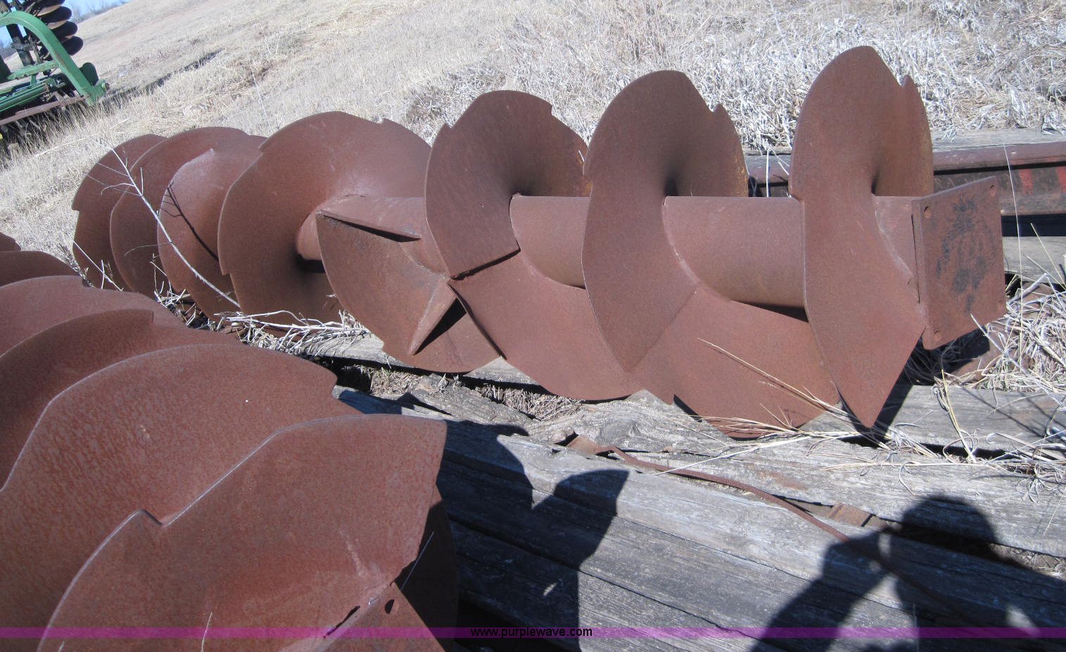 Purple Wave is selling a used Other Grain or Fertilizer Handling in Kansas. This item is a Feed wagon augers with the following: 10" x 10" end plates, 10.5" auger flighting, 14'L, (14) 10.5" auger sections, (6) 7" auger sections