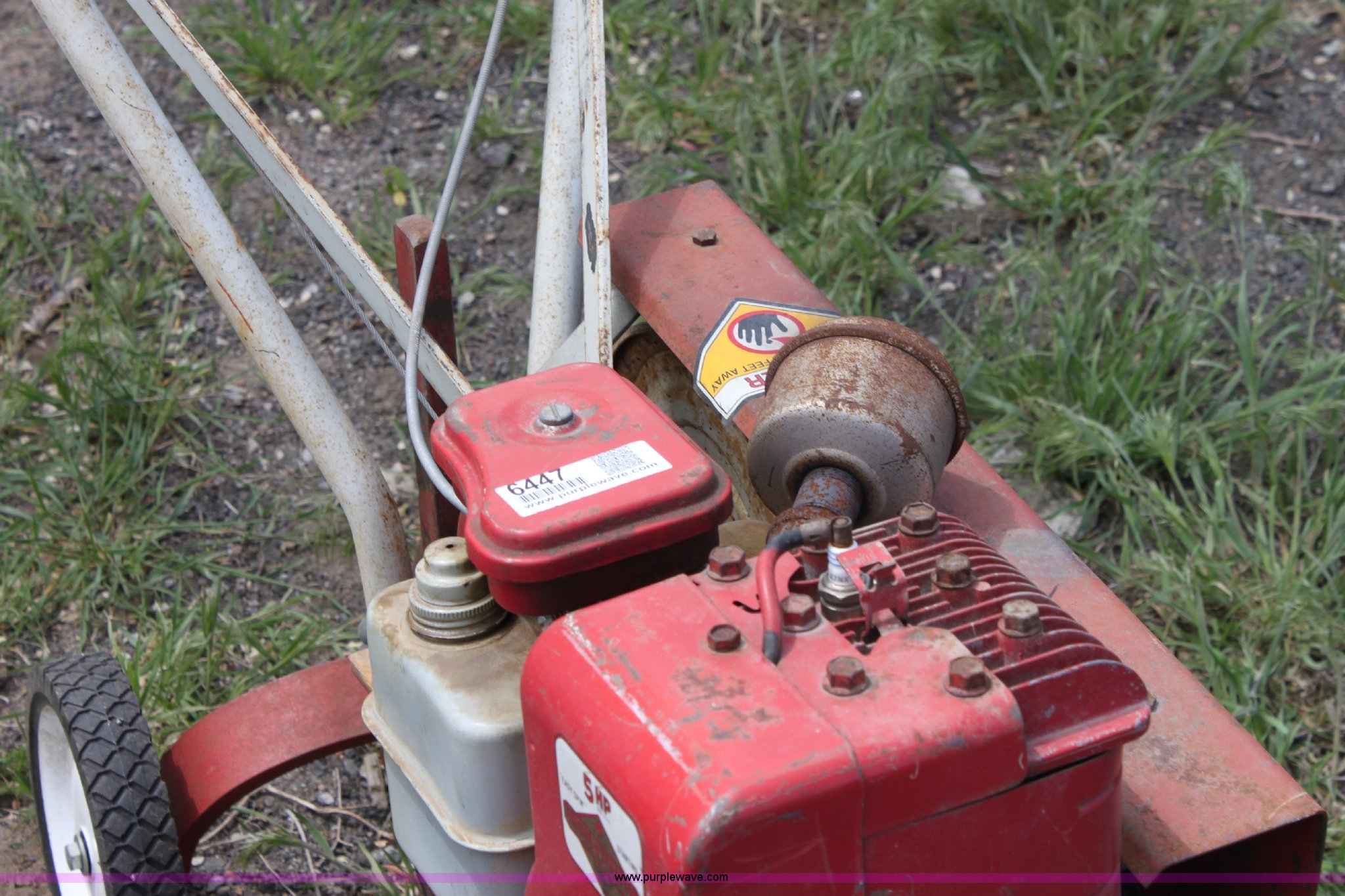 Purple Wave is selling a used Lawn and Garden in Kansas. This item is a Merry tiller front tine roto-tiller with the following: Briggs & Stratton 5 HP gas engine, ID 42F104