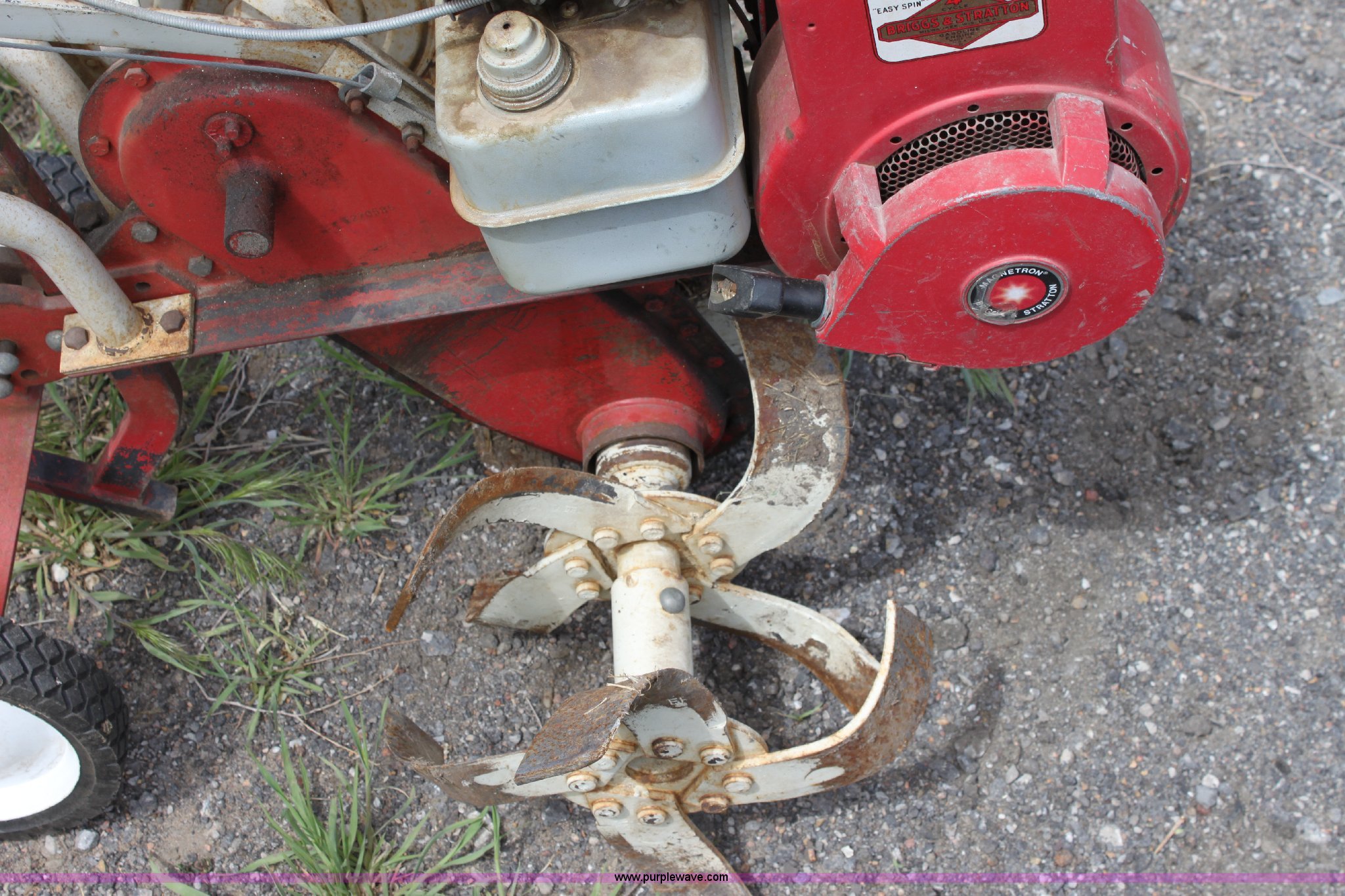 Merry tiller front tine roto-tiller. Briggs & Stratton 5 HP gas engine, ID 42F104. City of Wichita. 1801 S McLean, Central Maint. Facility. Wichita, KS 67213
