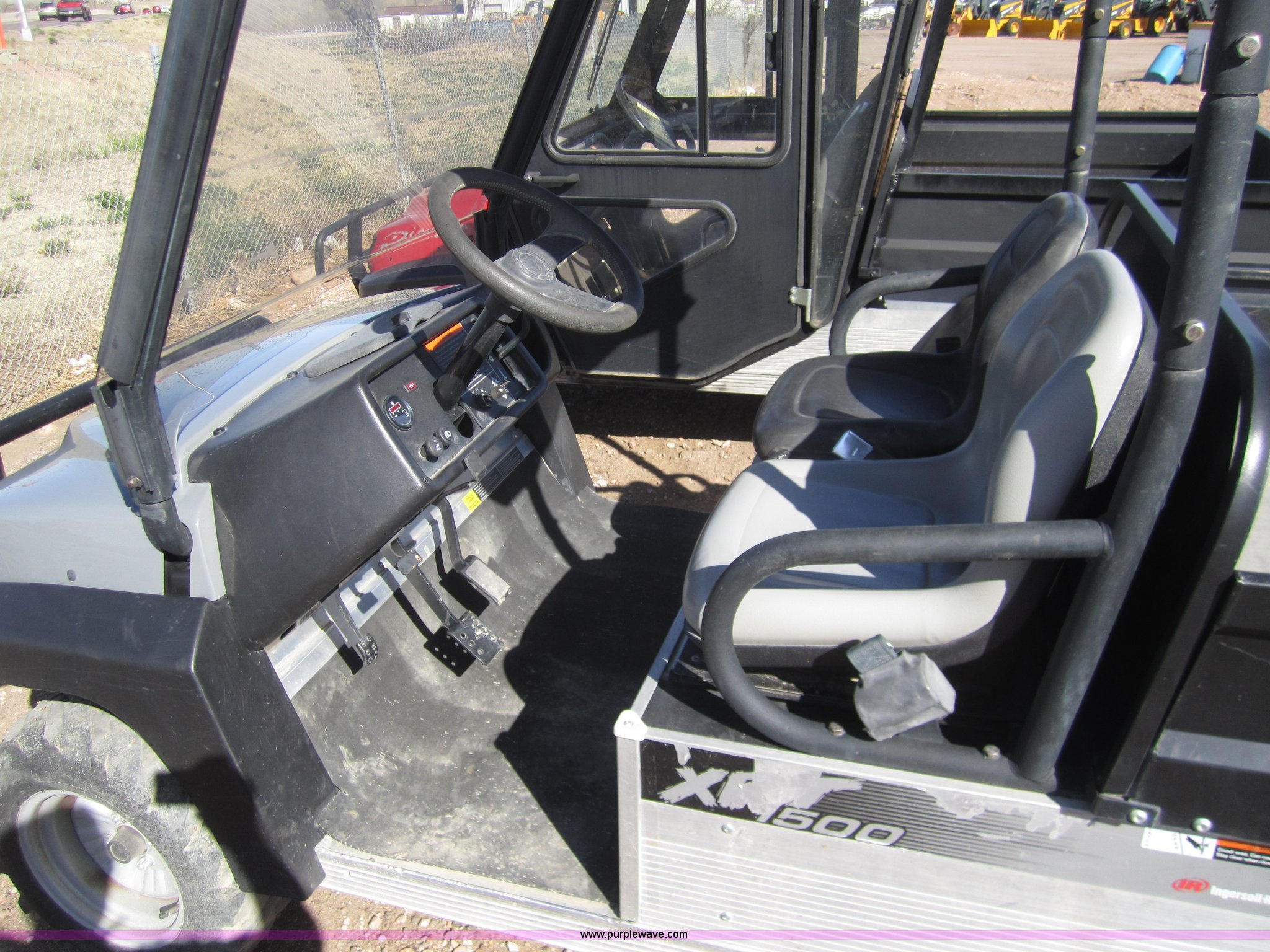 Purple Wave is selling a used Utility Vehicle in Colorado. This item is a Ingersoll Rand XRT 1500 utility cart with the following: 400 hours on meter, Four wheel drive, Electric dump bed, Windshield, Receiver hitch, 23x8.50-12 tires, Serial GP0550-580512, EIN 1400897