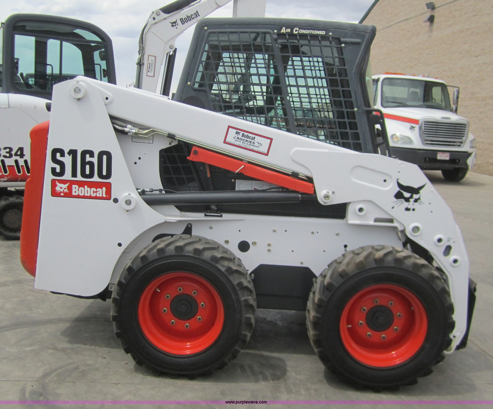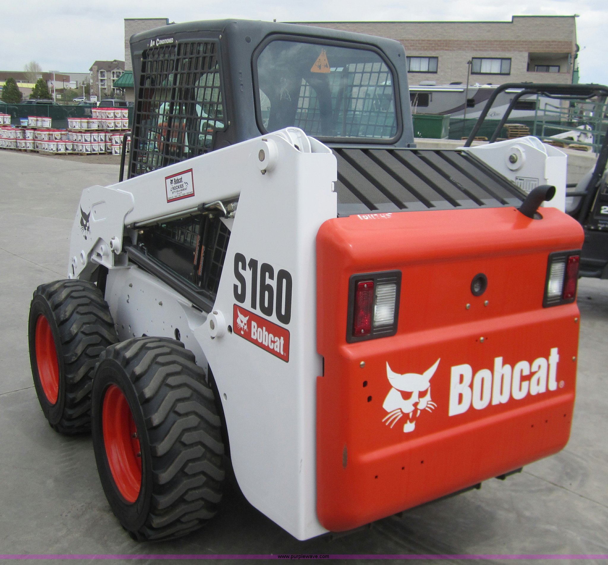 Purple Wave is selling a used Skid Steer Loader in Colorado. This item is a 2008 Bobcat S160 skid steer with the following: 204 hours on meter, Kubota V2003 four cylinder diesel engine, Enclosed cab with AC and heat, Joystick controls, Windshield wiper with fluid wash, Quick attach bucket, Auxiliary hydraulics with high flow connection, 10-16.5NHS tires, Serial 52991404, EIN 1011745
