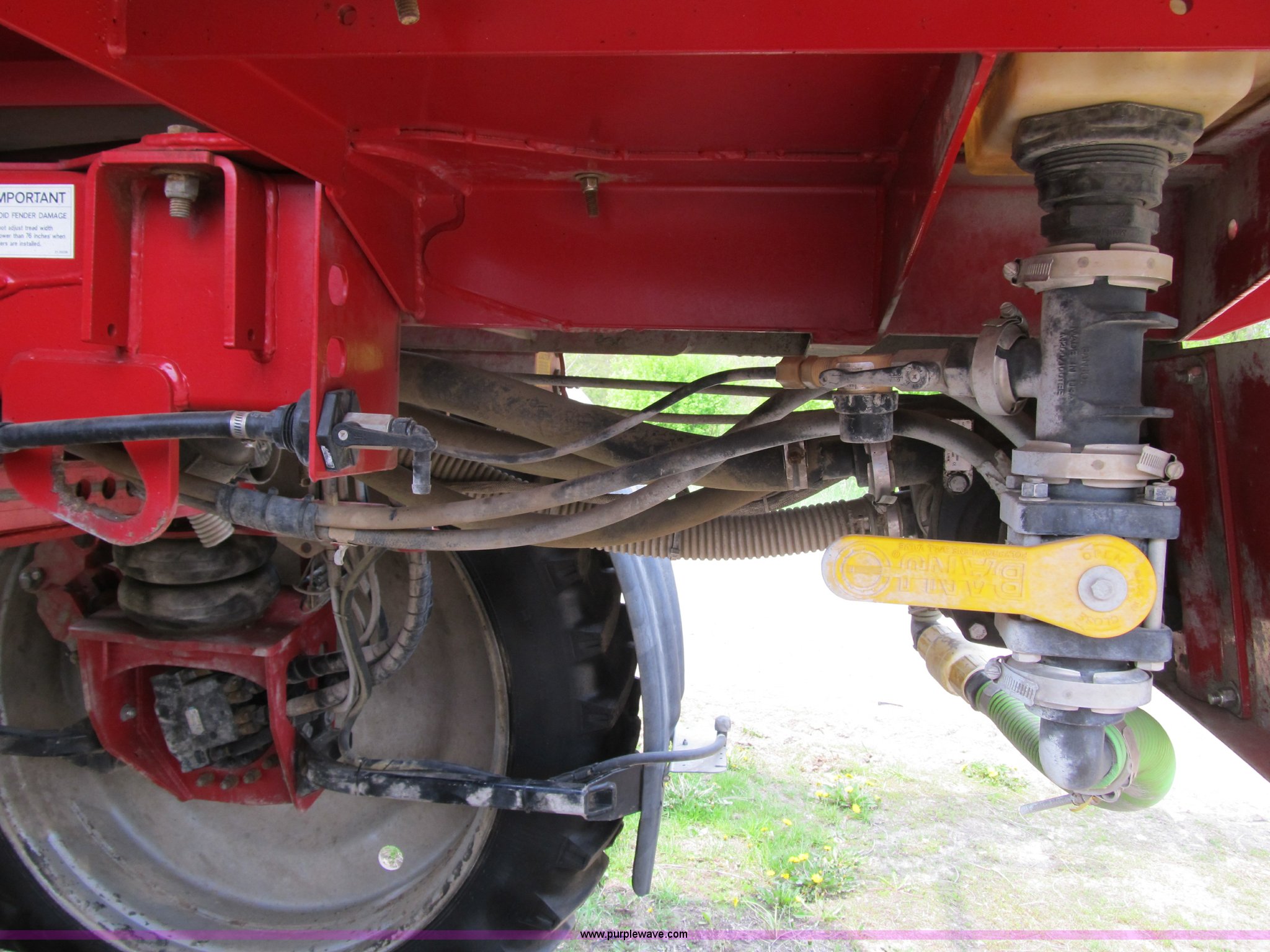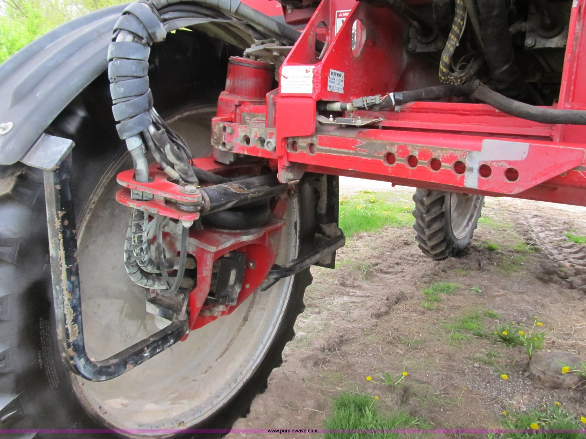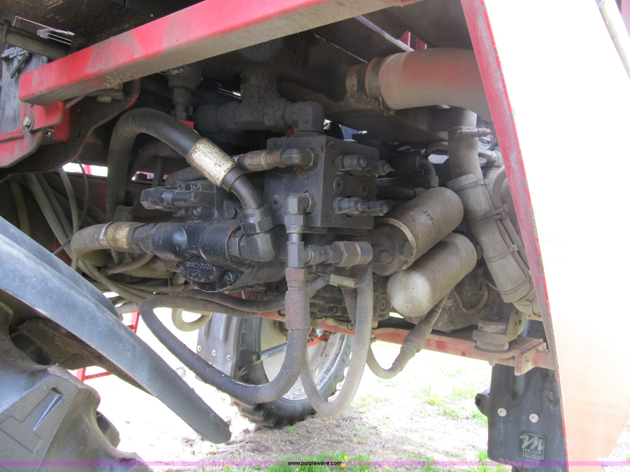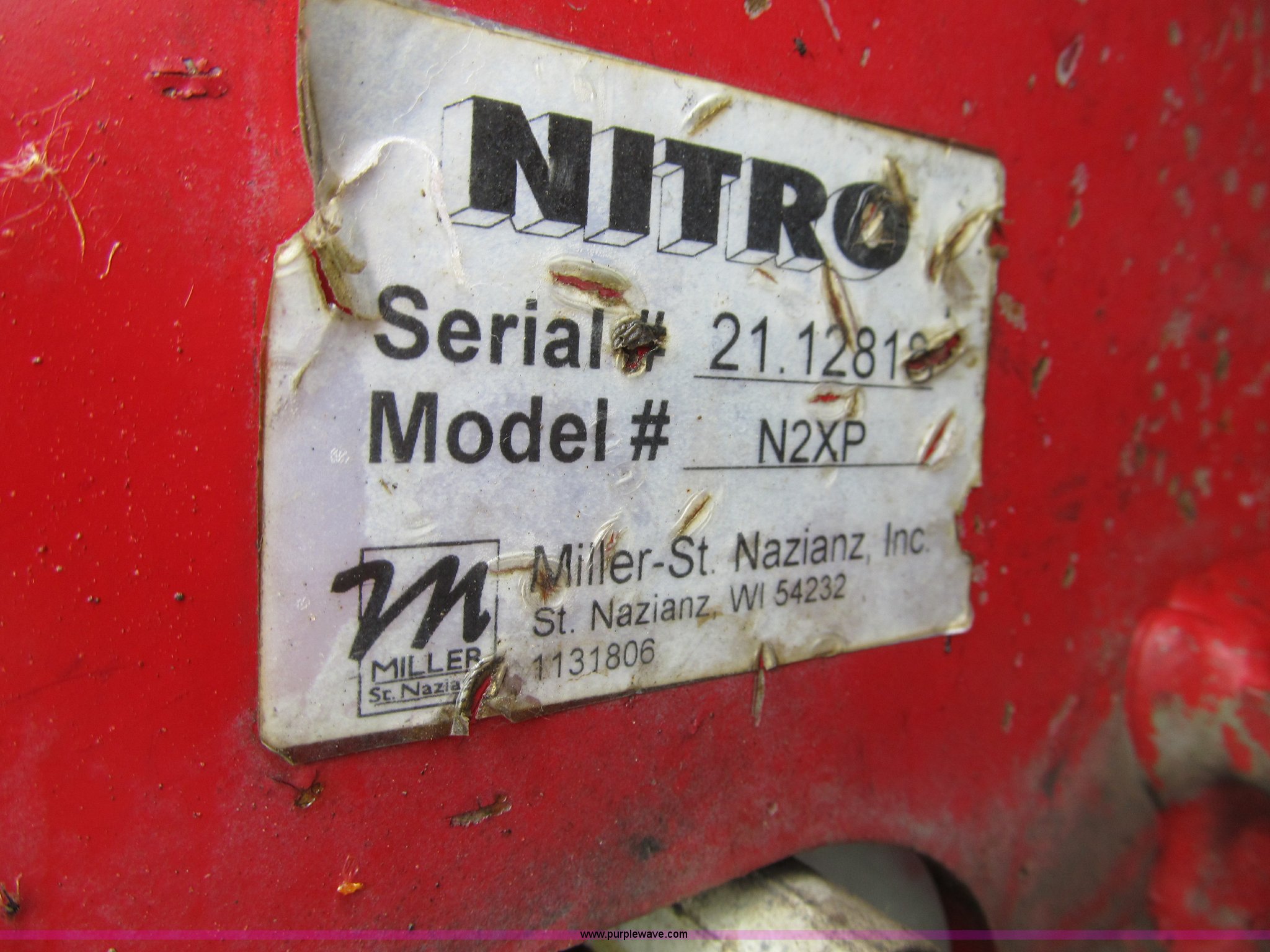Purple Wave is selling a used Applicator Self Propelled in Michigan. This item is a 2007 Miller Nitro N2XP self propelled sprayer with the following: 1,774 hours on meter, Cummins 215 HP diesel engine, Three speed hydrostat transmission, Firestone 320/90R50 tires, Approx. 50% tread, 800 gallon stainless steel tank, 100' boom width, (5) boom sections, Three-way nozzle bodies, 15" nozzle spacing, Richway poly foam marker, Chemical eductor, Poly rinse tank, Hydraulic transom, level, and fold, Hypro 9306 solution pump, Fence-row nozzles, Raven 450 monitor, 3" side fill, Poly fenders, Poly wheel motor shields, Air ride seat, AC, Radio, Tread adjust plates need replaced, Serial 21.12818