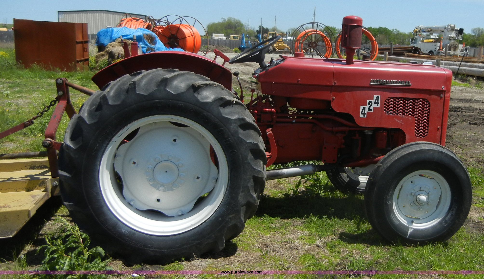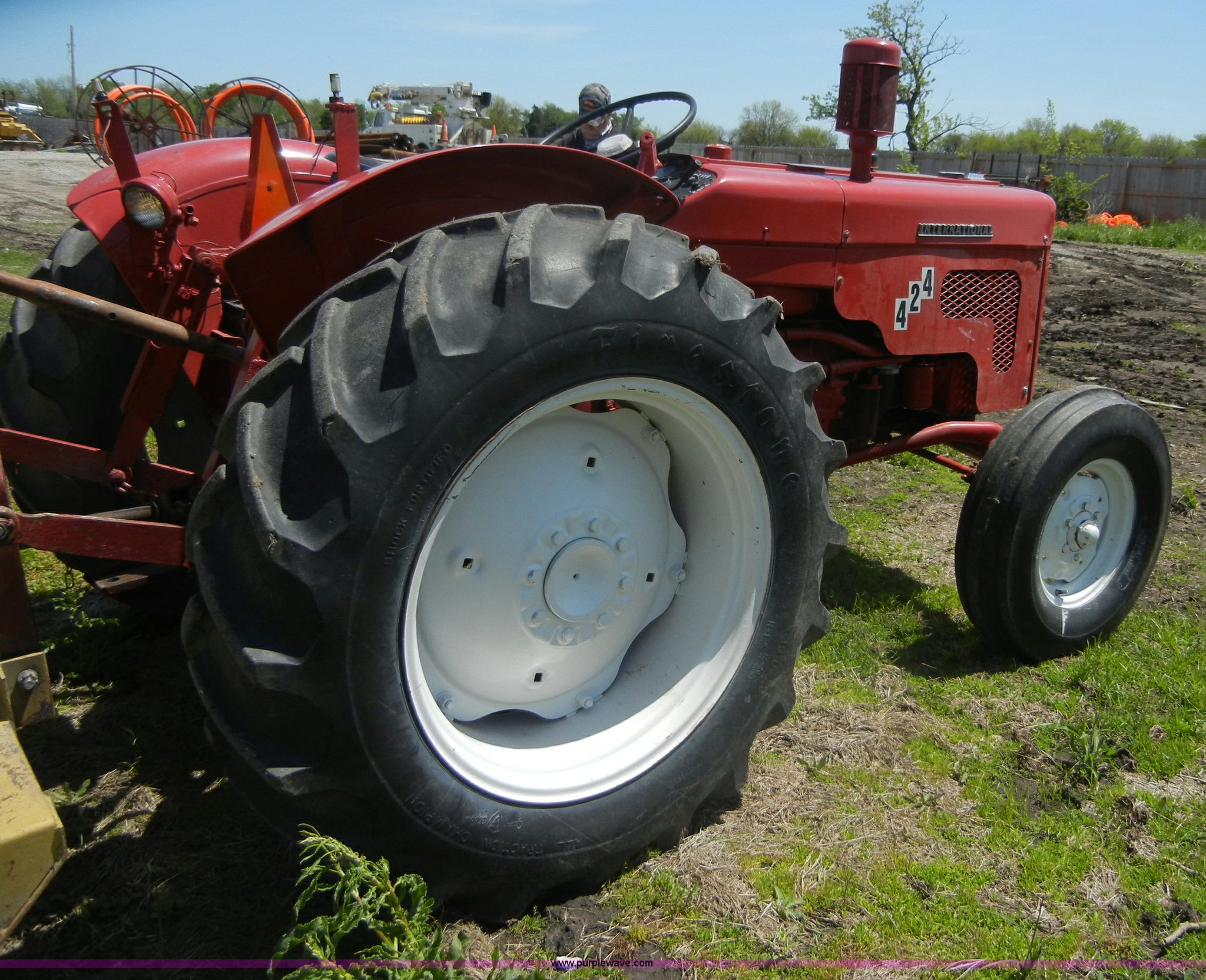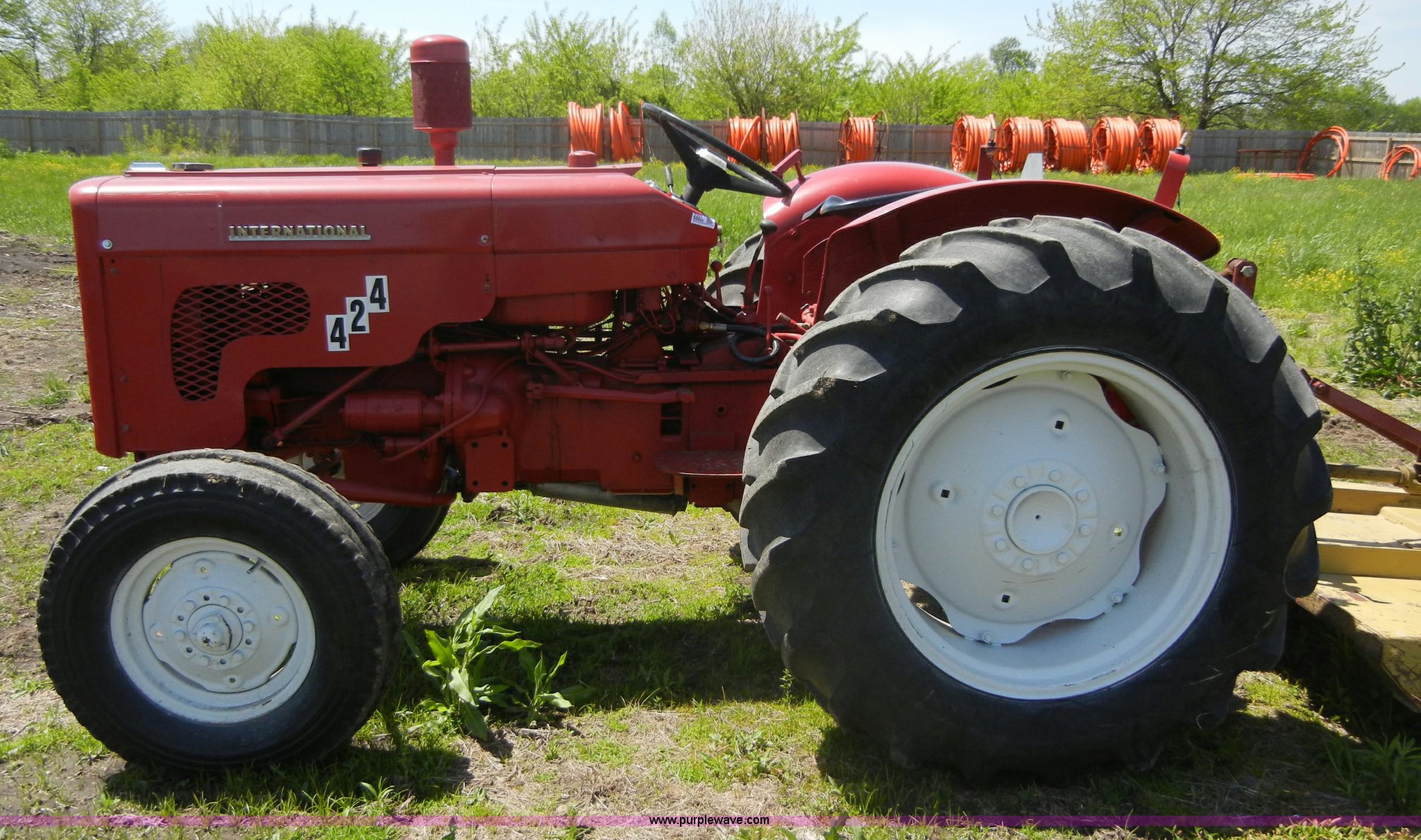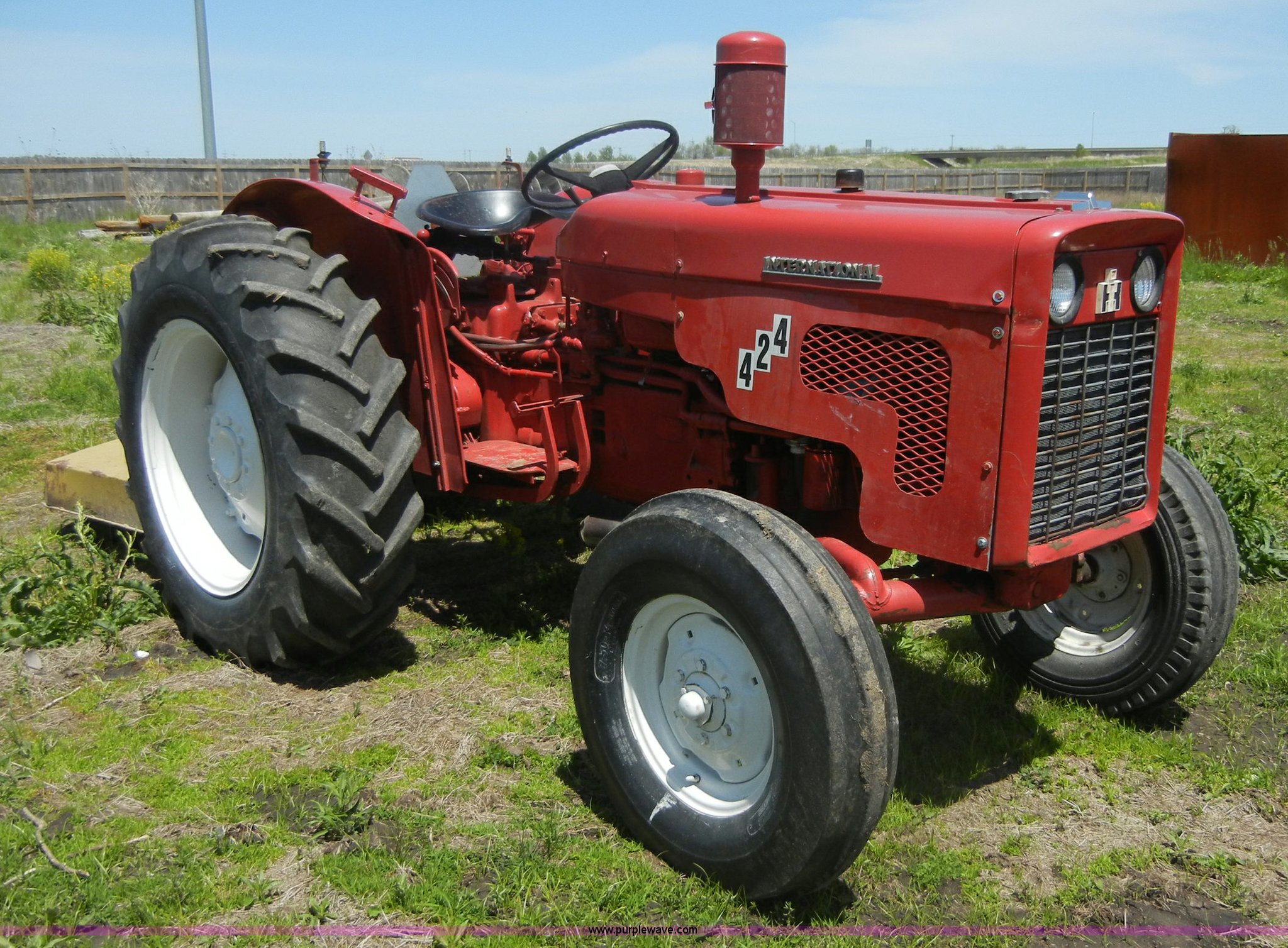 Purple Wave is selling a used Tractor in Kansas. This item is a 1964 International 424 tractor with the following: 7,735 hours on meter, International diesel engine, Four forward and one reverse gears, Hi/Low each gear, Three point, Draw bar, Auxiliary outlet, 540 PTO, 17 gallon fuel tank, New hydraulic pump in 2009, 7.50-16 front tires, 13.6-28 rear tires, four ply