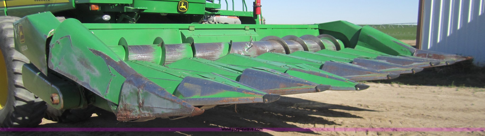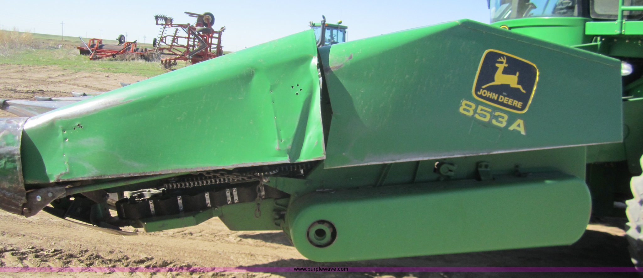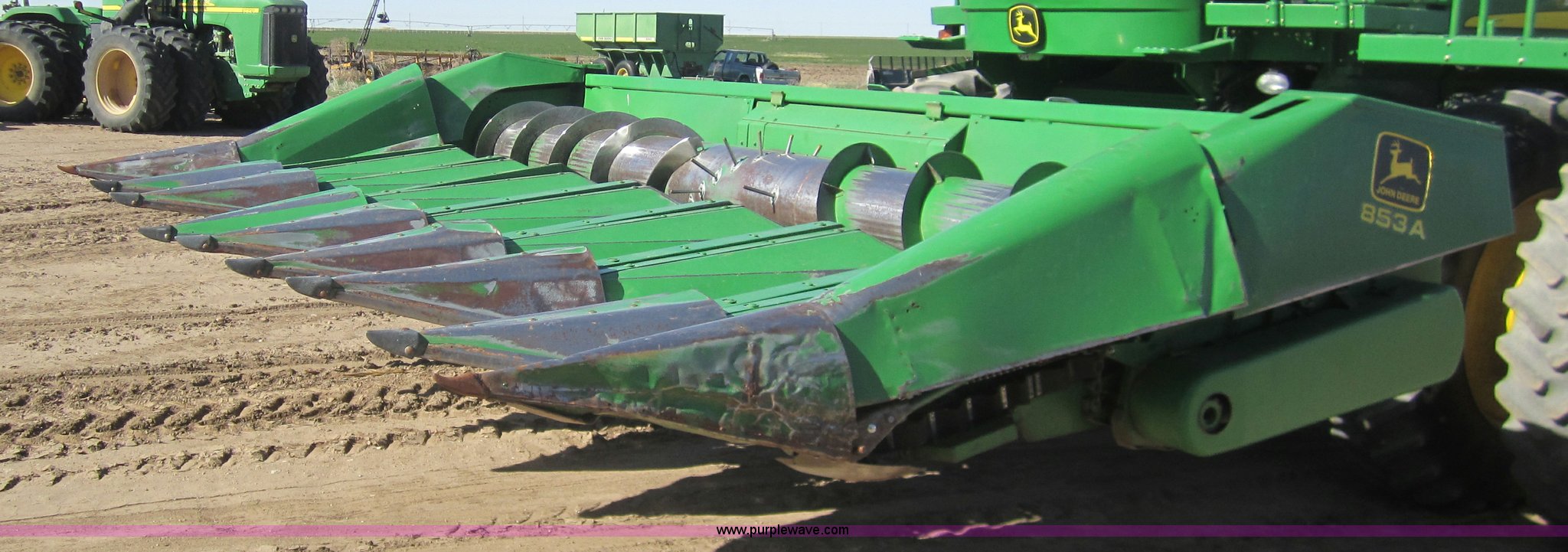 Purple Wave is selling a used Corn or Row Head in Kansas. This item is a 1983 John Deere 853A row crop header with the following: 8 row, New floor pan, Serial 427558