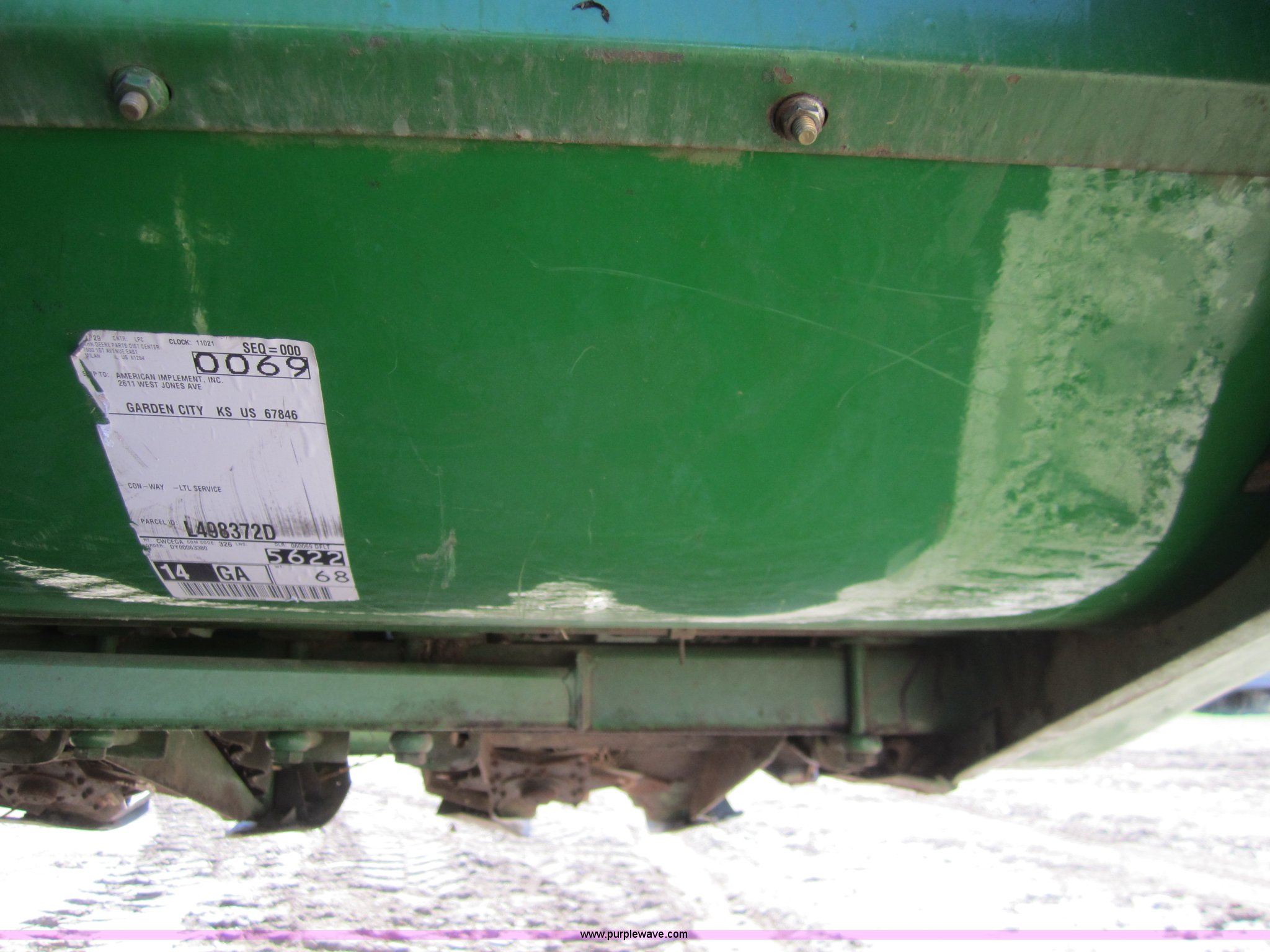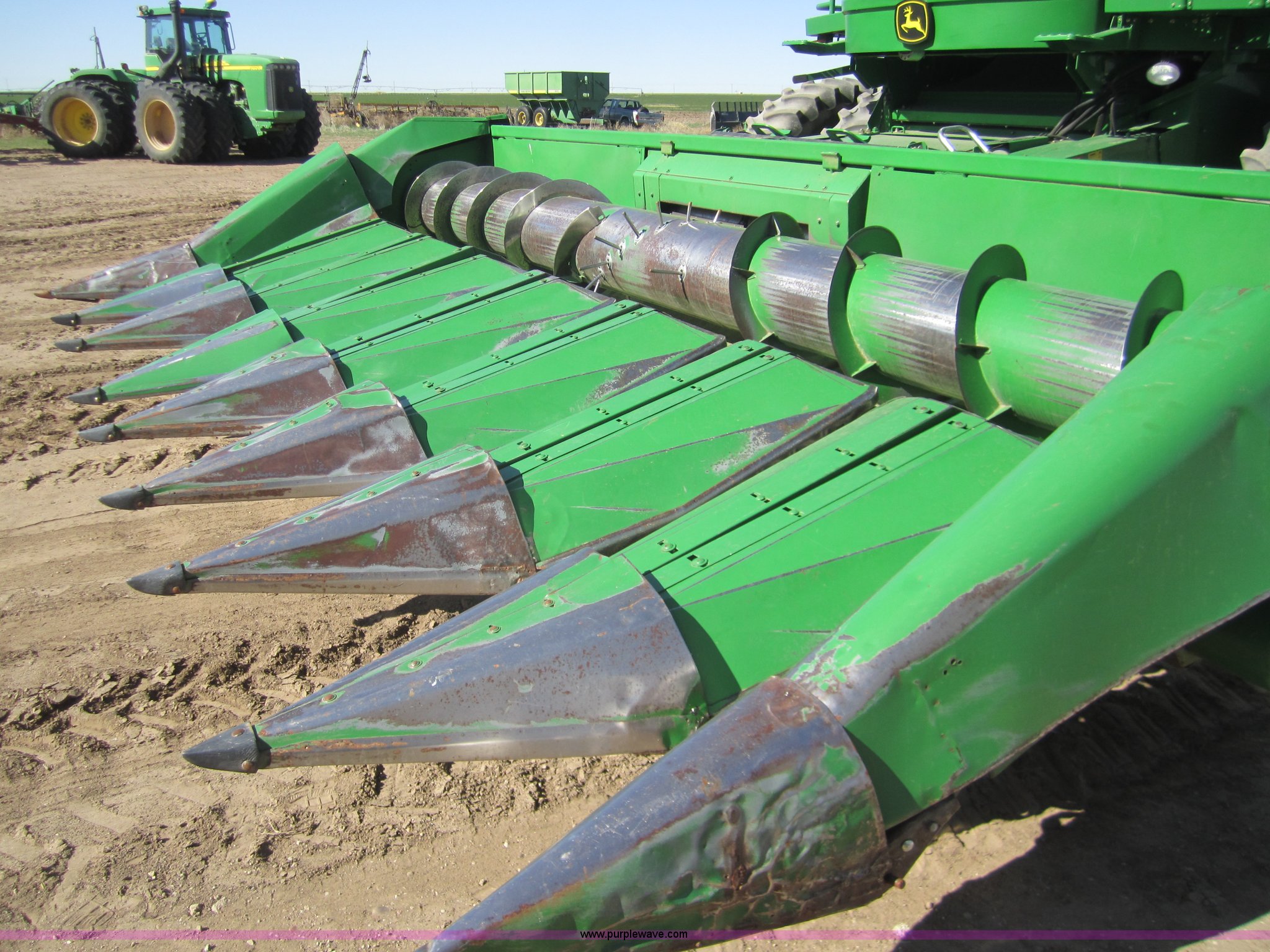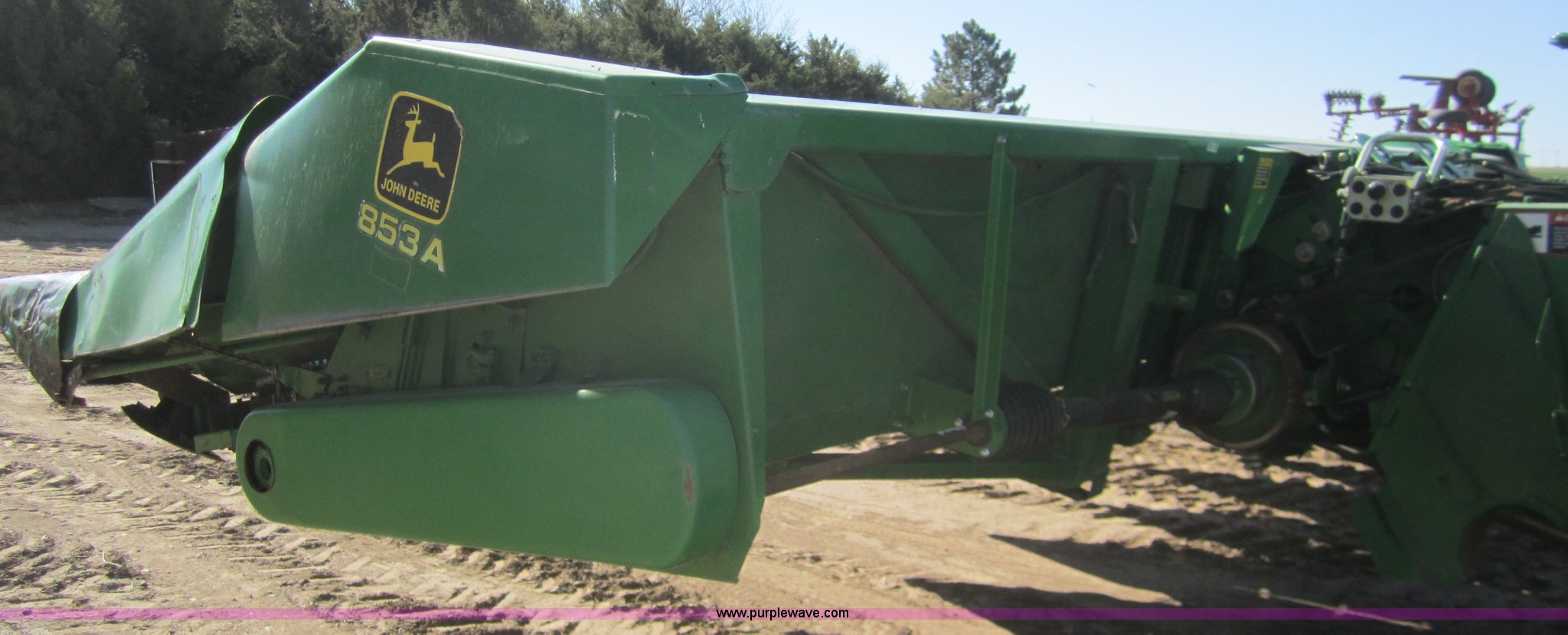 Purple Wave is selling a used Corn or Row Head in Kansas. This item is a 1983 John Deere 853A row crop header with the following: 8 row, New floor pan, Serial 427558