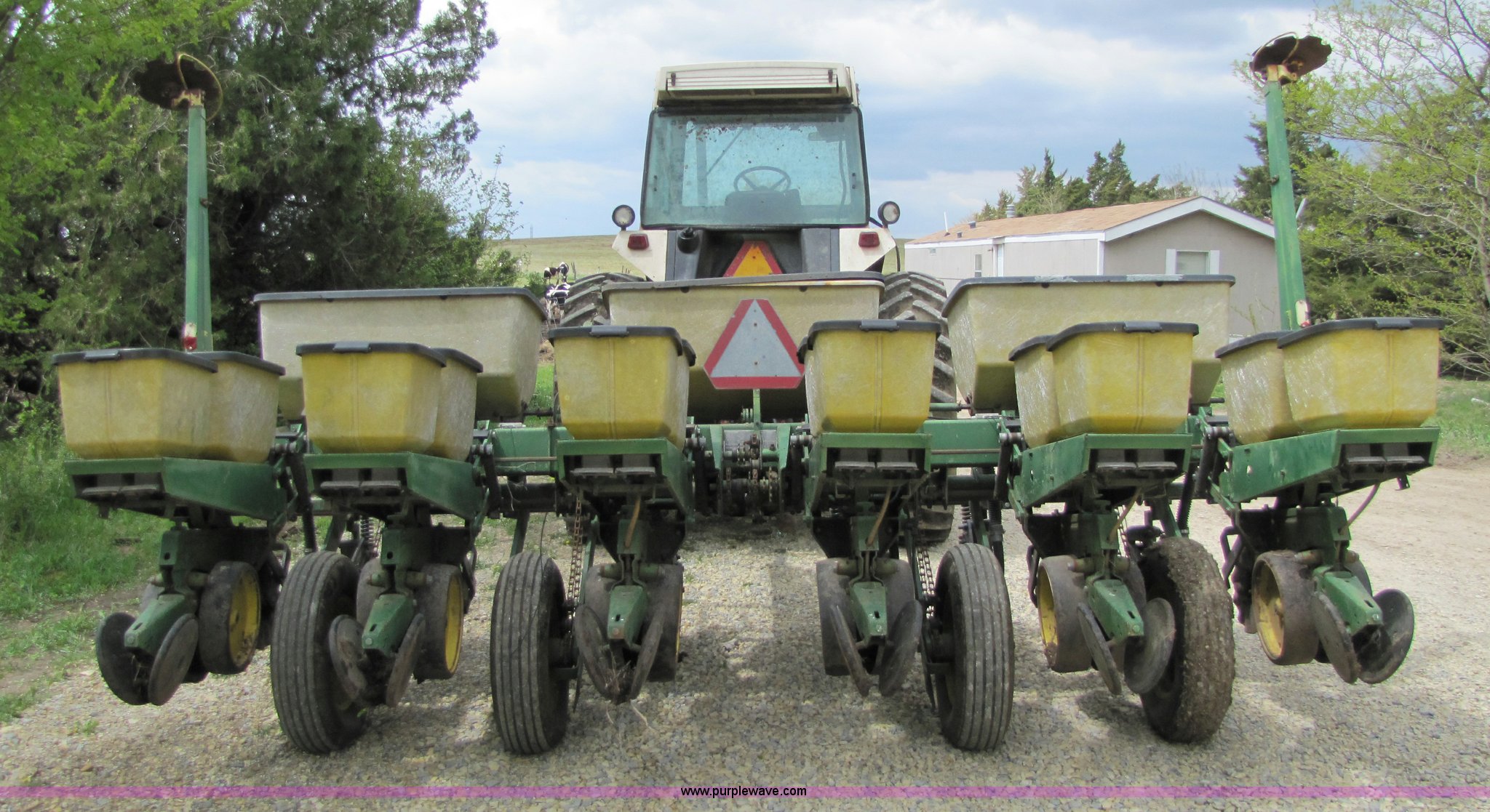 Purple Wave is selling a used Planter in Kansas. This item is a John Deere 7000 six row no-till planter with the following: 30" centers, Fiberglass seed, insecticide, and fertilizer hoppers, No-till coulters, One needs attached, Corn and milo plates, Row markers, Trash whips included, full set
