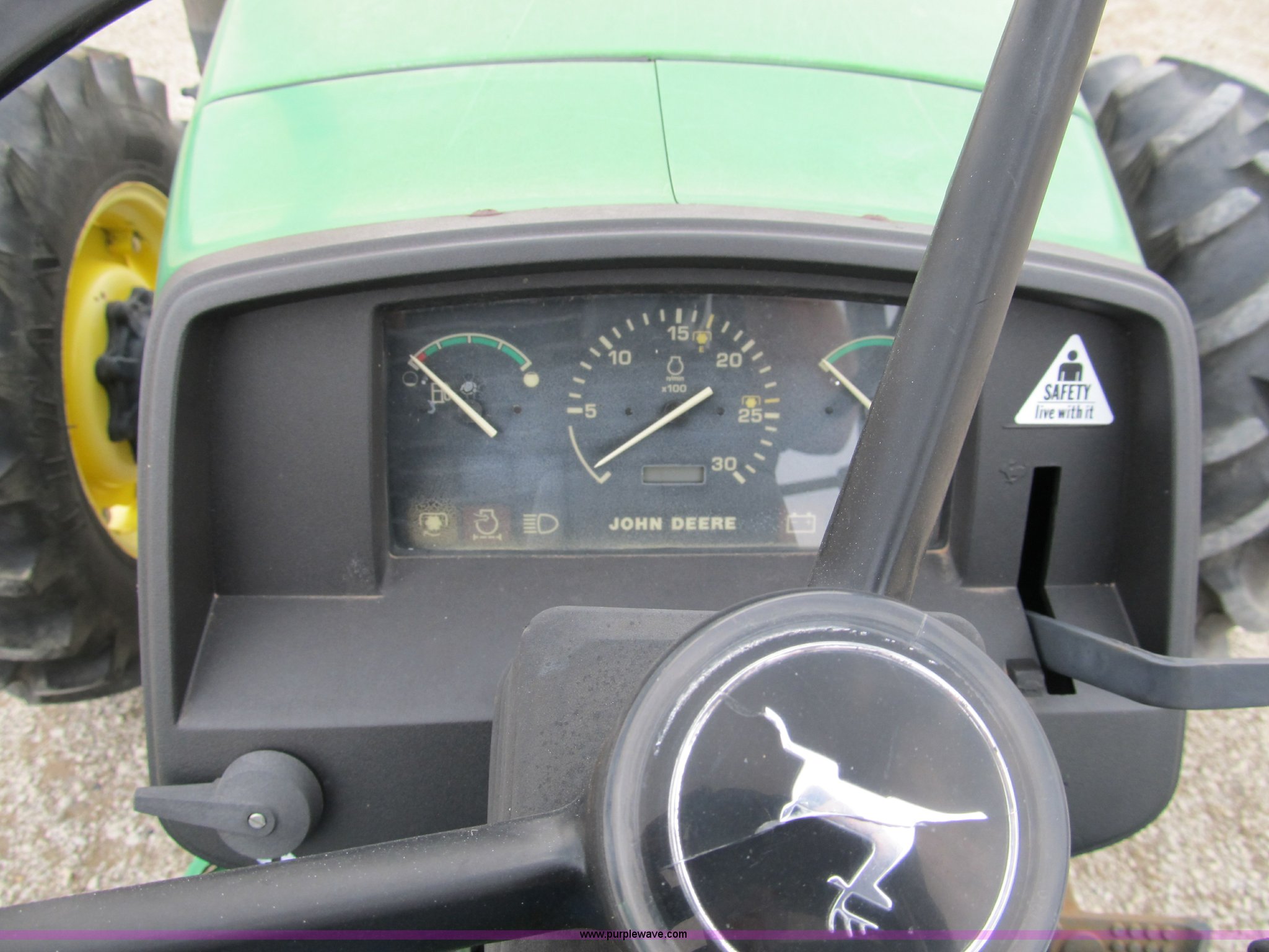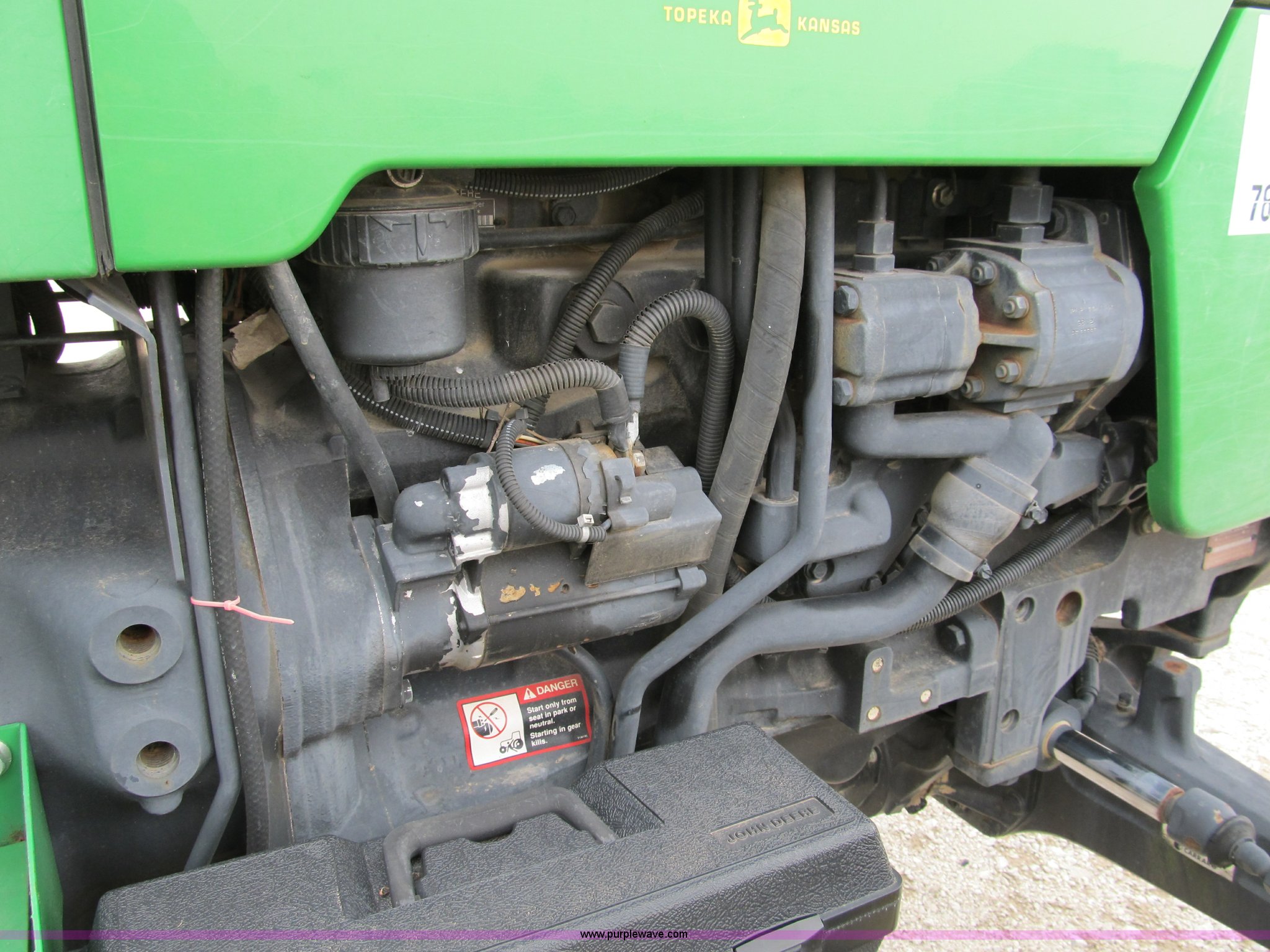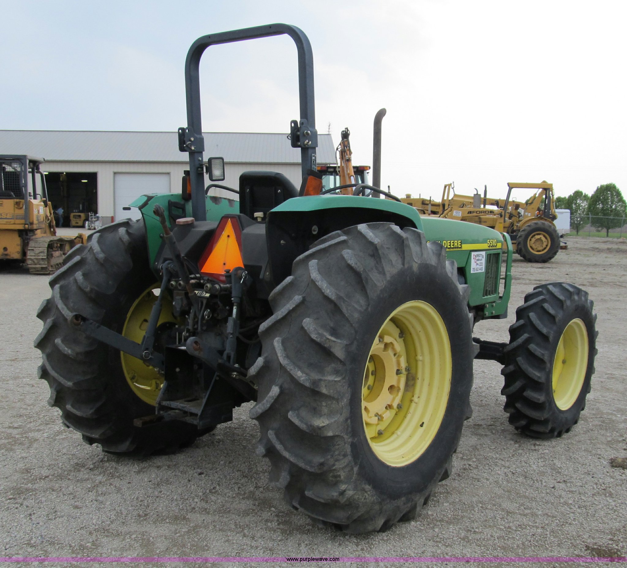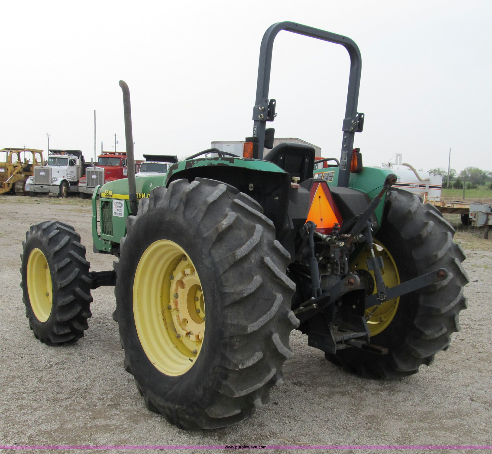 Purple Wave is selling a used Tractor in Kansas. This item is a 1998 John Deere 5510 tractor with the following: 225 actual hours, MFWD, Differential lock, John Deere four cylinder diesel engine, Serial PE4045T005070, Synchro manual transmission, Nine forward gears, Three reverse gears, Spring ride seat, Three point, 540 PTO, (2) rear hydraulic remotes, 12.5-24 front tires, 18.4-30 rear tires, Serial LV5510S151876