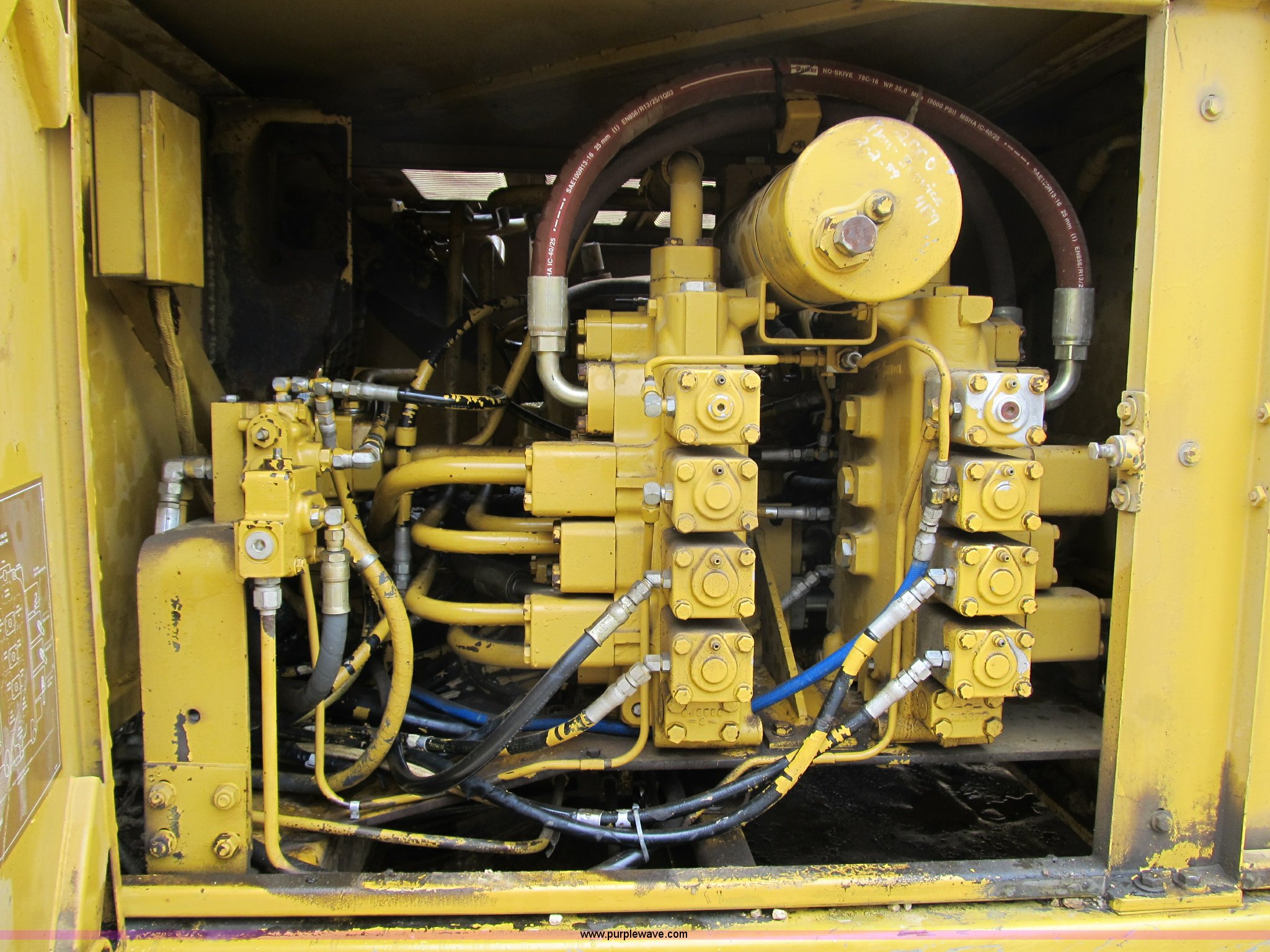 Purple Wave is selling a used Hydraulic Excavator in Iowa. This item is a 1989 Caterpillar 215 excavator with the following: 300 hours on meter, Caterpillar 3204 diesel engine, 90 HP, Serial 10X4254, Arrangement# 7N0072, Approx 300 hours on engine, 11'6" stick, 36" bucket, 24" triple grouser pads, Enclosed cab with heat, 38,480 lbs. base operating weight, Arrangement# 5V5500, Serial 14Z0566