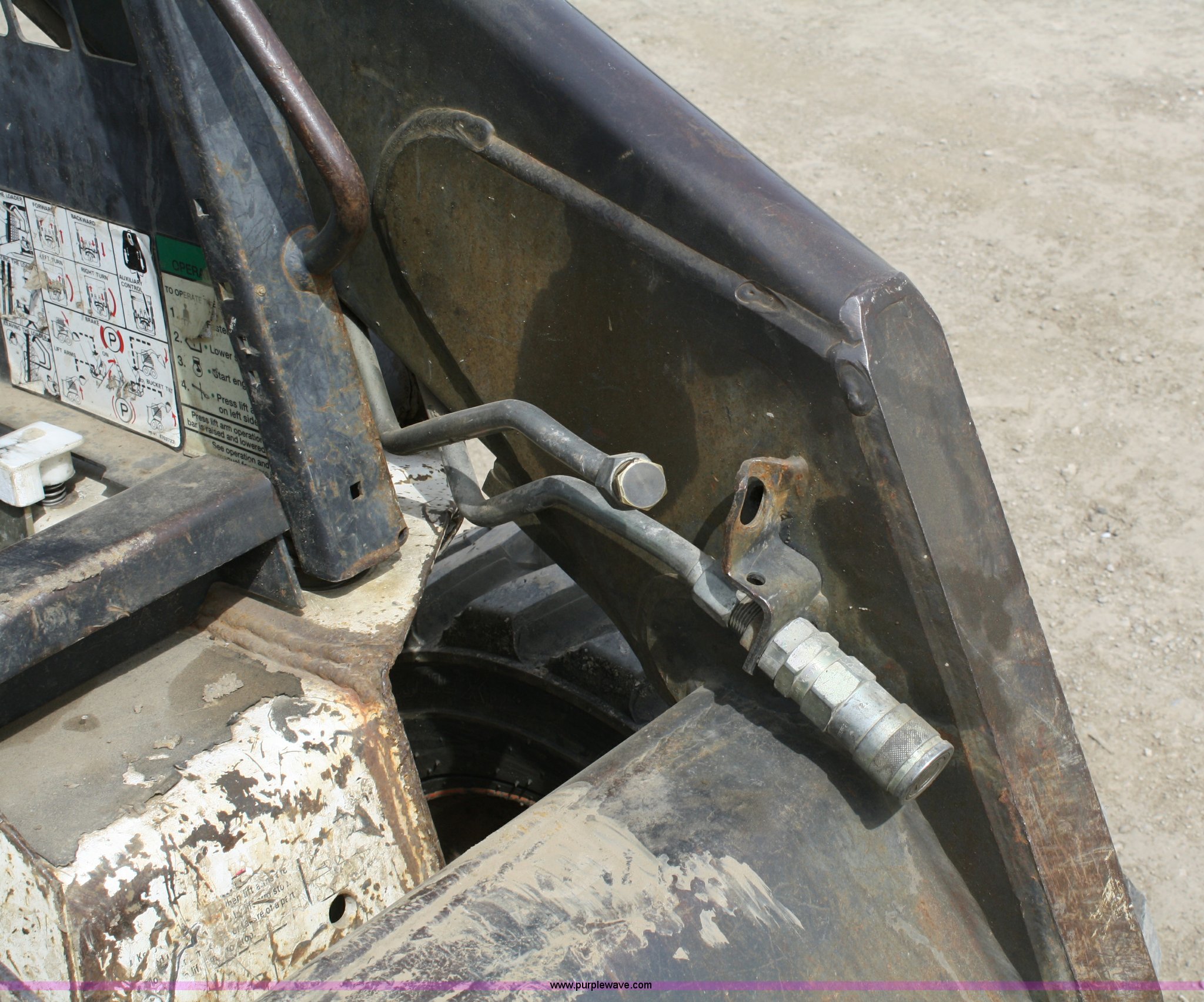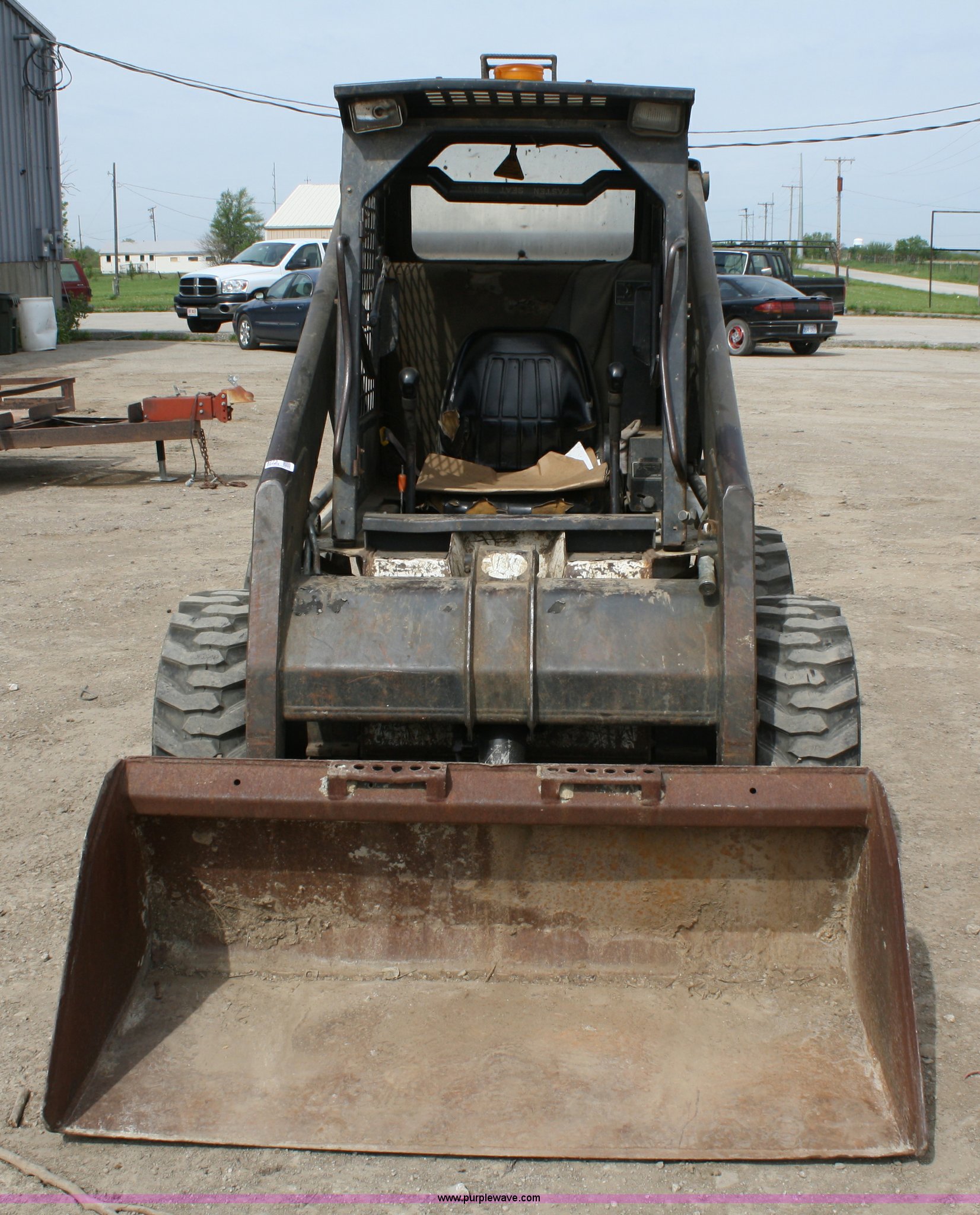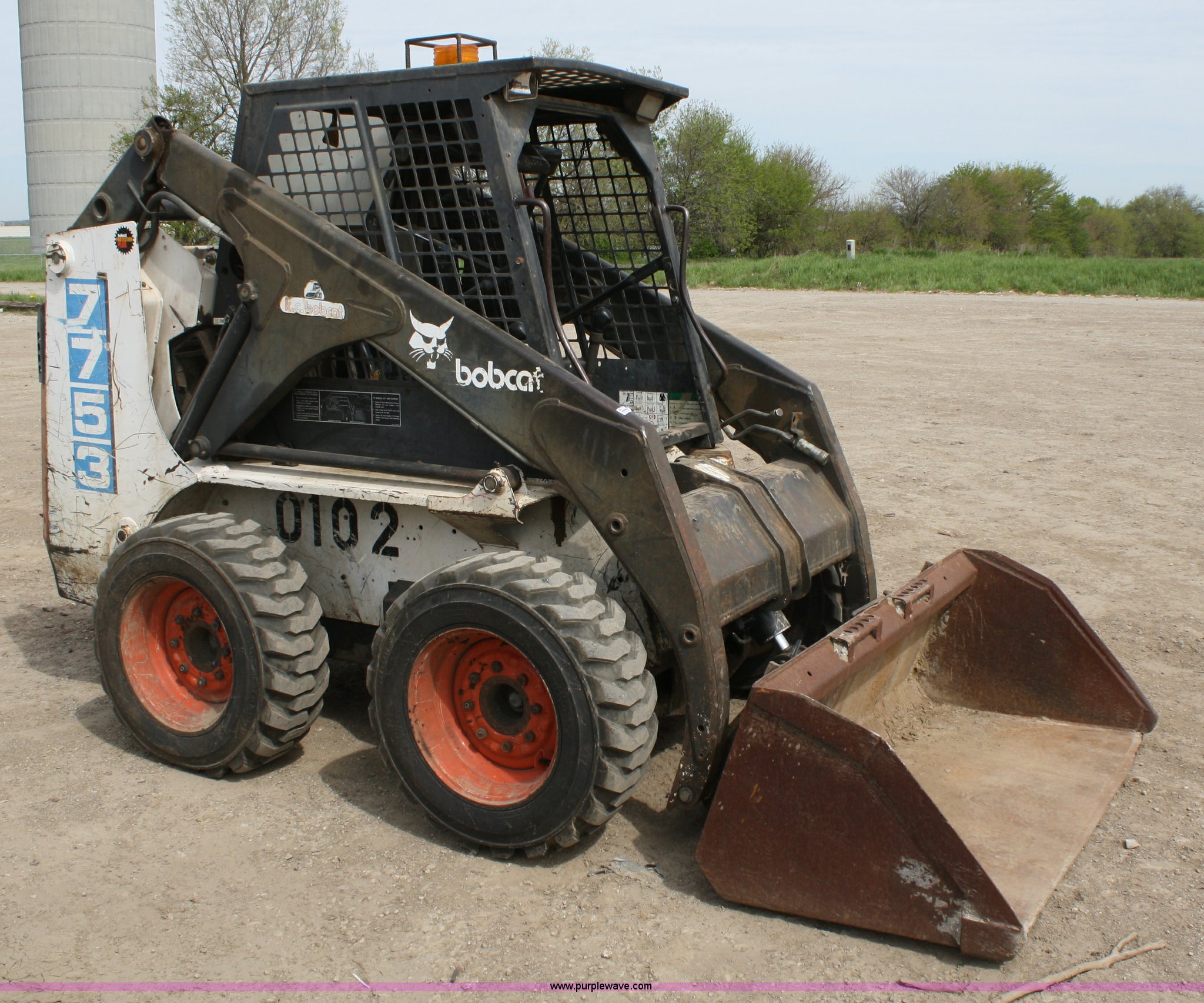 Purple Wave is selling a used Skid Steer Loader in Kansas. This item is a 1992 Bobcat 7753 skid steer with the following: Engine hours unknown, Kubota four cylinder diesel engine, Auxiliary hydraulics, Coupler will be replaced, 60" bucket, 1,700 lbs capacity, 5,476 lbs. base operating weight, 10-16.5 tires, Near new tires, Manual bucket latch, Serial 509611434