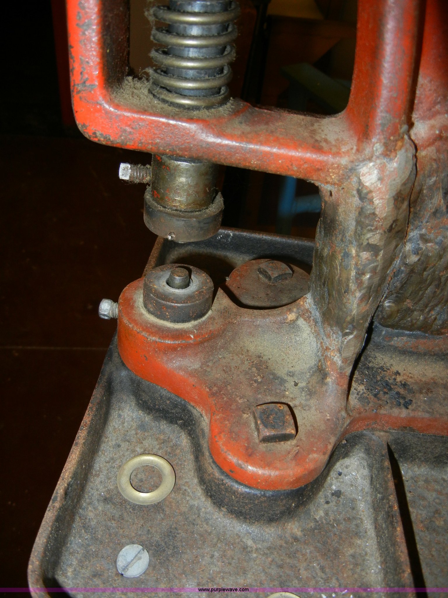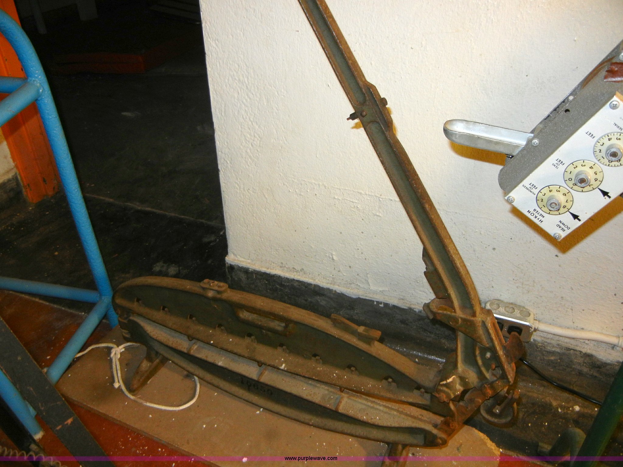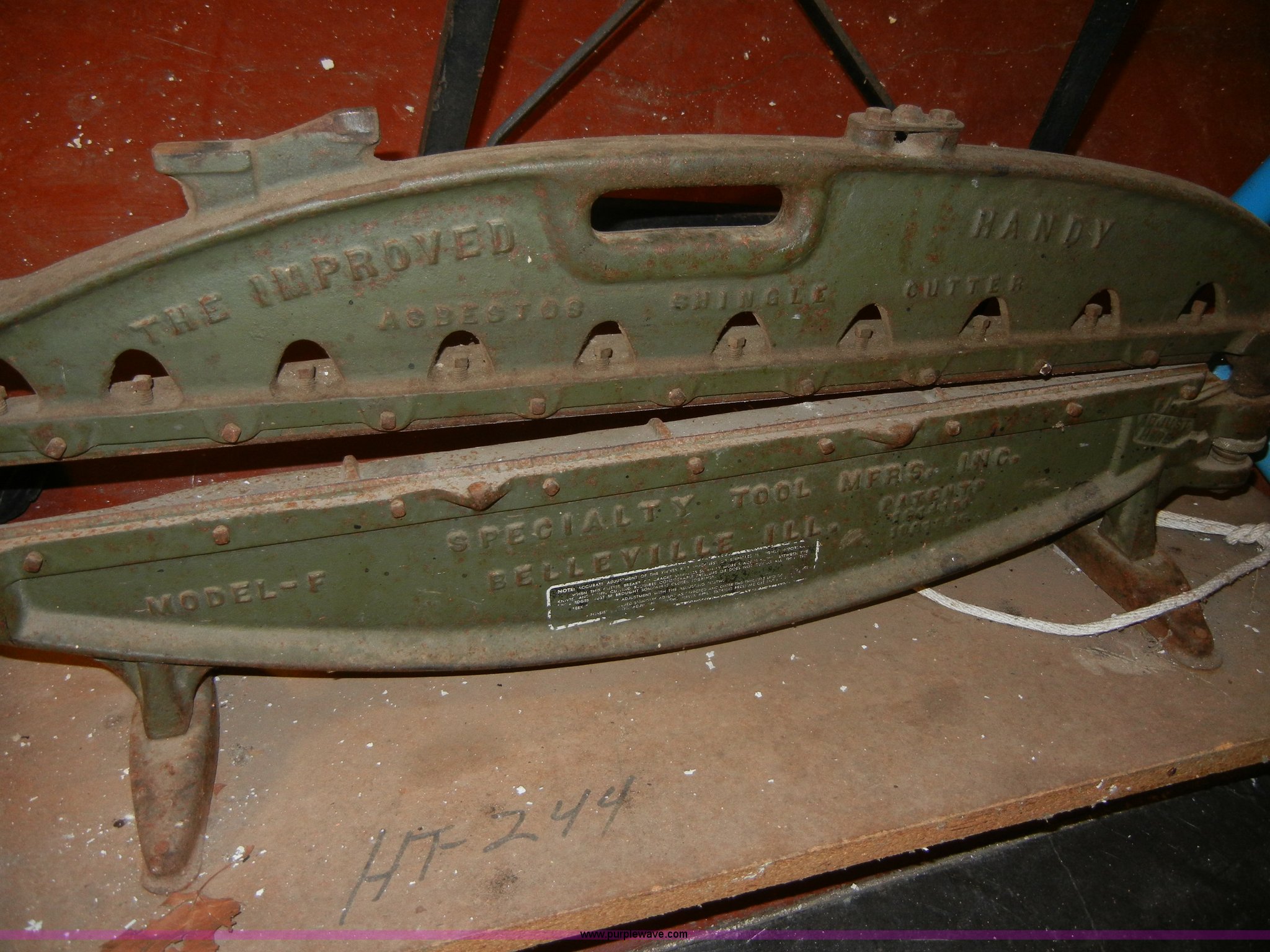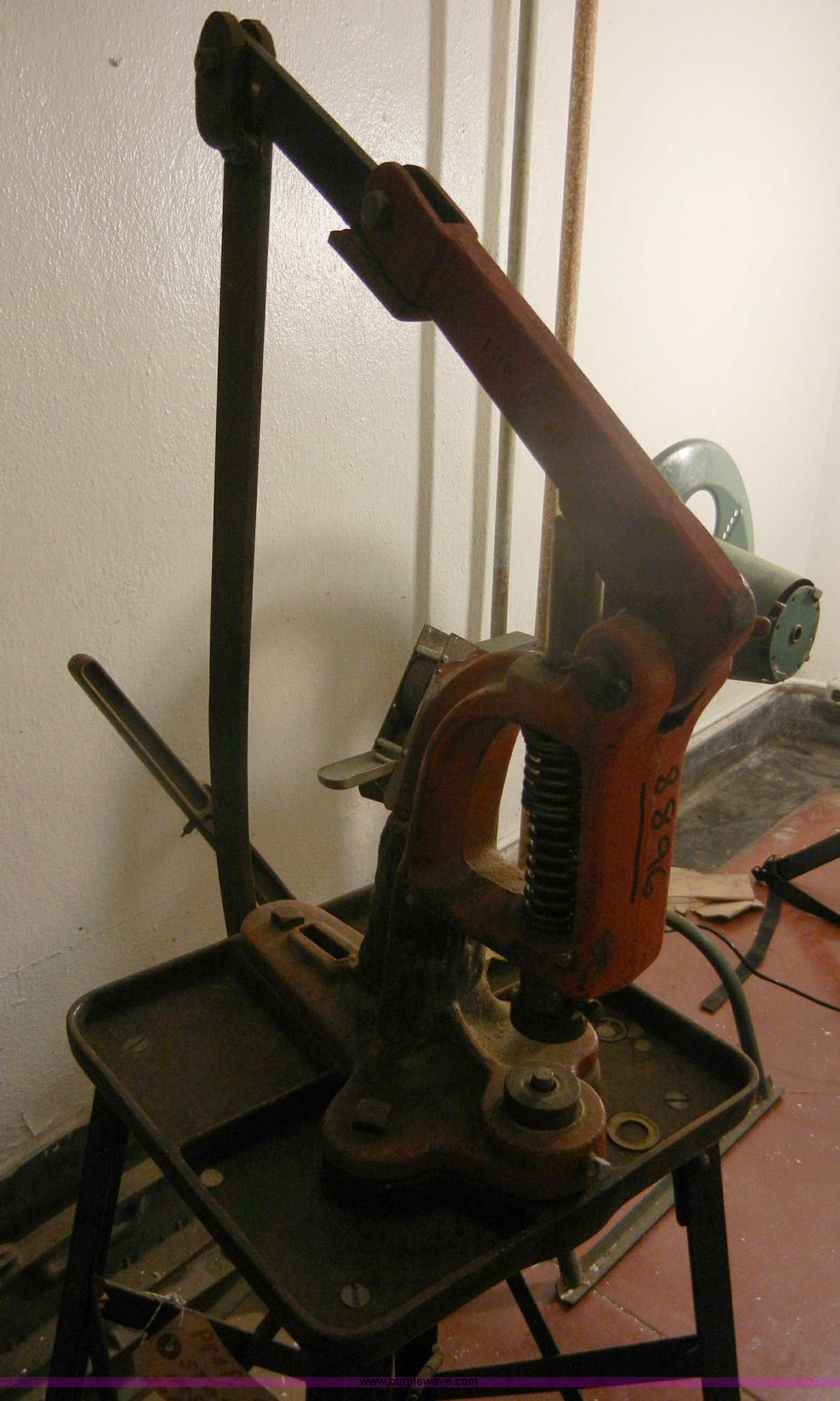 Purple Wave is selling a used Tools in Kansas. This item is a Assorted shop equipment with the following: Crane pulley, 55 gallon barrel brace, Astrup grommet punch, Improved Handy model F shingle cutter, Wire reel