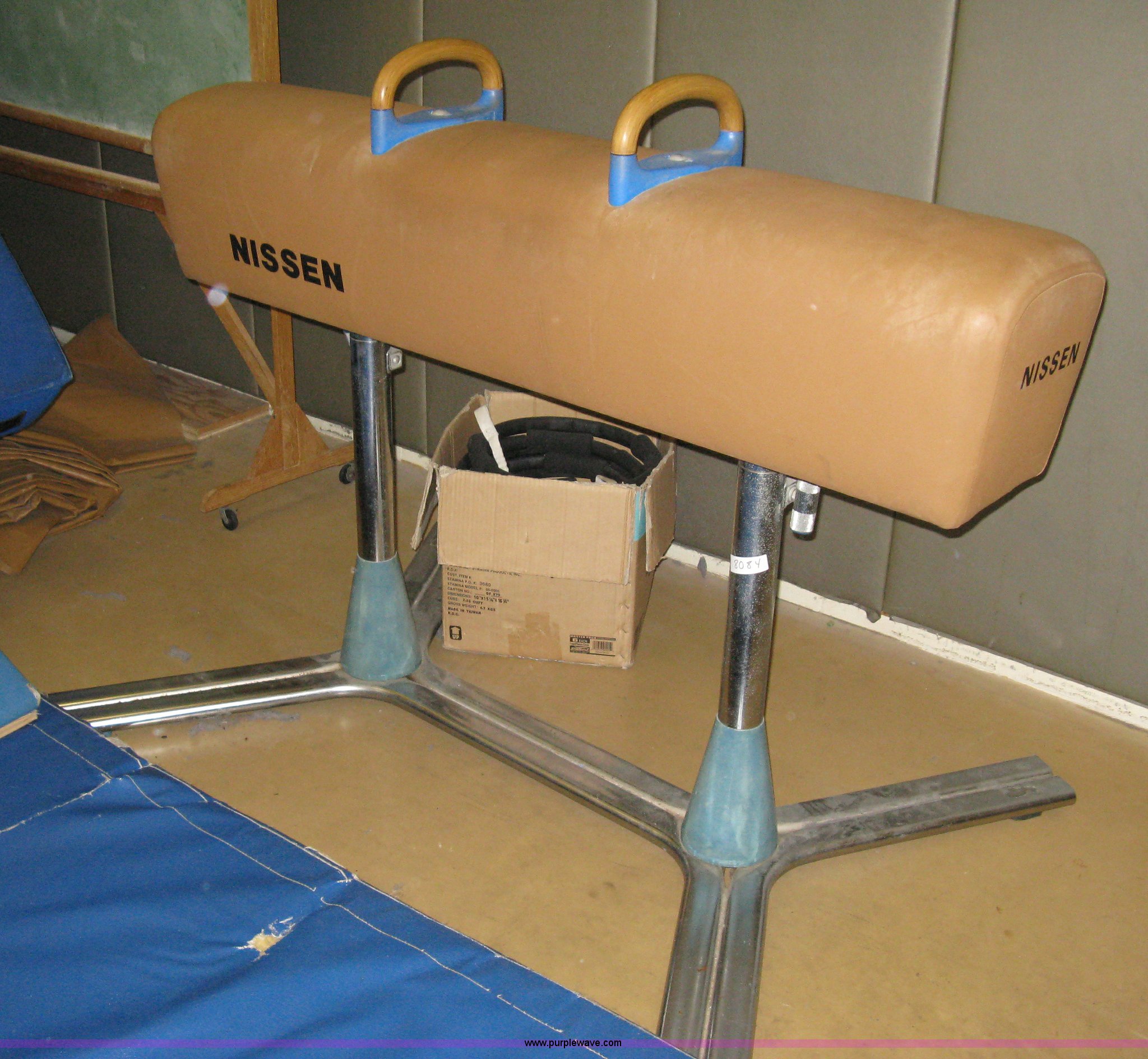 Purple Wave is selling a used Sporting Goods in Kansas. This item is a Nissen pommel horse with the following: Adjustable height, 62"L