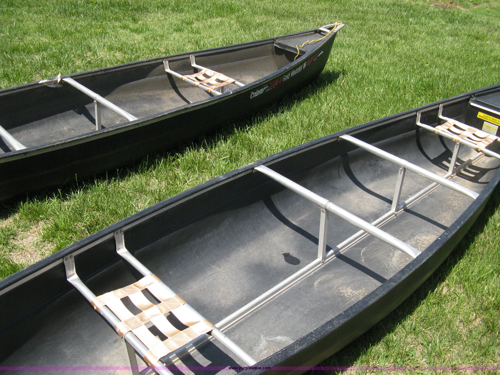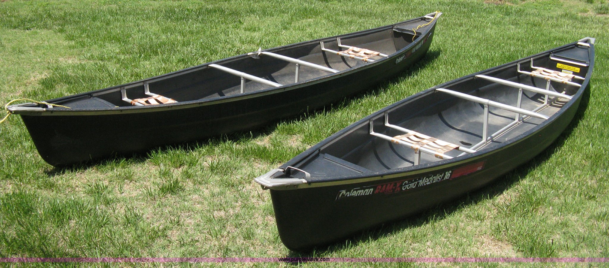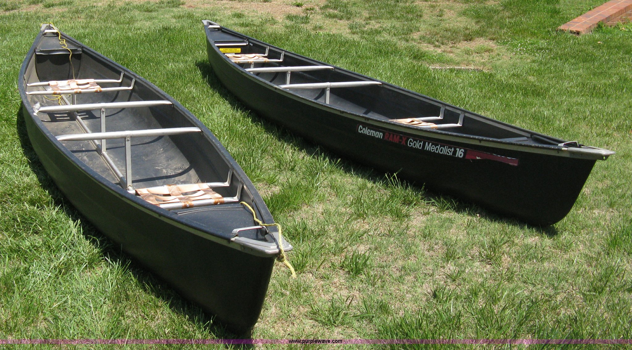 Purple Wave is selling a used Boat in Kansas. This item is a (2) Coleman Ram-X gold medalist canoes with the following: 16'L, Plastic body, Two seats, One plastic oar each