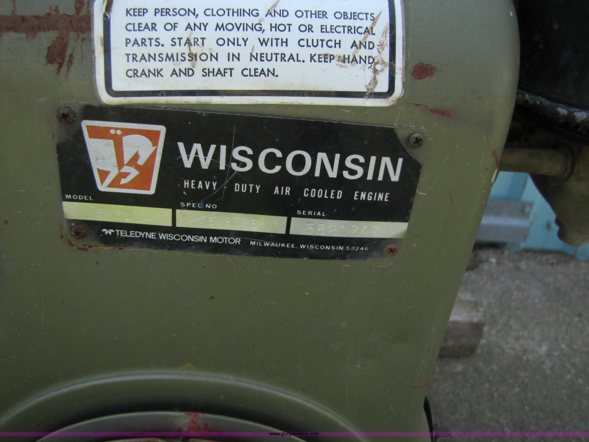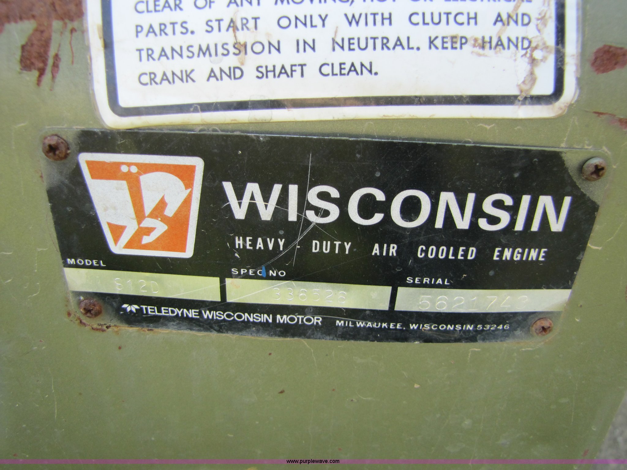 Purple Wave is selling a used Pump in Kansas. This item is a Pump with Wisconsin heavy duty engine with the following: Model S12D, Unknown running condition, Serial 5621743