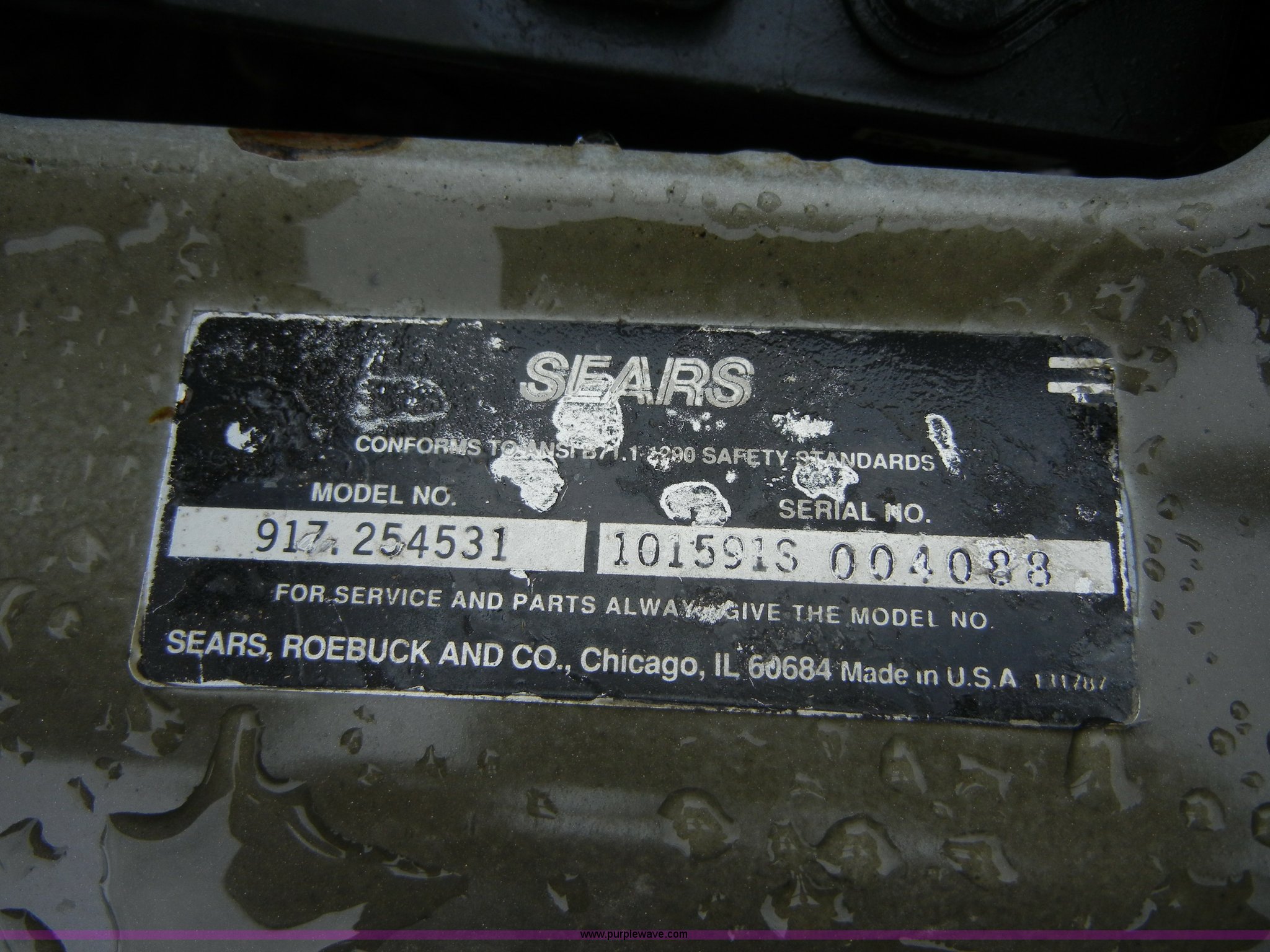 Purple Wave is selling a used Lawn and Garden in Kansas. This item is a Sears Craftsman II riding lawn mower with the following: 38" cut, Mulcher blades, Briggs & Stratton 12 HP industrial duty engine, Five speed transmission, New seat, 15x6.00-6 front tires, 20x8.00-8 rear tires, Rear tires flat, Model 917254531, Serial 101591S004088