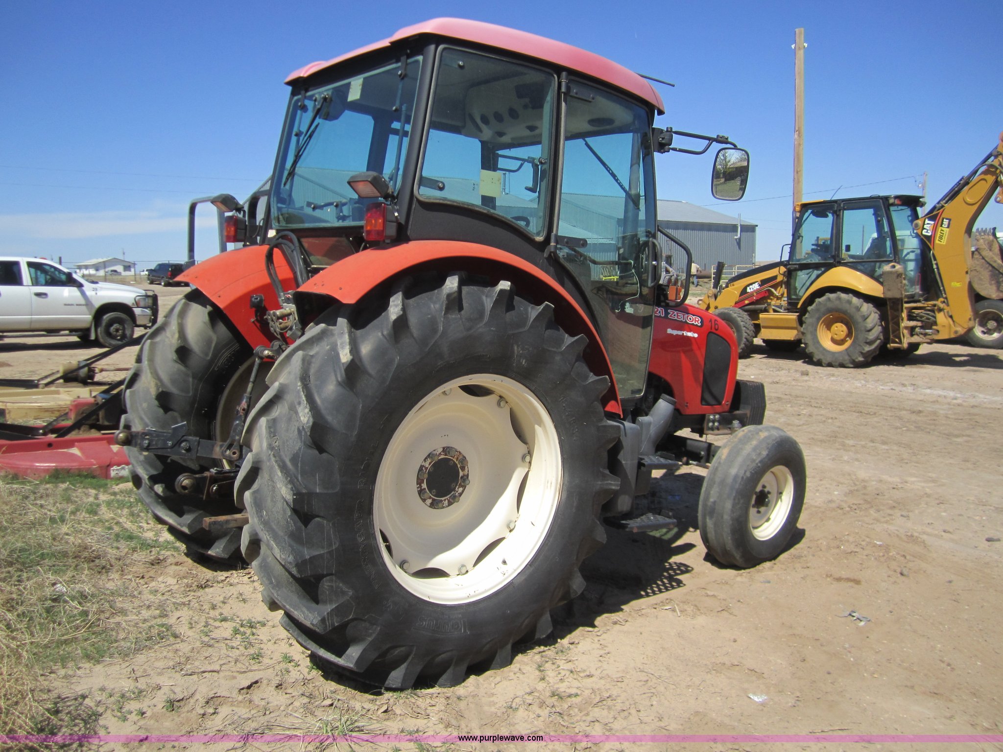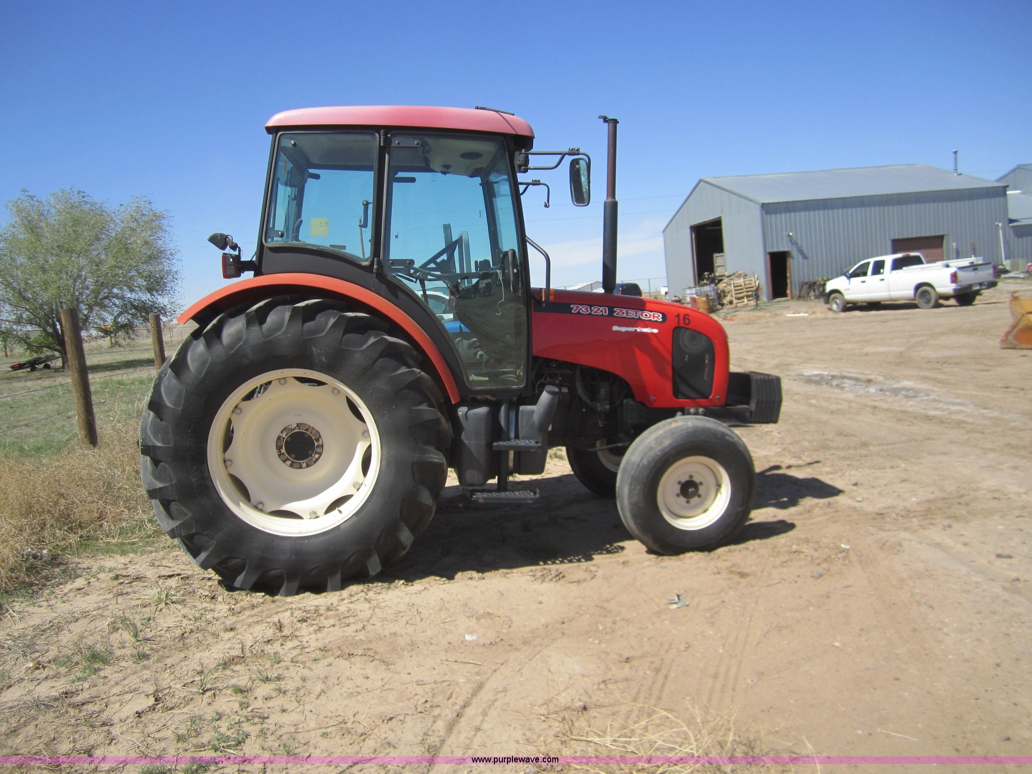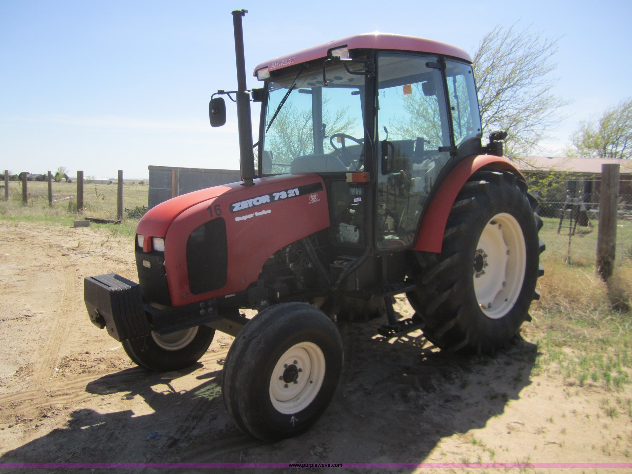 Purple Wave is selling a used Tractor in Kansas. This item is a Zetor 7321 tractor with the following: 813 hours on meter, Zetor 3.922L diesel engine, Starts but not running right, 10 forward gears, Two reverse gears, AC and heat, AC needs charges, AM/FM/Cassette, 540 or 1000 PTO, (2) hydraulic remote sets, Three point, Draw bar, (6) front tractor weights, Recent clutch overhaul, Owners manual, 18.4R34 rear tires, 10.00-16 front tires