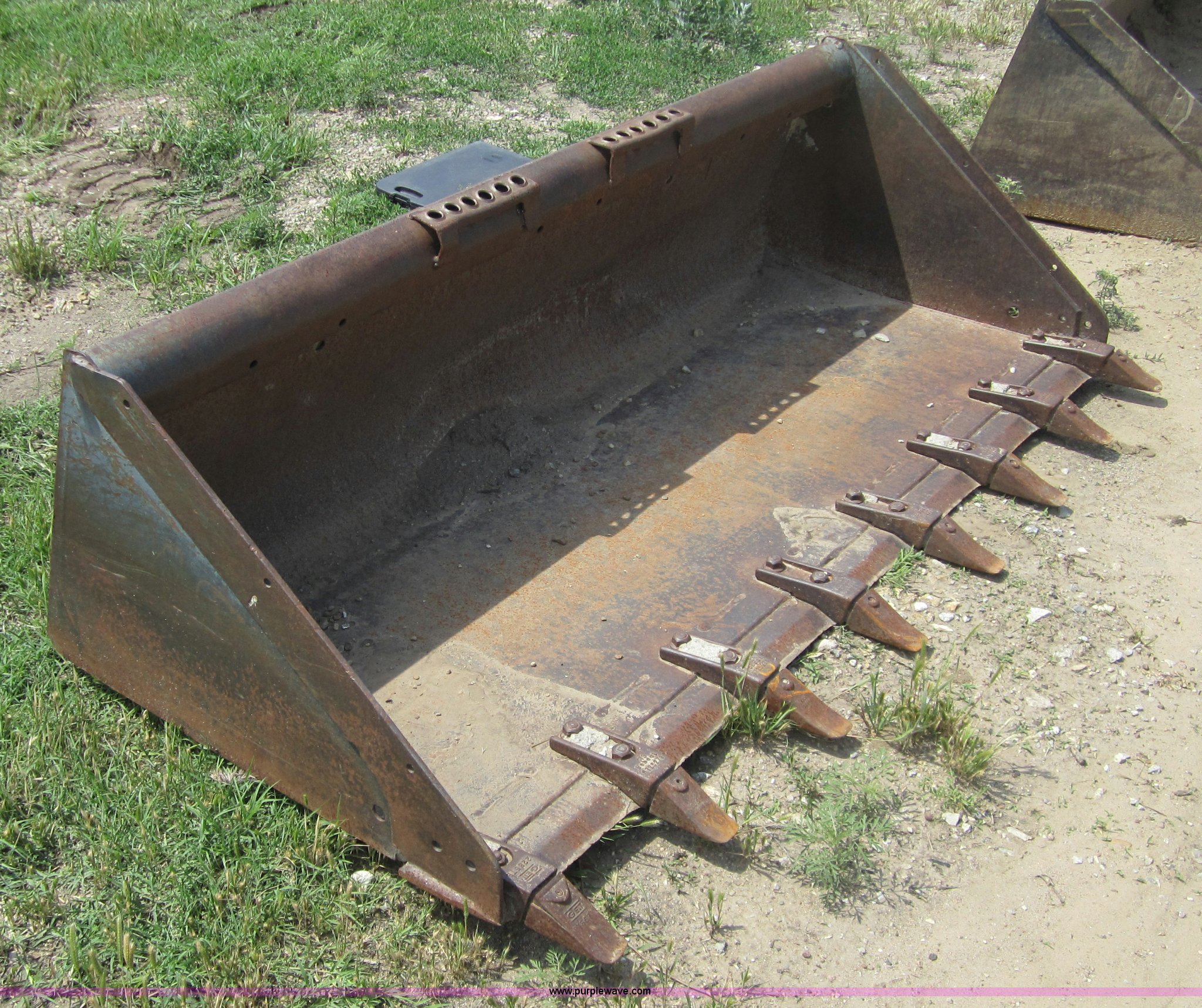 Purple Wave is selling a used Other Attach. or Equip. in Kansas. This item is a Bobcat 72" skid steer bucket with the following: (8) bolt-on teeth, 13 cu. ft., 553 lbs.
