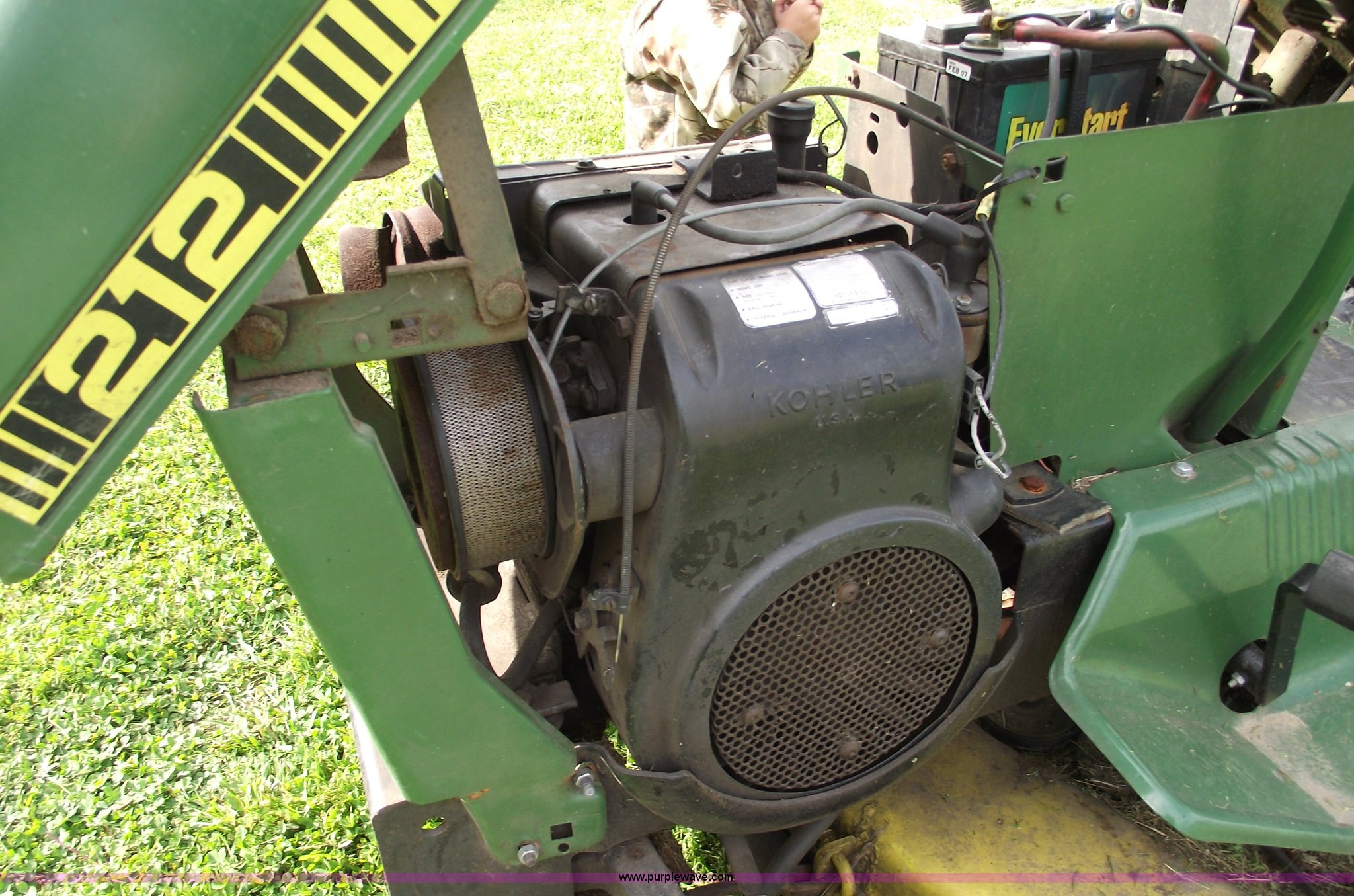 Purple Wave is selling a used Lawn and Garden in Missouri. This item is a John Deere 212 lawn mower with the following: 48" deck, Serial H047H405176M, Kohler gas engine, Serial 9529056, Spring ride seat, 23x8.50-12 rear tiers, 16x6.50-8 front tires, Serial C212H101040M