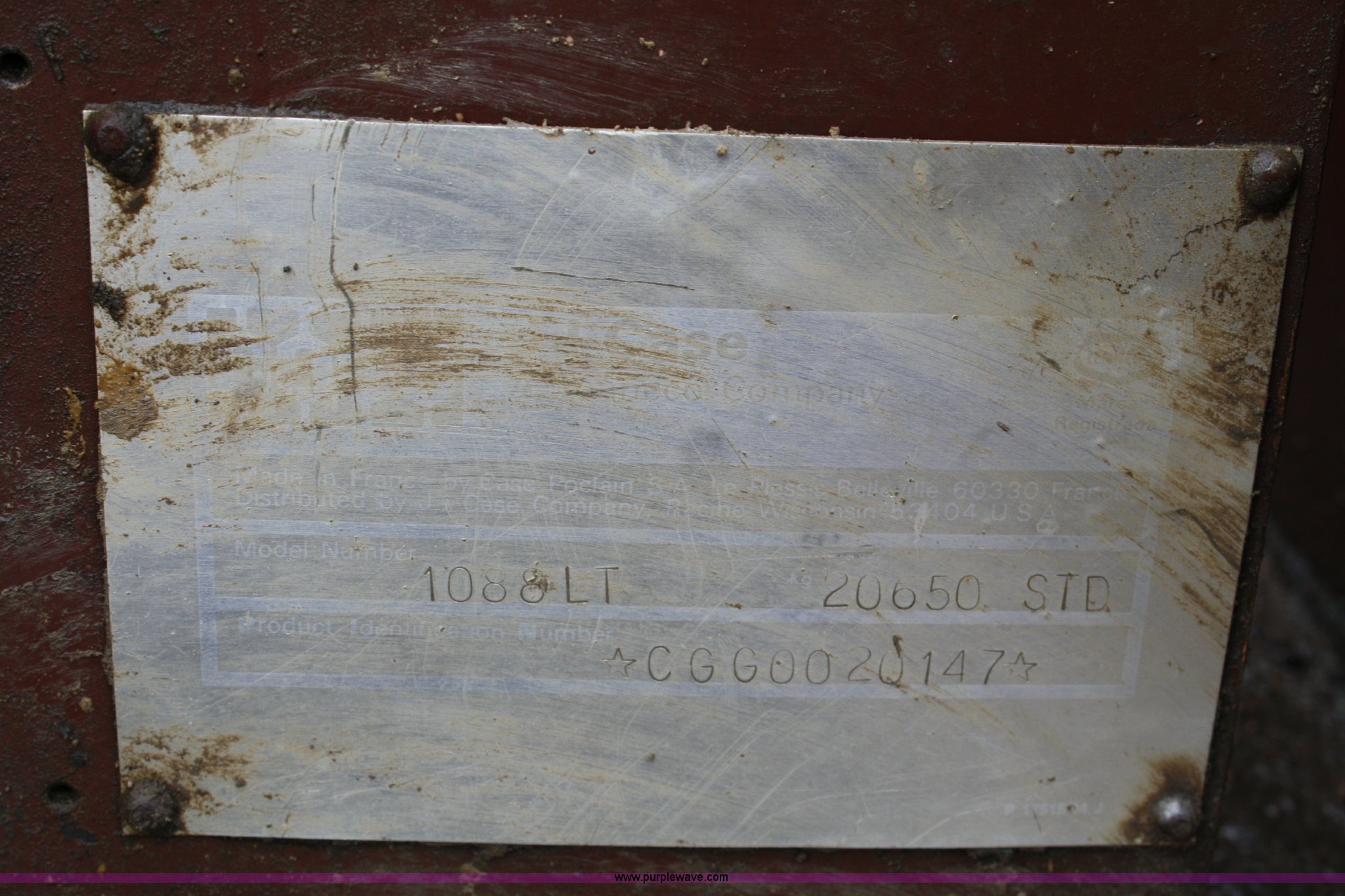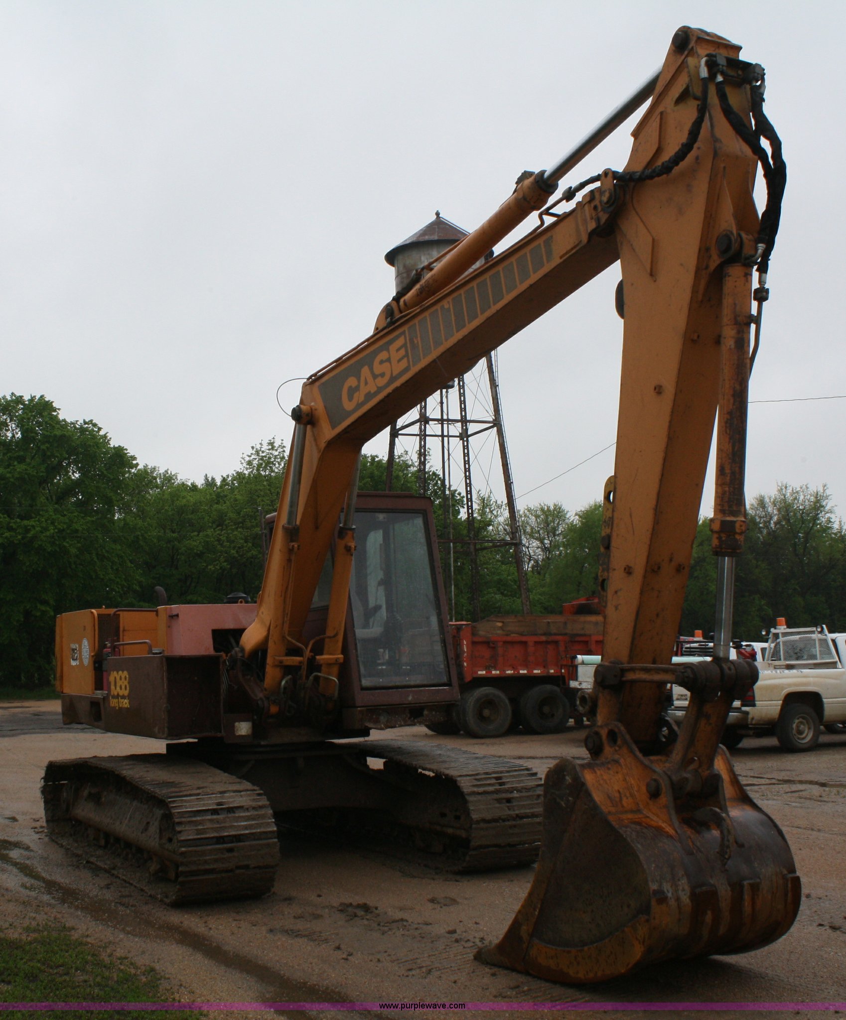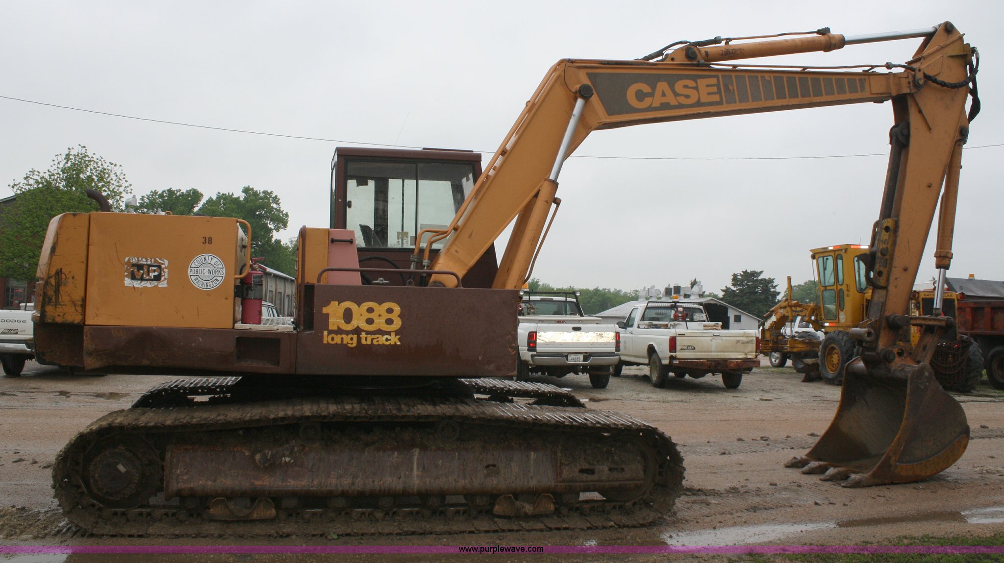 Purple Wave is selling a used Hydraulic Excavator in Kansas. This item is a Case 1088 hydraulic excavator with the following: 7,033 actual hours, 5.9L Cummins six cylinder turbocharged diesel engine, 125 HP, Cab with heat, G.P. 42" bucket with four teeth, 28" triple grouser pads, Mechanical thumb, Boom and stick cylinders repaired in 2009, Starter repaired in 2009, Injector pump repaired in 2006, Radio and fire extinguisher not included, Serial CGG0020147