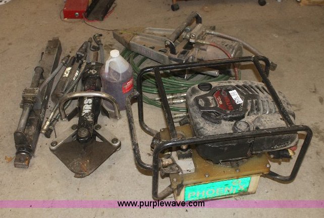Purple Wave is selling a used Tools in Kansas. This item is a Phoenix rescue equipment hydraulic power unit with the following: Briggs & Stratton 6 HP gas engine, Hurst cutter, Hurst long ram, Hurst short ram, Hurst spreader