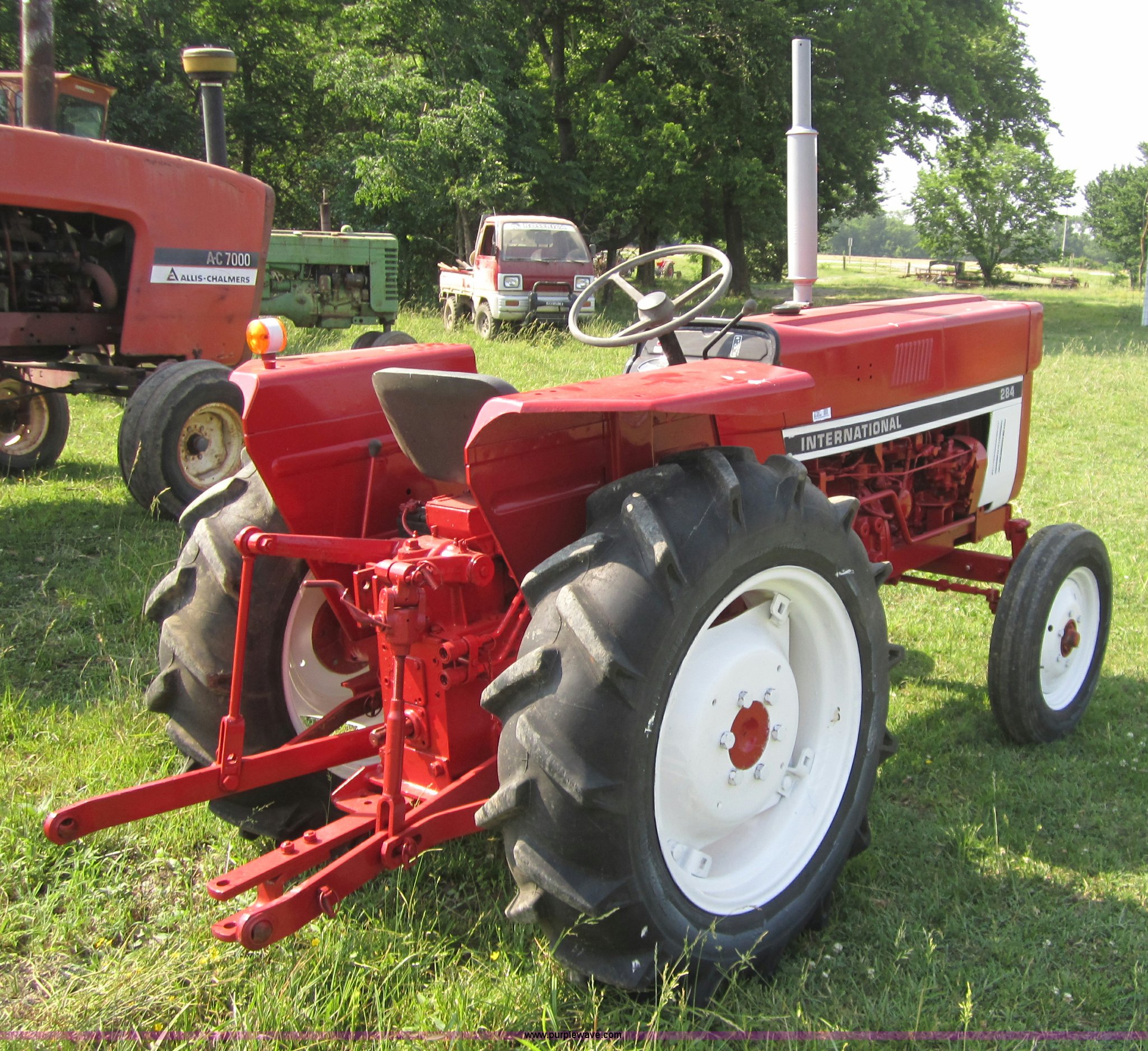 Purple Wave is selling a used Tractor in Kansas. This item is a International 284 tractor with the following: 806 hours on meter, Manual transmission, Eight forward gears, Two reverse gears, Three point, Draw bar, 540 PTO, Rear hydraulic remote set, 11.2-10-24 rear tires