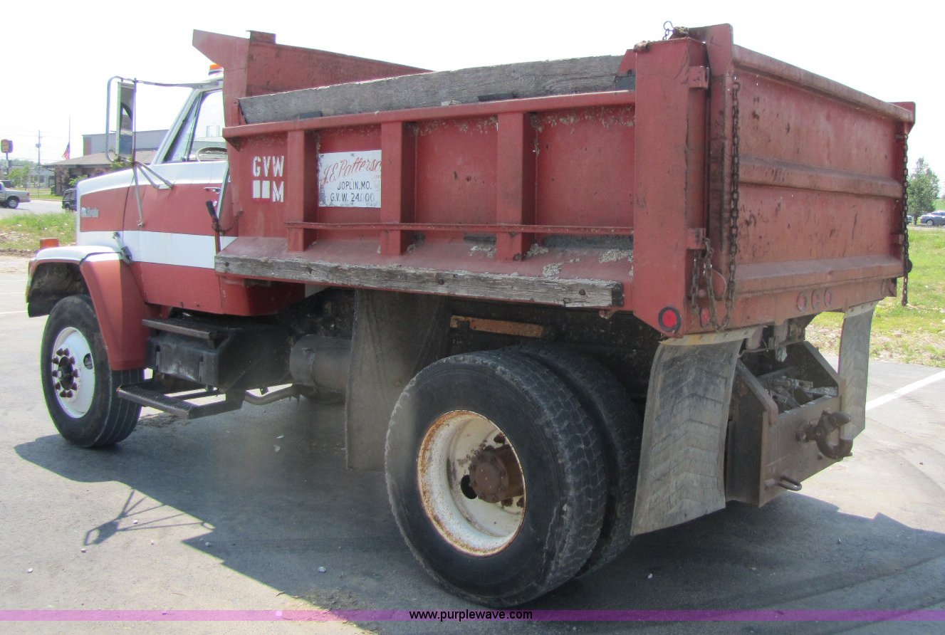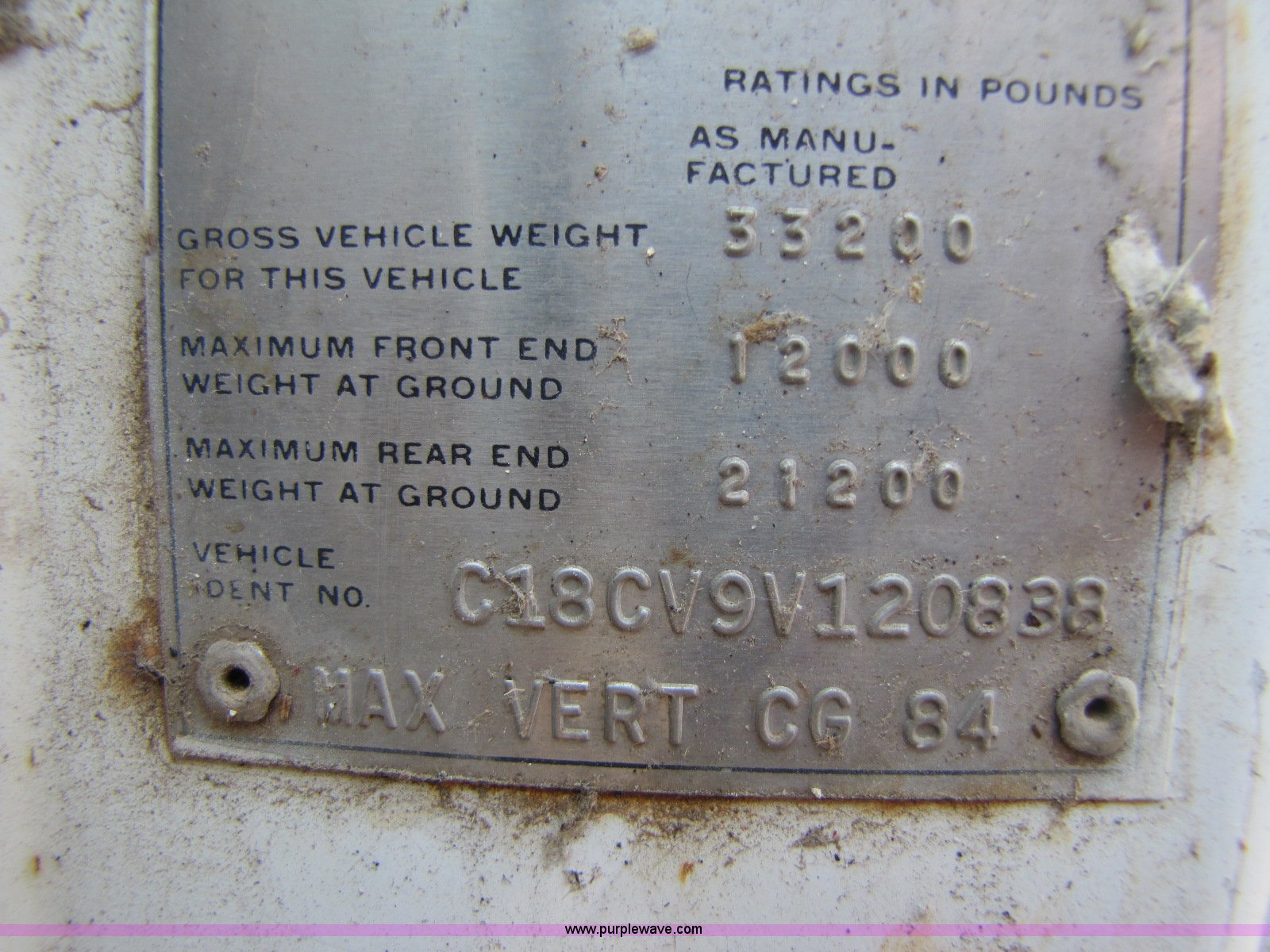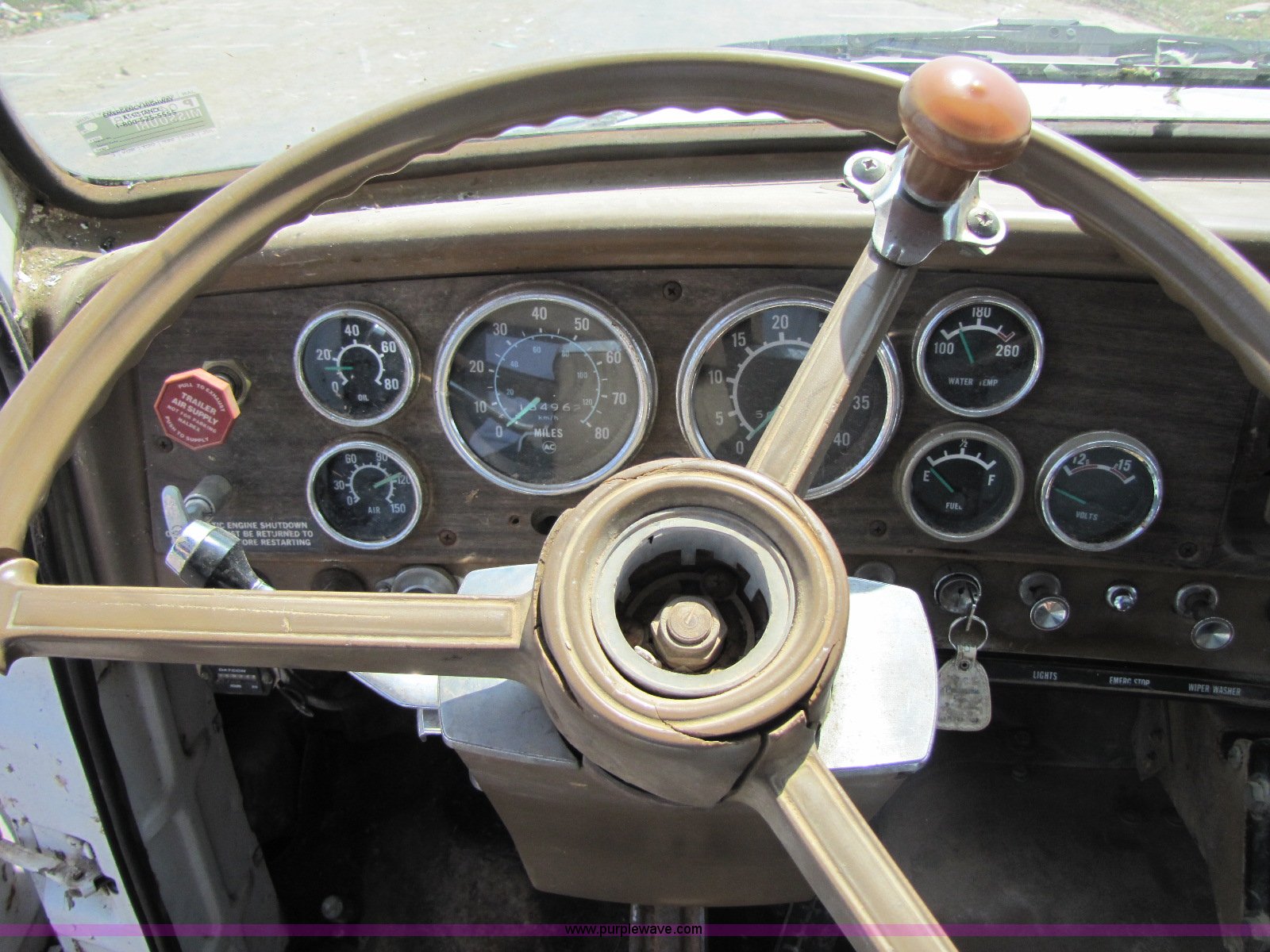 Purple Wave is selling a used Construction Dump Truck in Missouri. This item is a 1979 Chevrolet Bruin dump truck with the following: 184,963 miles on odometer, Detroit DW-15 diesel engine, Four speed automatic transmission, Heater, Tilt, Spring ride seat, 9' dump bed, Manual end gate, Single 80 gallon fuel tank, Bumper, Block heater, Pintle hitch, Spring suspension, PTO, Air brakes, 295/75R22.5 tires, GVWR 33,200 lbs, FAWR 12,000 lbs, RAWR 21,200 lbs, Broken windshield