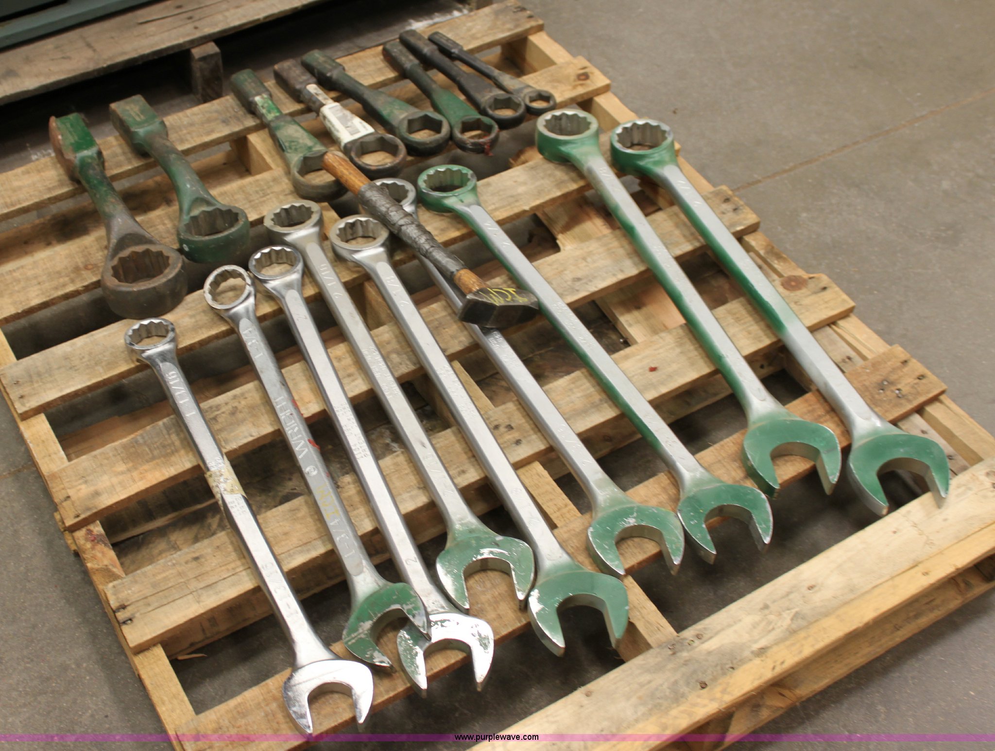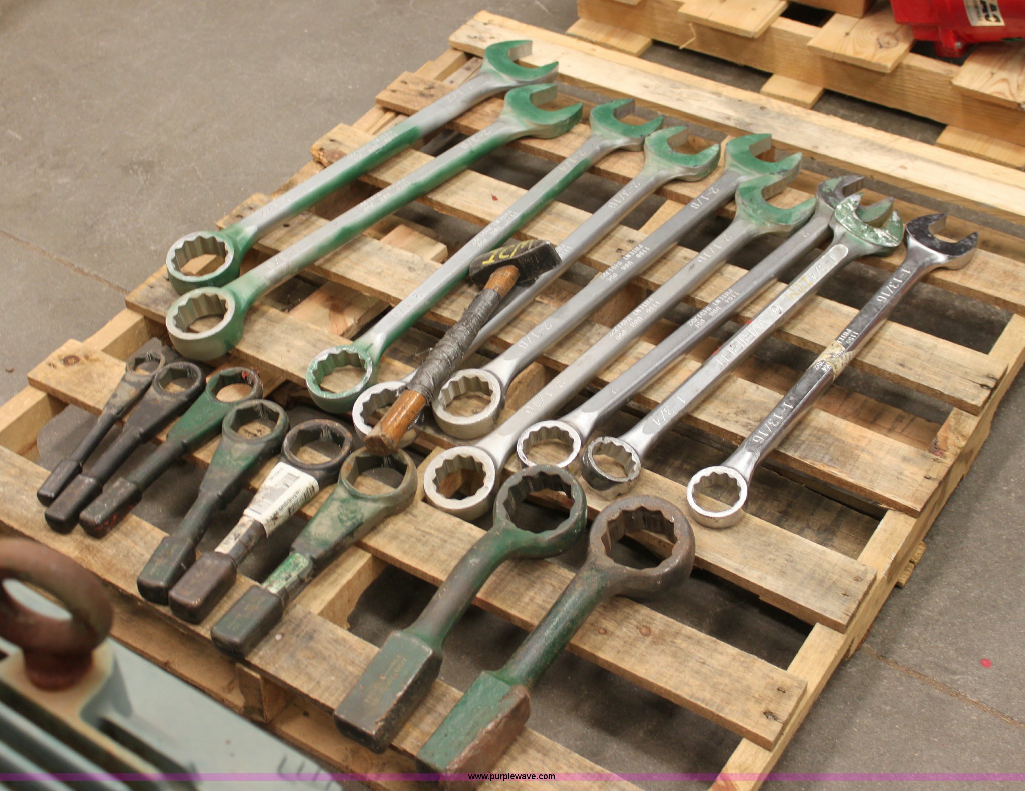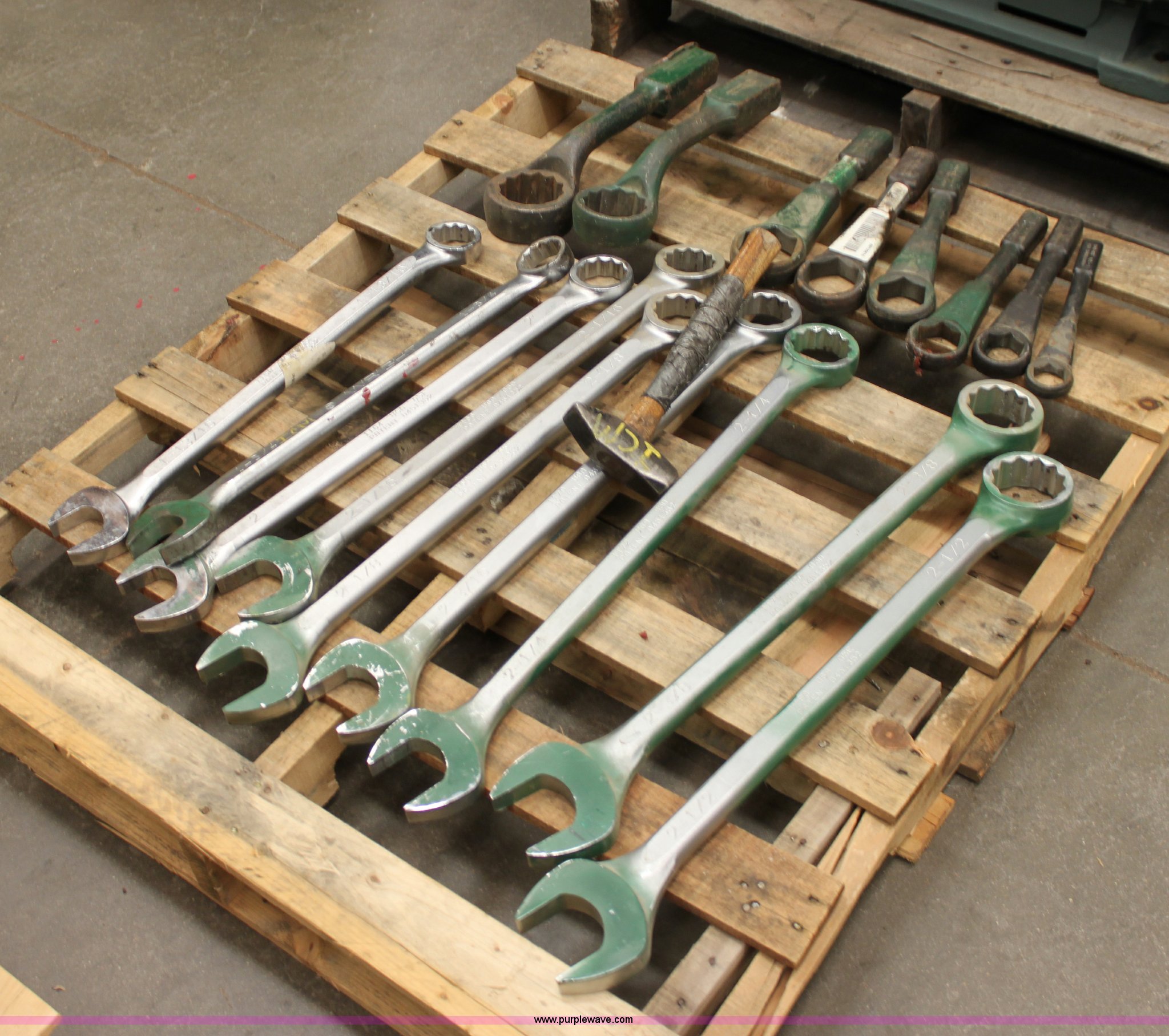 Purple Wave is selling a used Tools in Kansas. This item is a Assorted wrenches with the following: (9) standard wrenches, 1 13/16, 1 3/4, 2, 2 1/16, 2 1/8, 2 3/16, 2 1/4, 2 3/8, 2 1/2, (8) spanner wrenches, 1 1/4, 1 5/8, 1 13/16, 2, 2 3/16, 2 3/8, 2 5/8, 2 3/4