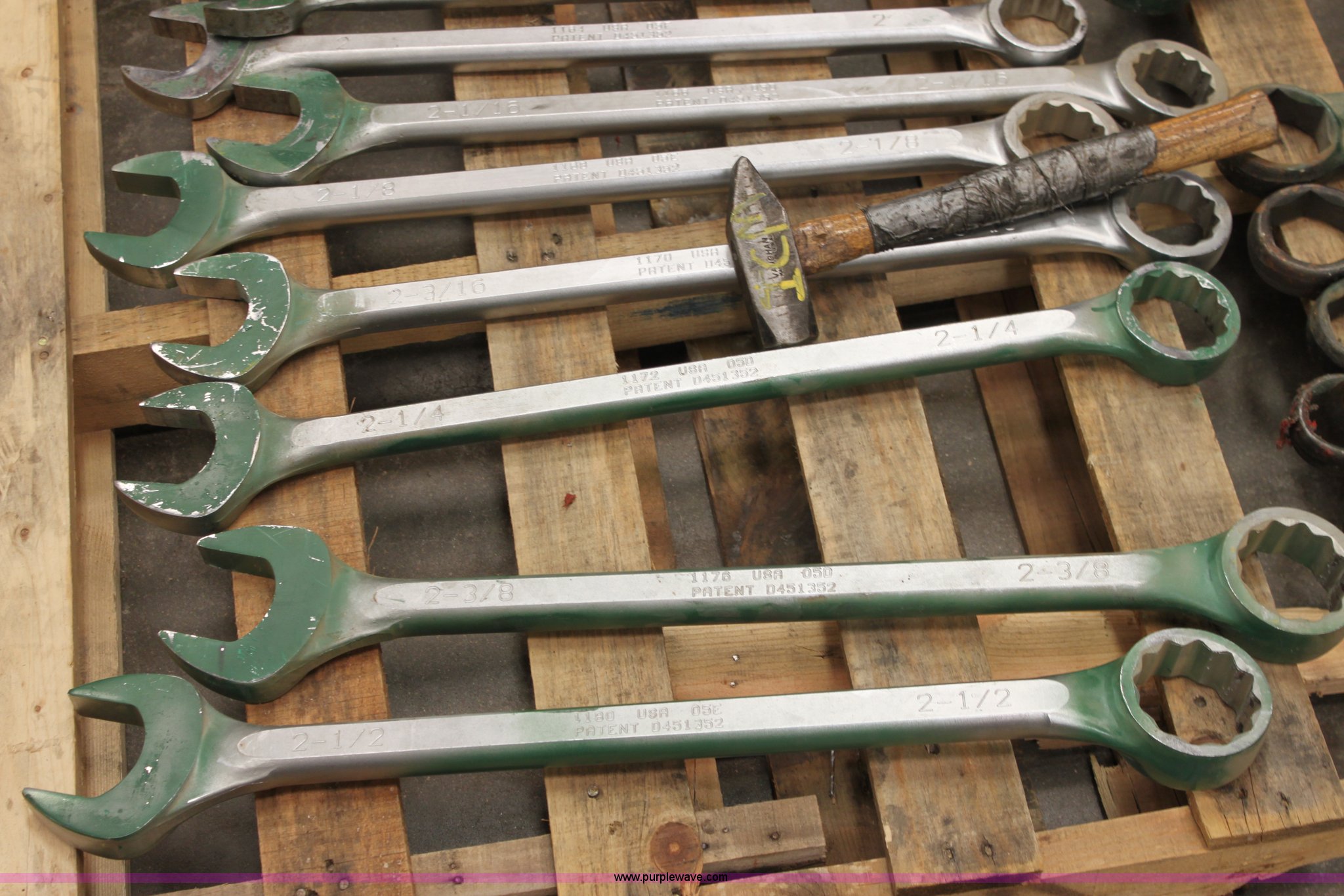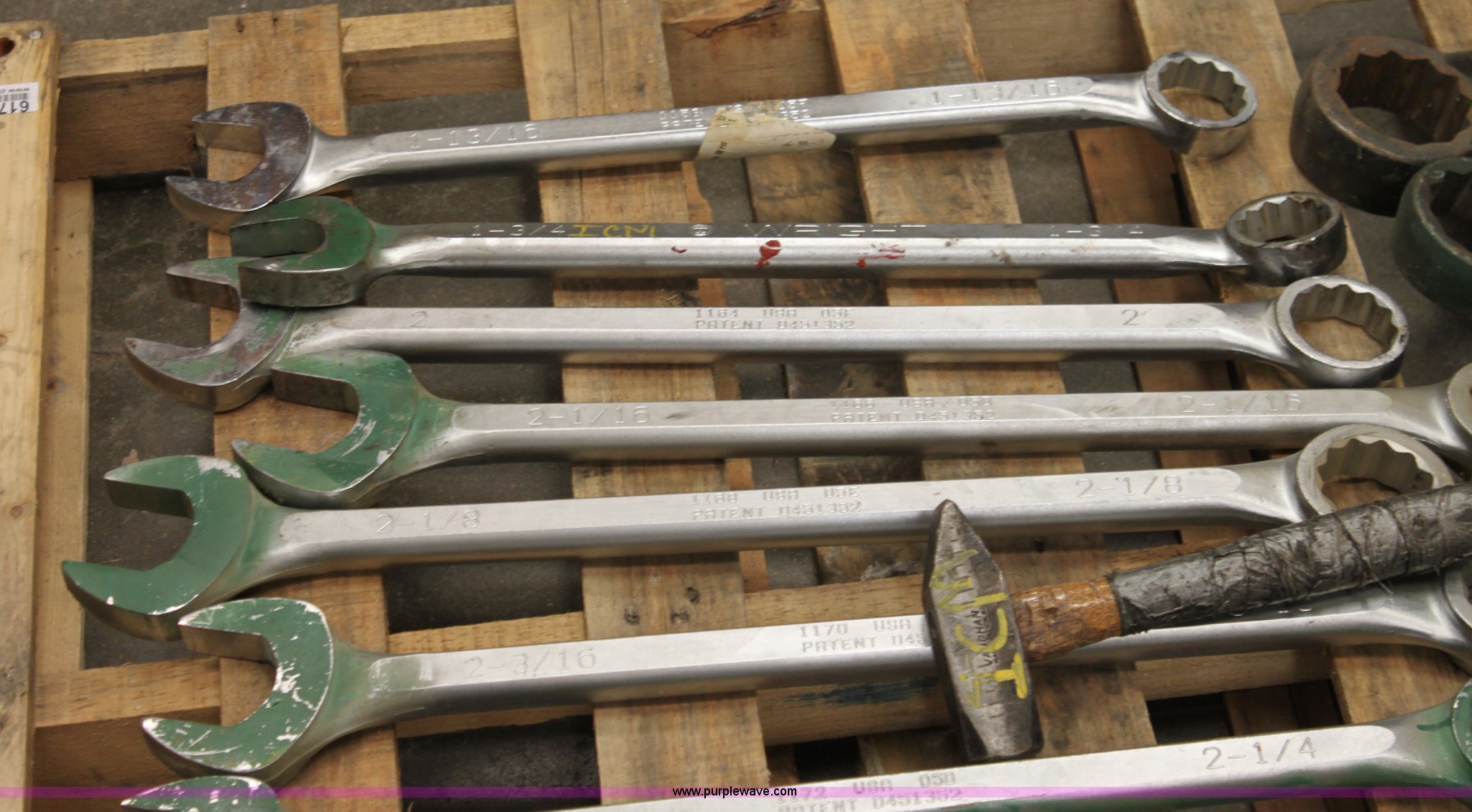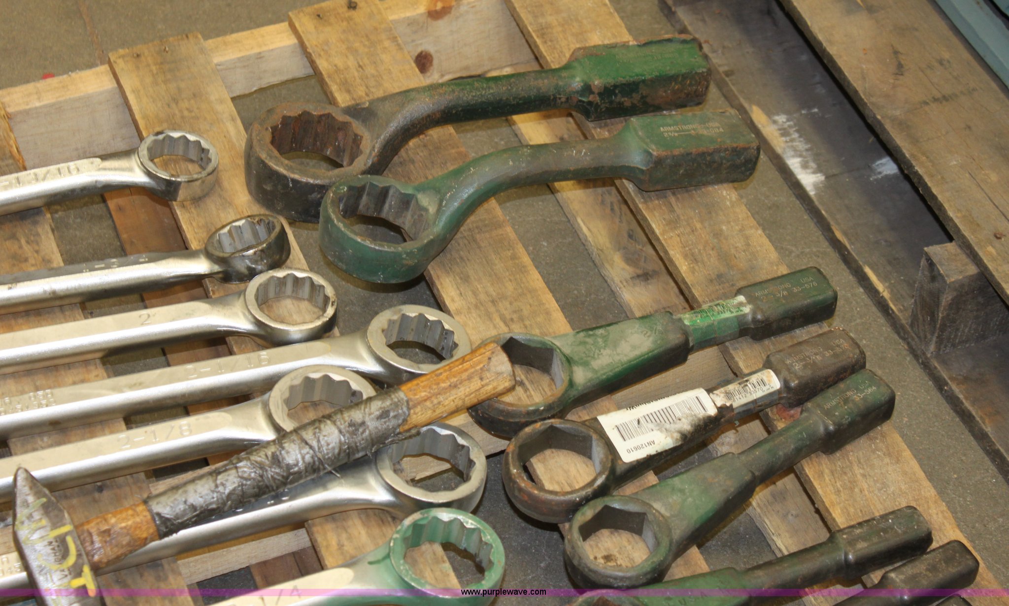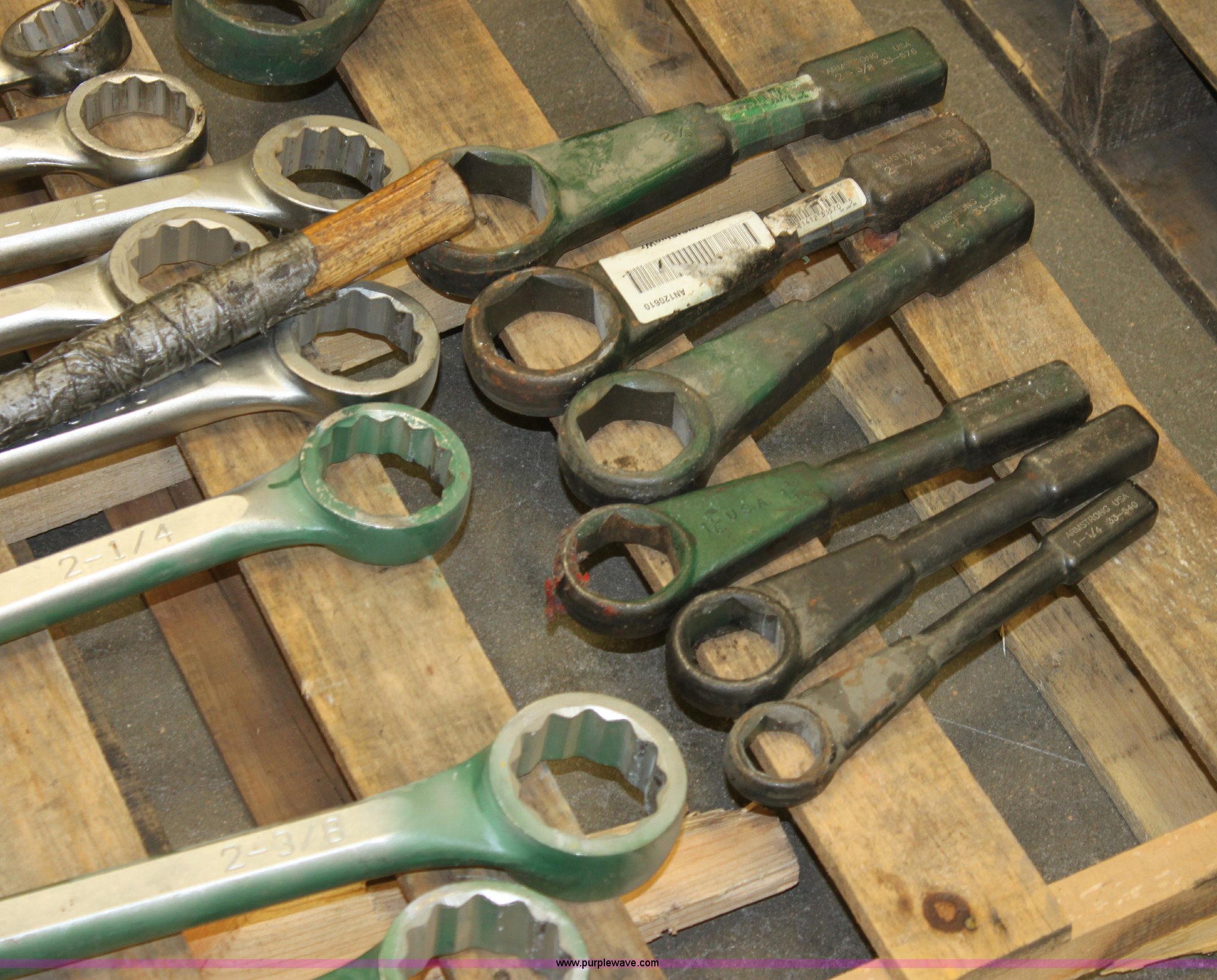 Purple Wave is selling a used Tools in Kansas. This item is a Assorted wrenches with the following: (9) standard wrenches, 1 13/16, 1 3/4, 2, 2 1/16, 2 1/8, 2 3/16, 2 1/4, 2 3/8, 2 1/2, (8) spanner wrenches, 1 1/4, 1 5/8, 1 13/16, 2, 2 3/16, 2 3/8, 2 5/8, 2 3/4