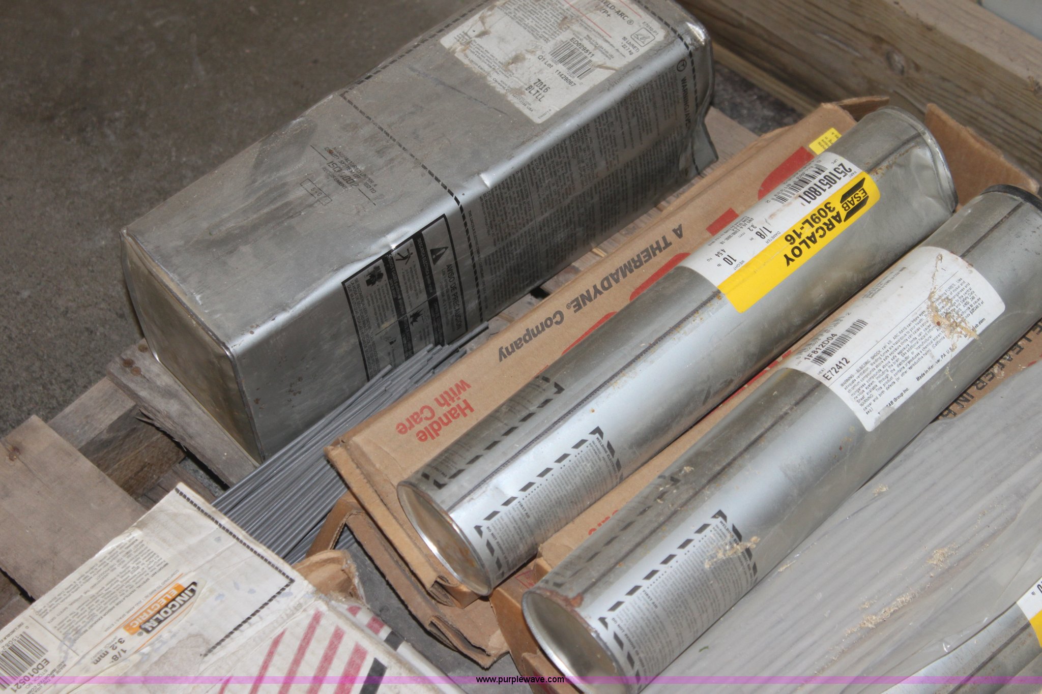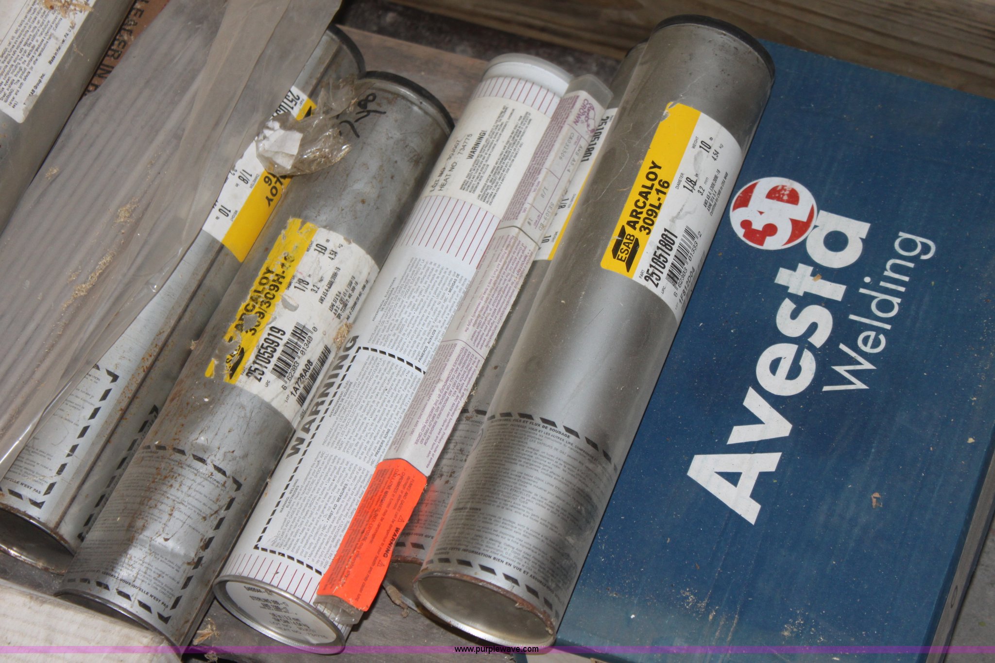 Purple Wave is selling a used Welder (Manual) in Kansas. This item is a Assorted welding rod with the following: ESAB Arcaloy 308L-16, 1/8", Mckay 316/316H-17, 1/8", Lincoln Jetweld 3, 1/8", Arcaloy 309L-16, 1/8", Lincoln Fleetweld 5Pt 3/32, And more