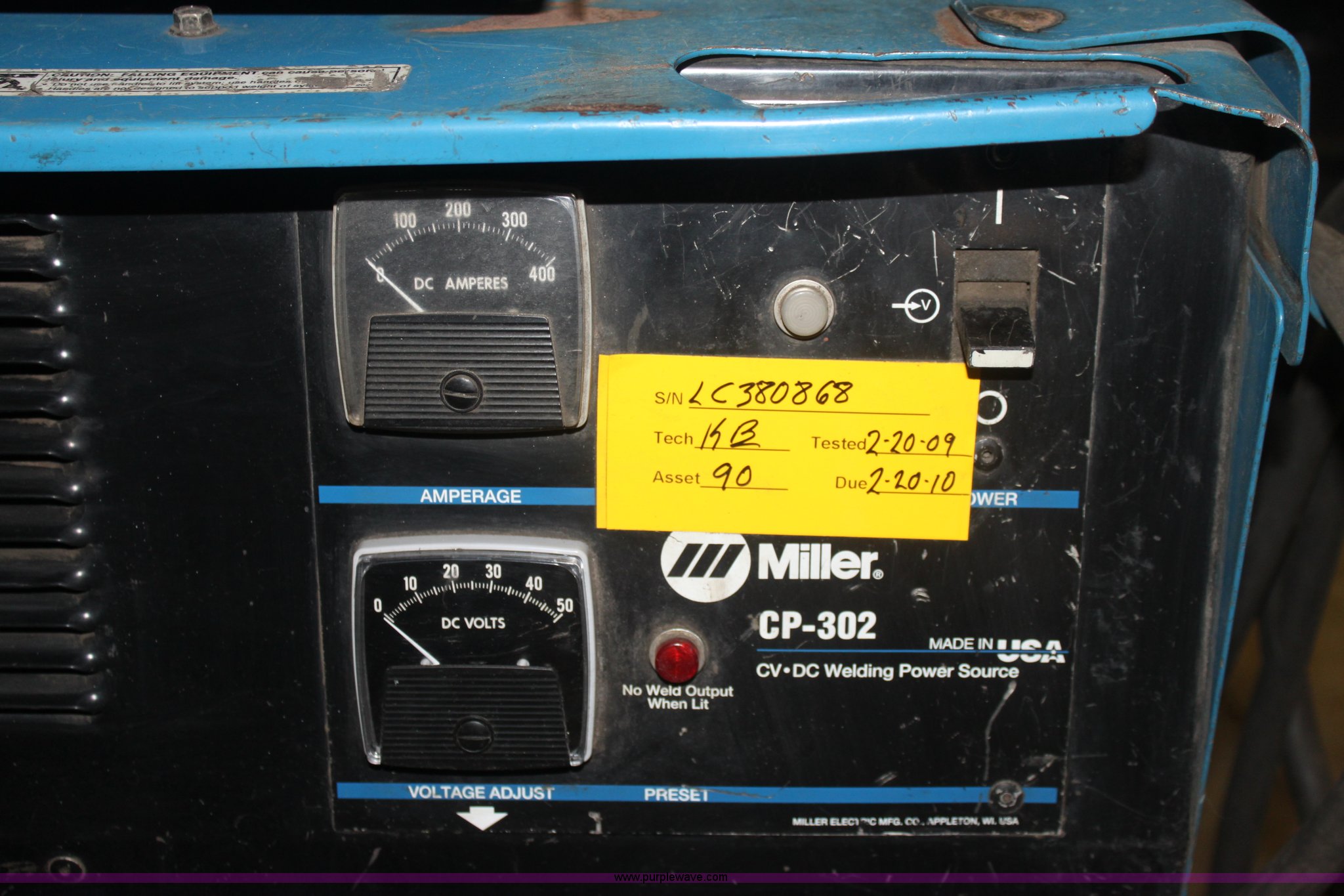 Purple Wave is selling a used Welder (Manual) in Kansas. This item is a Miller 22A wire feed welder with the following: Three phase, 200/230/460 volt, 60 hertz, 100% duty cycle, CP-302 CV DC power source, Serial LC380868