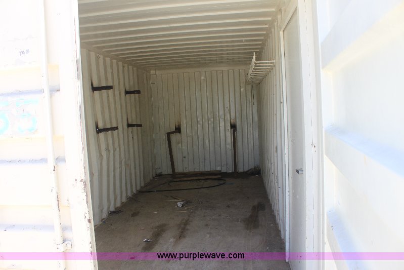 Purple Wave is selling a used Storage or Shipping Container in Kansas. This item is a Storage container with the following: 20' x 8' x 94", Rear and side entry, Dented on one side