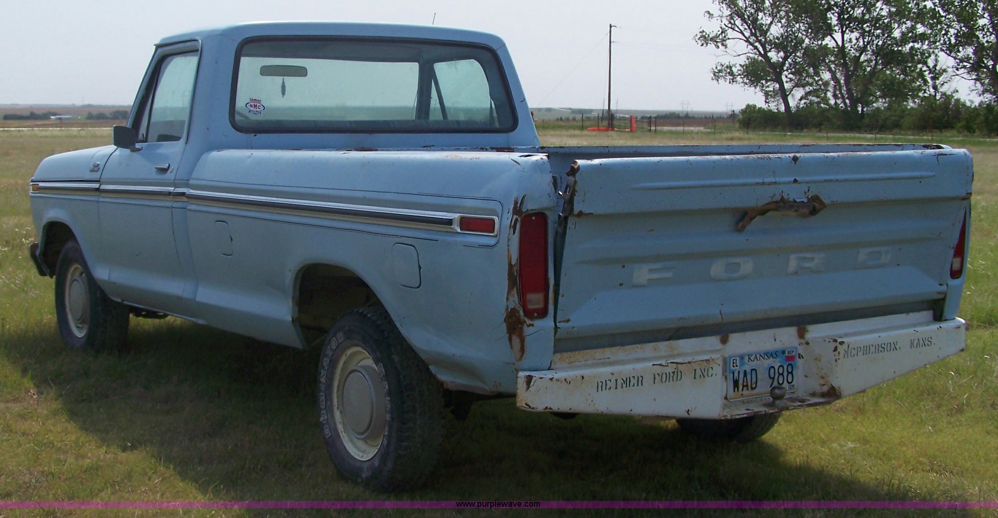 Purple Wave is selling a used Passenger Vehicle in Kansas. This item is a 1979 Ford F100 Custom pickup truck with the following: 98,056 miles on odometer, 302 V8 gas engine, Automatic transmission, AC and heat, AM/FM/CD, Manual windows and locks, P235/175R15 tires, Cosmetic damage, Body damage