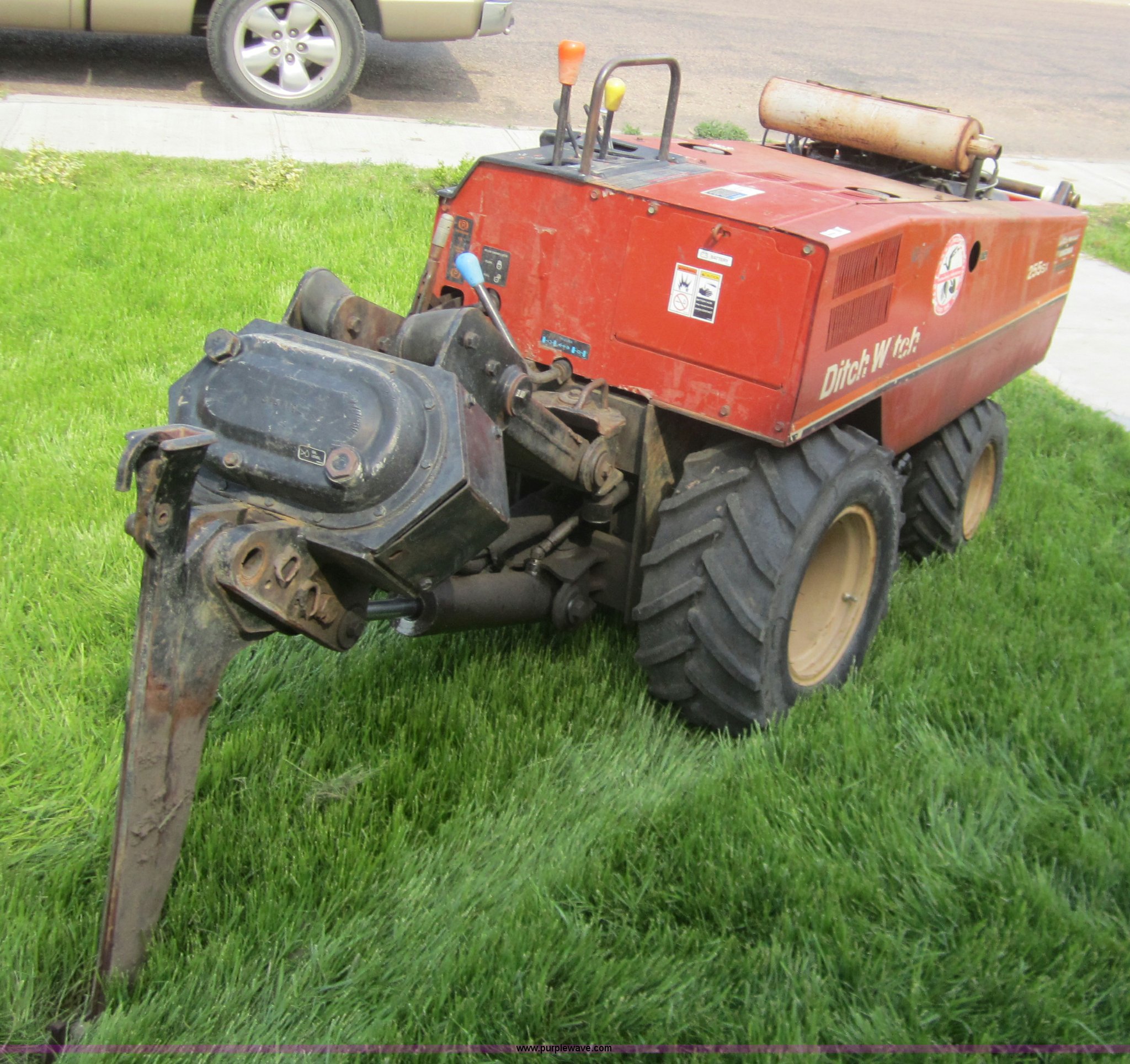 Purple Wave is selling a used Cable Plow in Kansas. This item is a Ditch Witch 255SX vibratory plow with the following: 883 hours on meter, Linmar twin cylinder gas engine, Hydrostatic drive with Hi/Low, Four wheel drive, 2' cable bit for 1/2" cable, 1' cable bit for 1/2" cable, Front boring drive line, 70' of boring rod, 2" bit, 1" rod, 23x10 rear tires, 16x6.5-8 front tires, Serial 4G0225