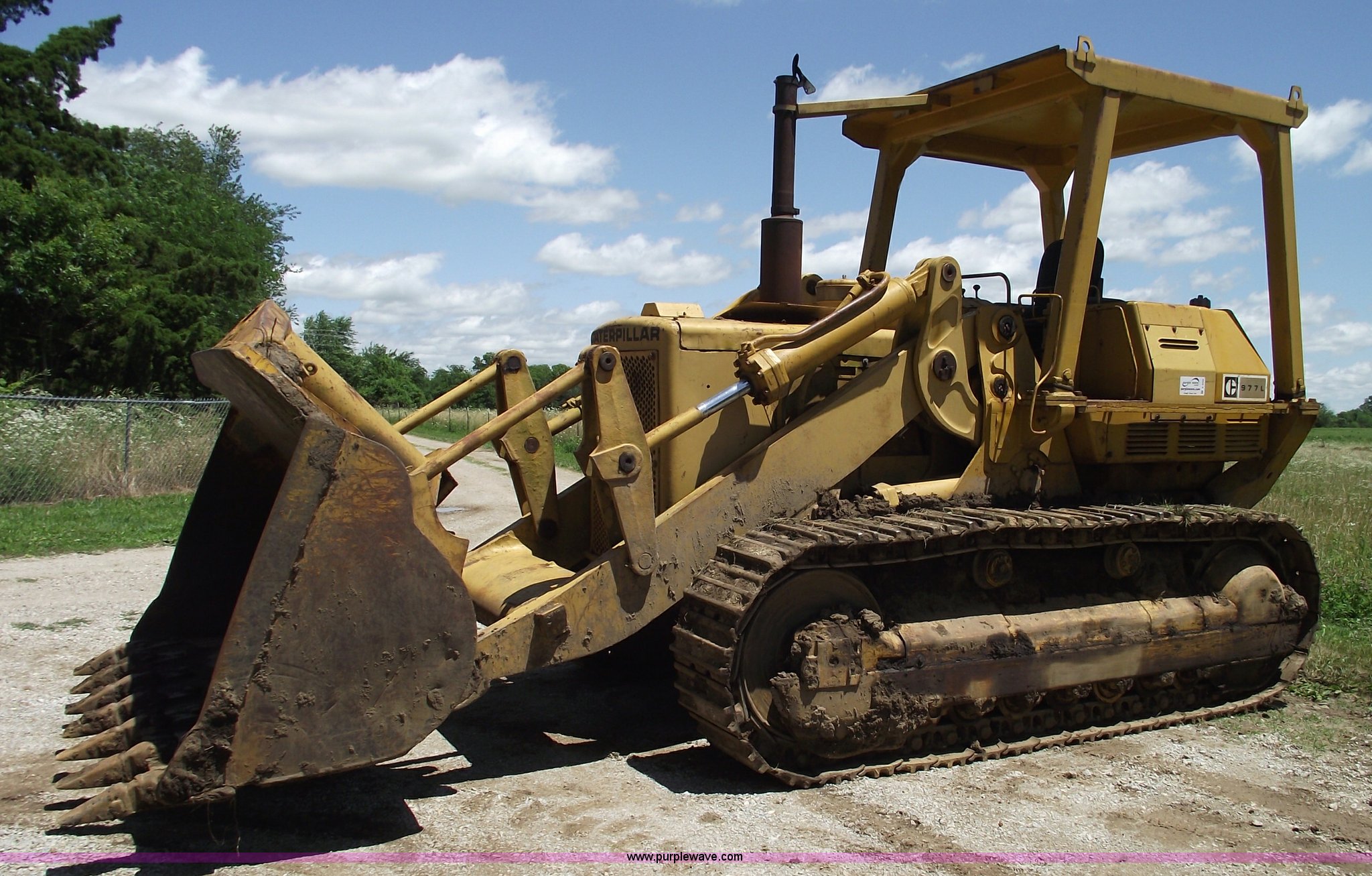 Purple Wave is selling a used Crawler Loader in Missouri. This item is a 1972 Caterpillar 977L track loader with the following: Caterpillar 3306 diesel engine, 190 HP, ROPS, 2.3 cu. yd. bucket with seven teeth, 18"W double grouser tracks, 47,641 lbs. base operating weight, Serial 11K4836