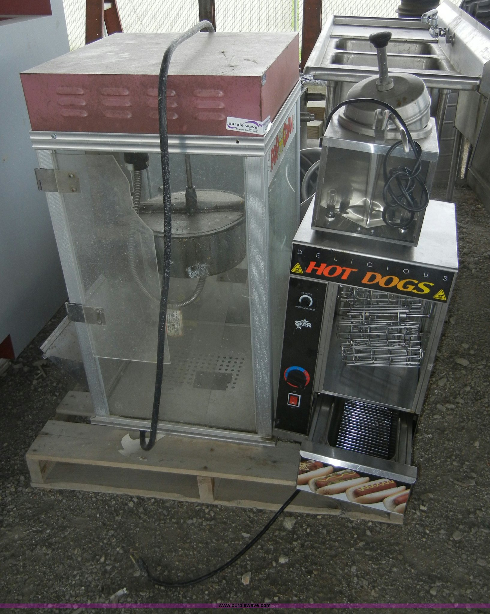 Purple Wave is selling a used Restaurant Equip. in Kansas. This item is a Restaurant equipment with the following: Popcorn popping machine, Star hot dog machine, Berkel EF20 mixer, Dough hook, mixer, and paddle, Single phase, 110/120 volt