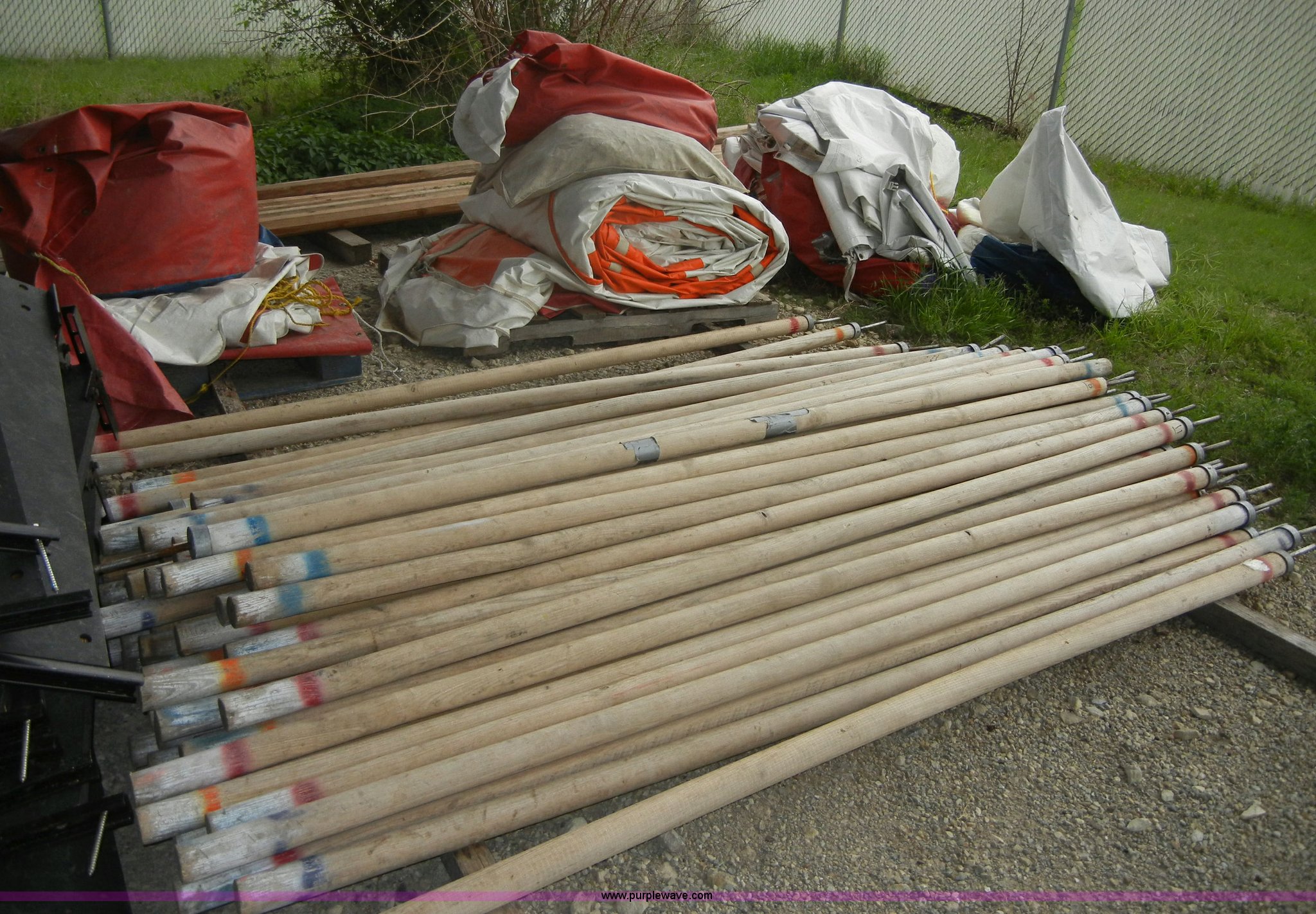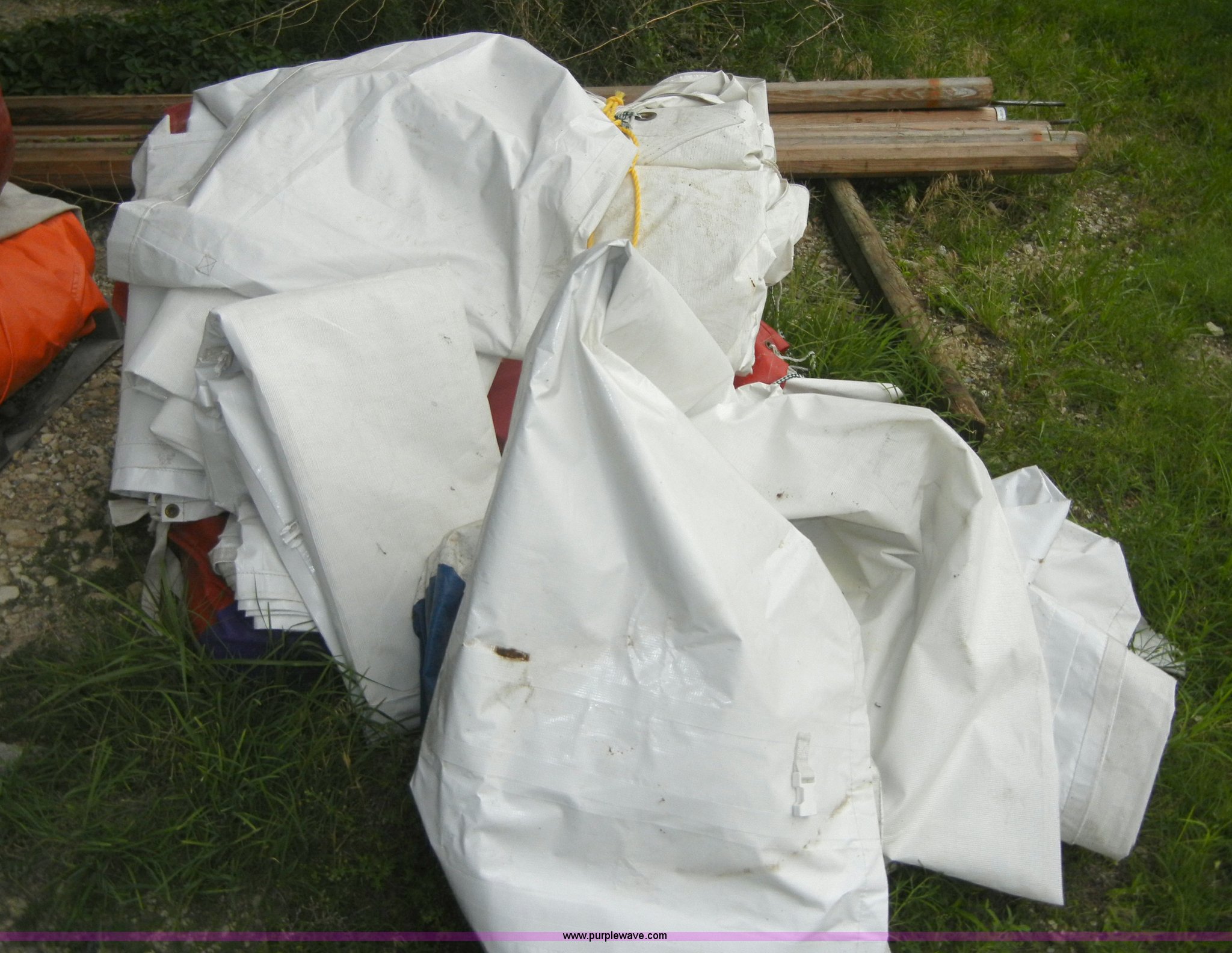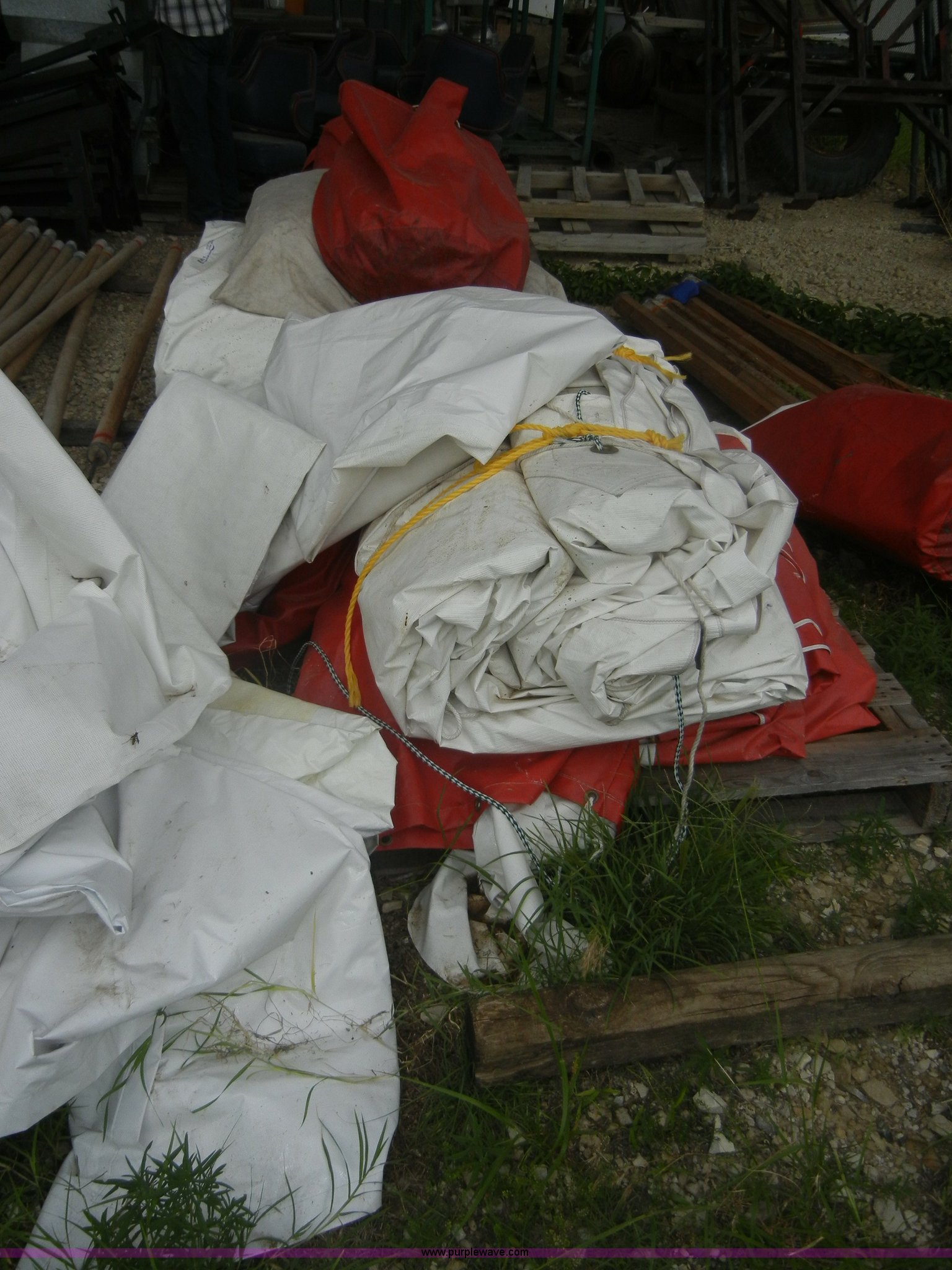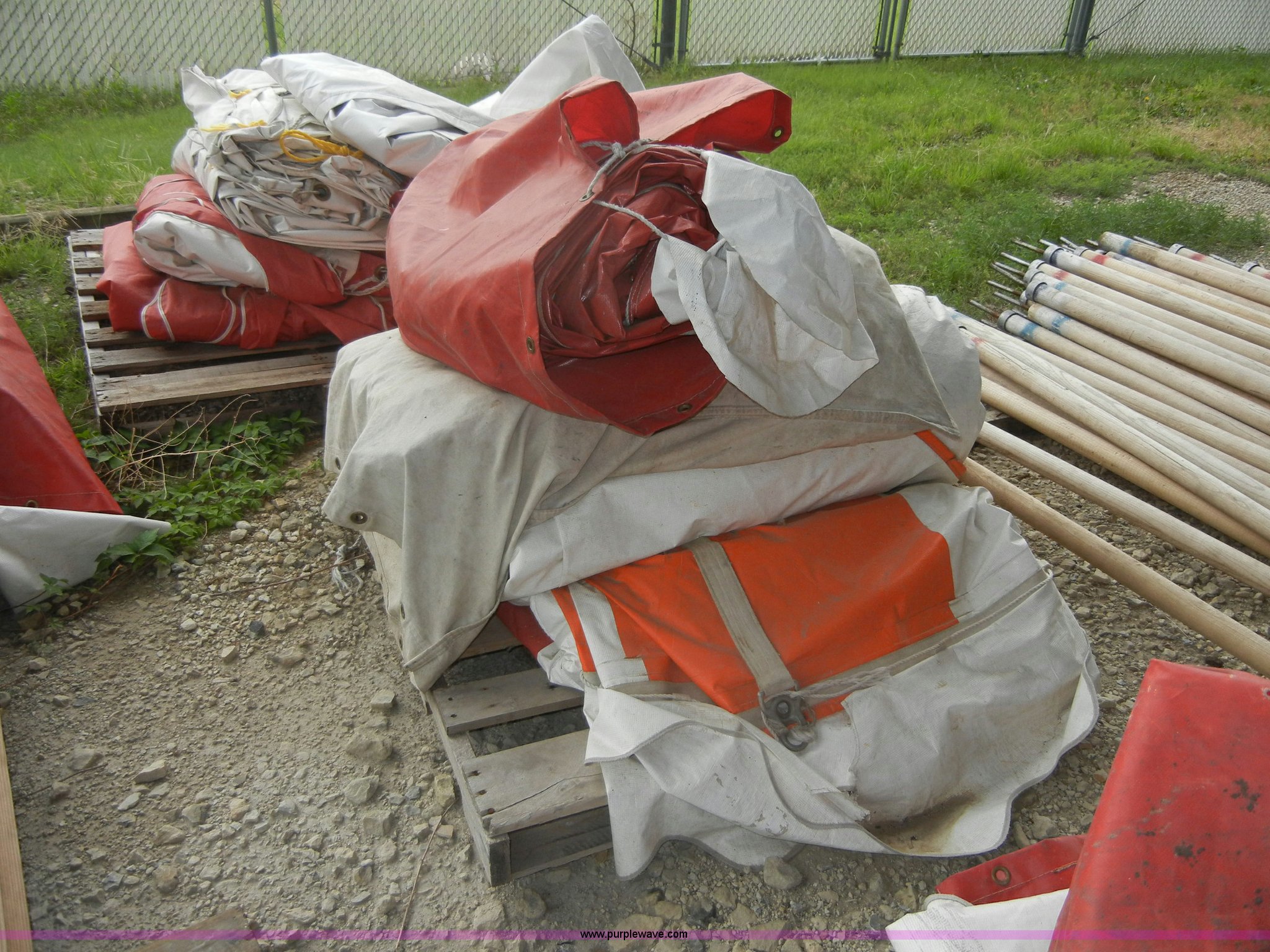 Purple Wave is selling a used Sporting Goods in Kansas. This item is a (6) assorted tents and canopies with the following: (3) carnival tents, (3) canopies, Wood poles included, Unknown sizes