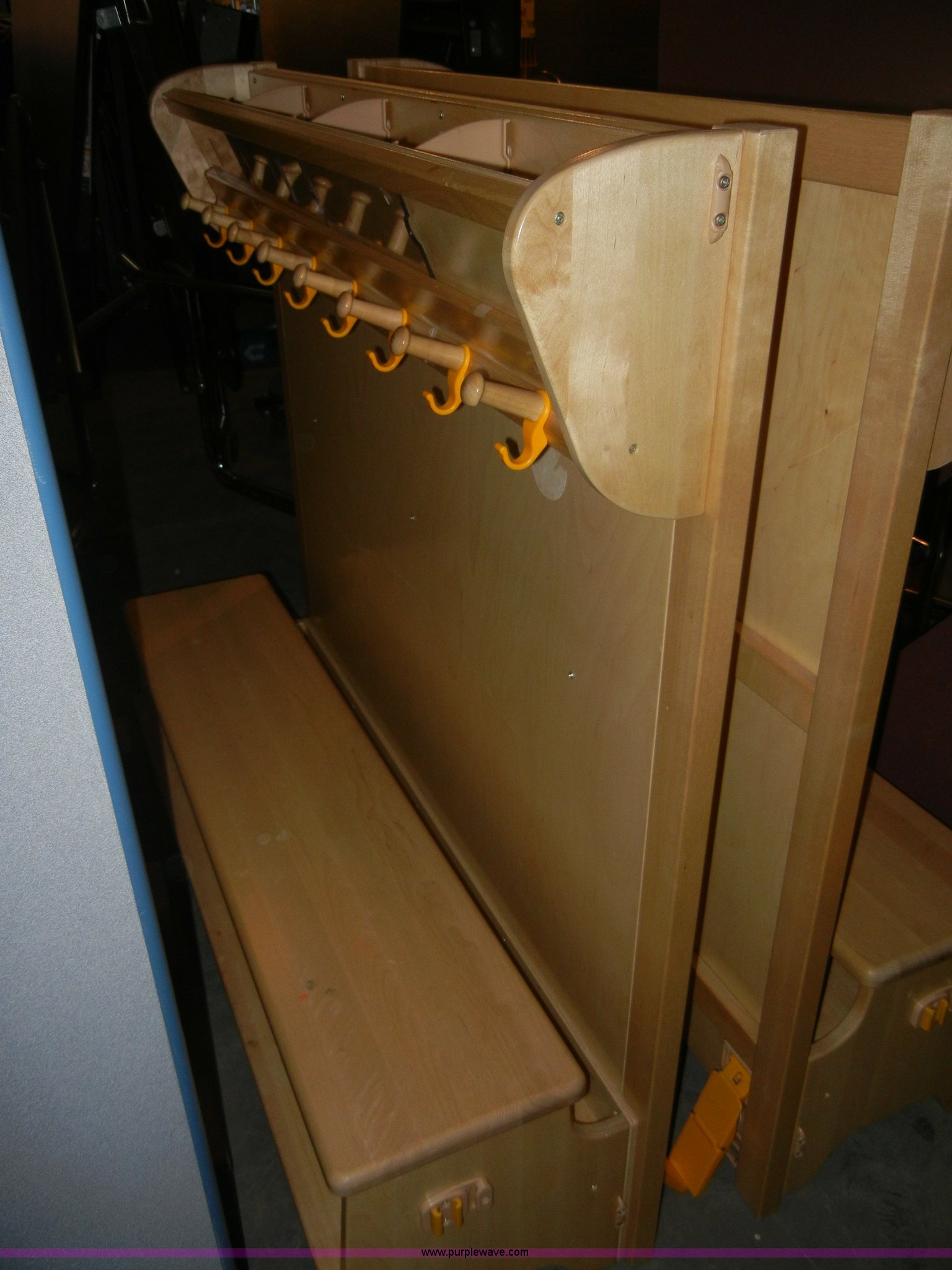 Purple Wave is selling a used Furniture in Kansas. This item is a Assorted children's furniture with the following: (2) coat racks, (6) shelving units