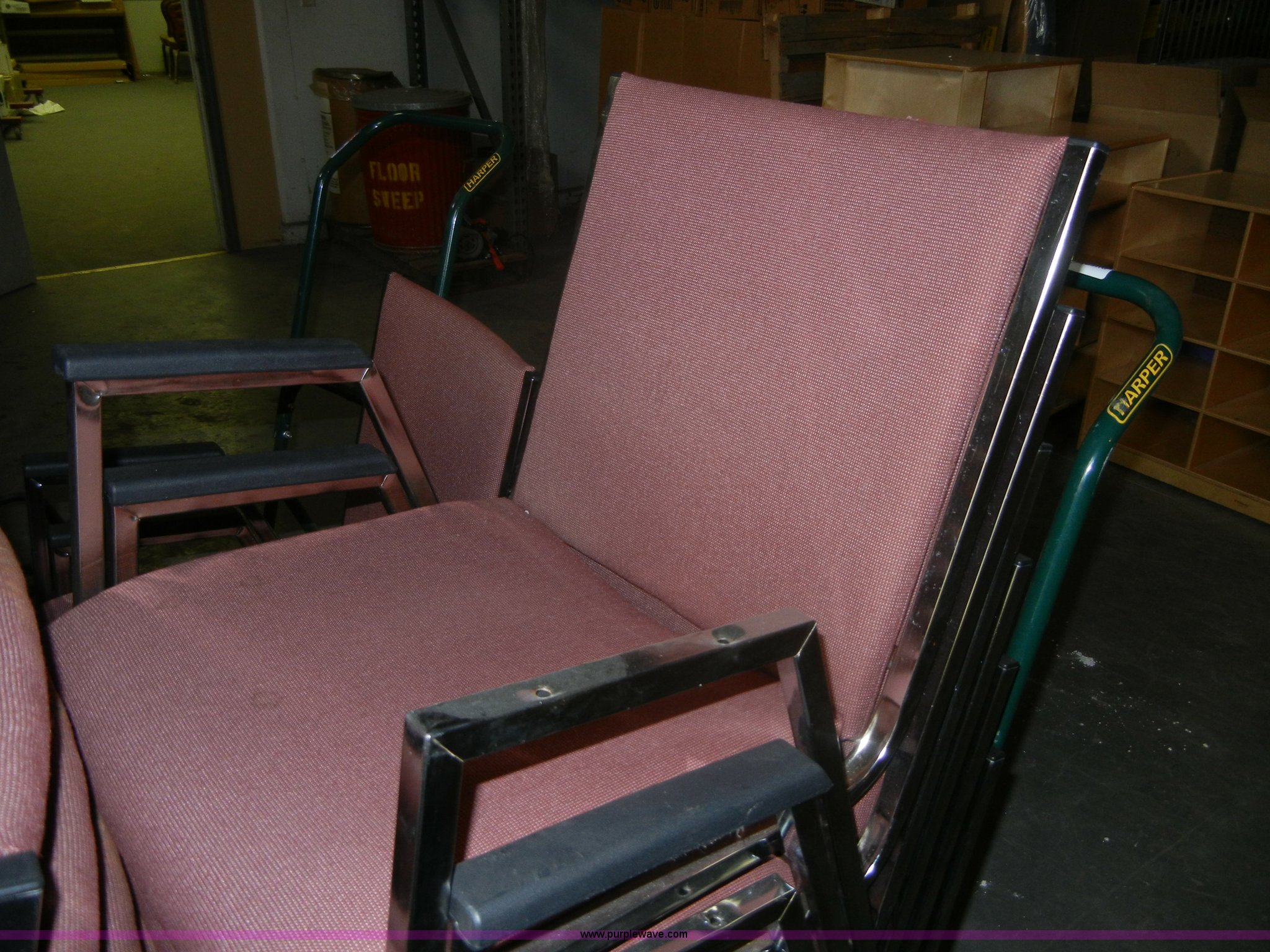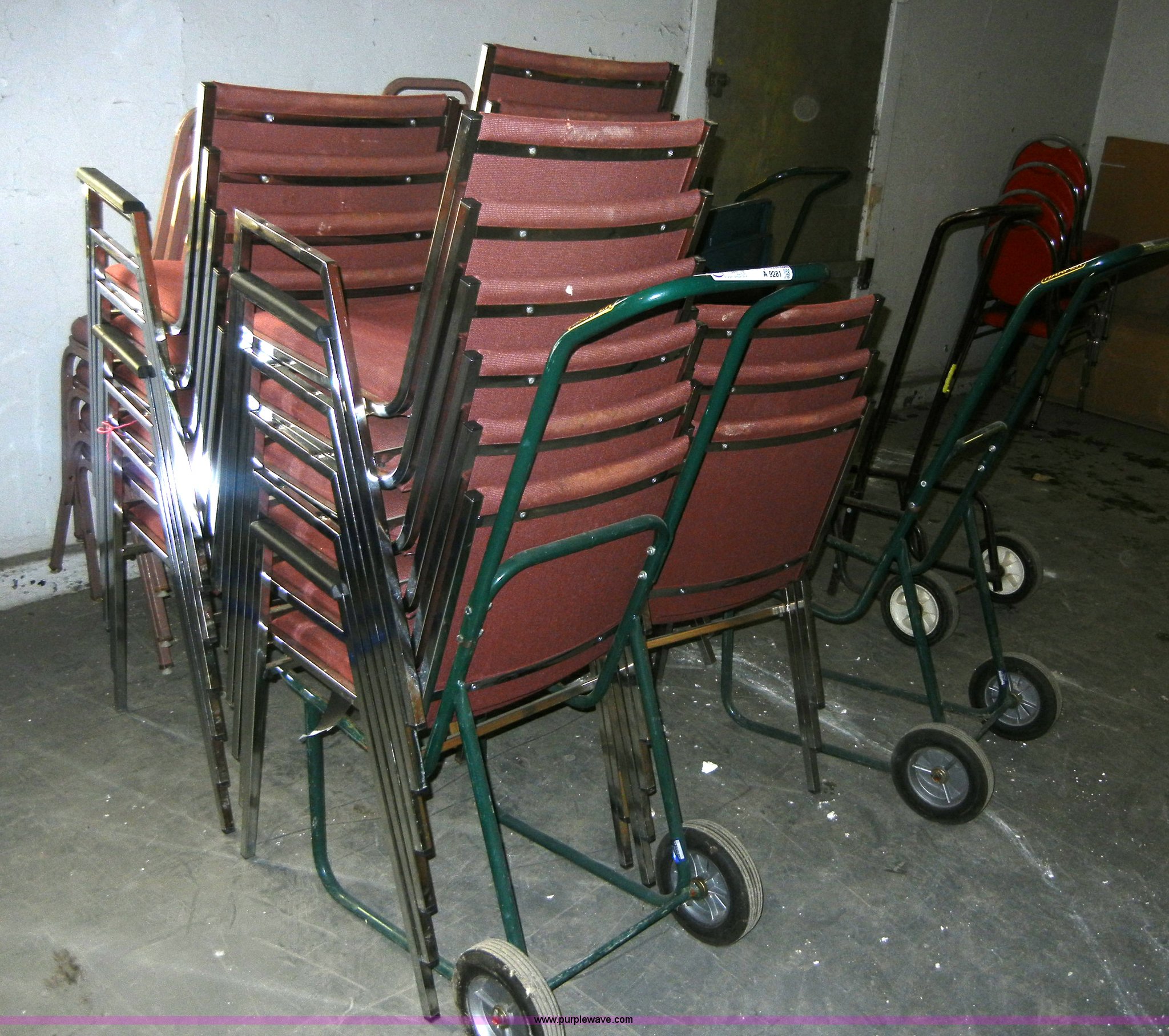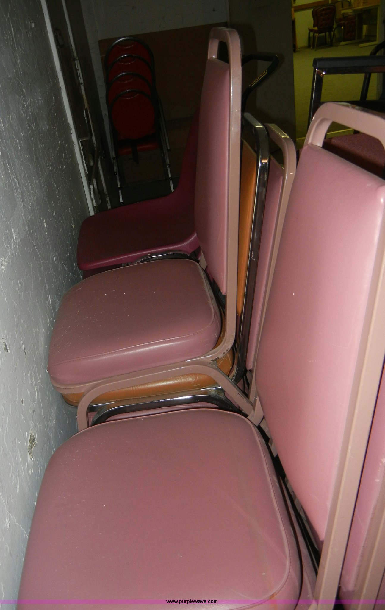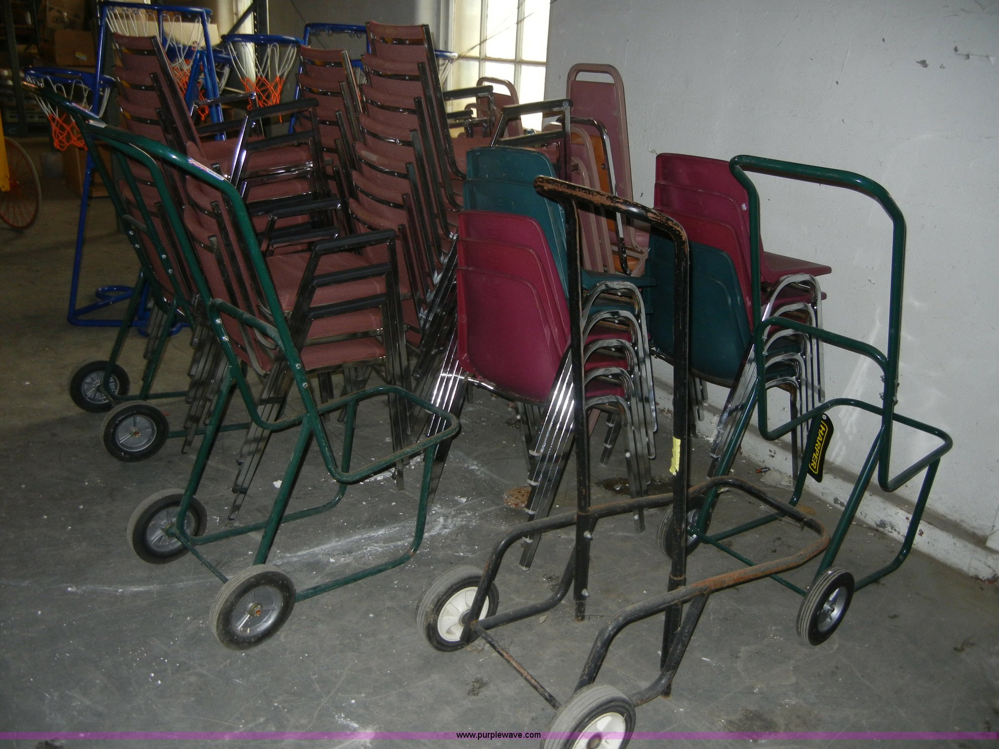 Purple Wave is selling a used Furniture in Kansas. This item is a (41) assorted chairs with the following: (41) assorted chairs. (4) chair dollies. 314 Marshall Ave.. Fort Riley, KS 66442