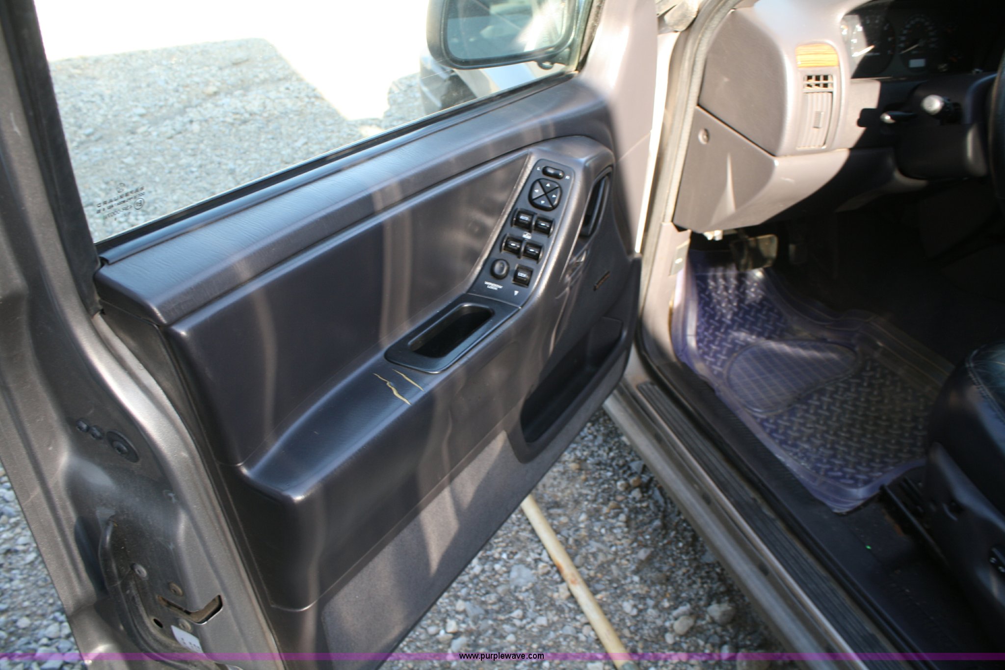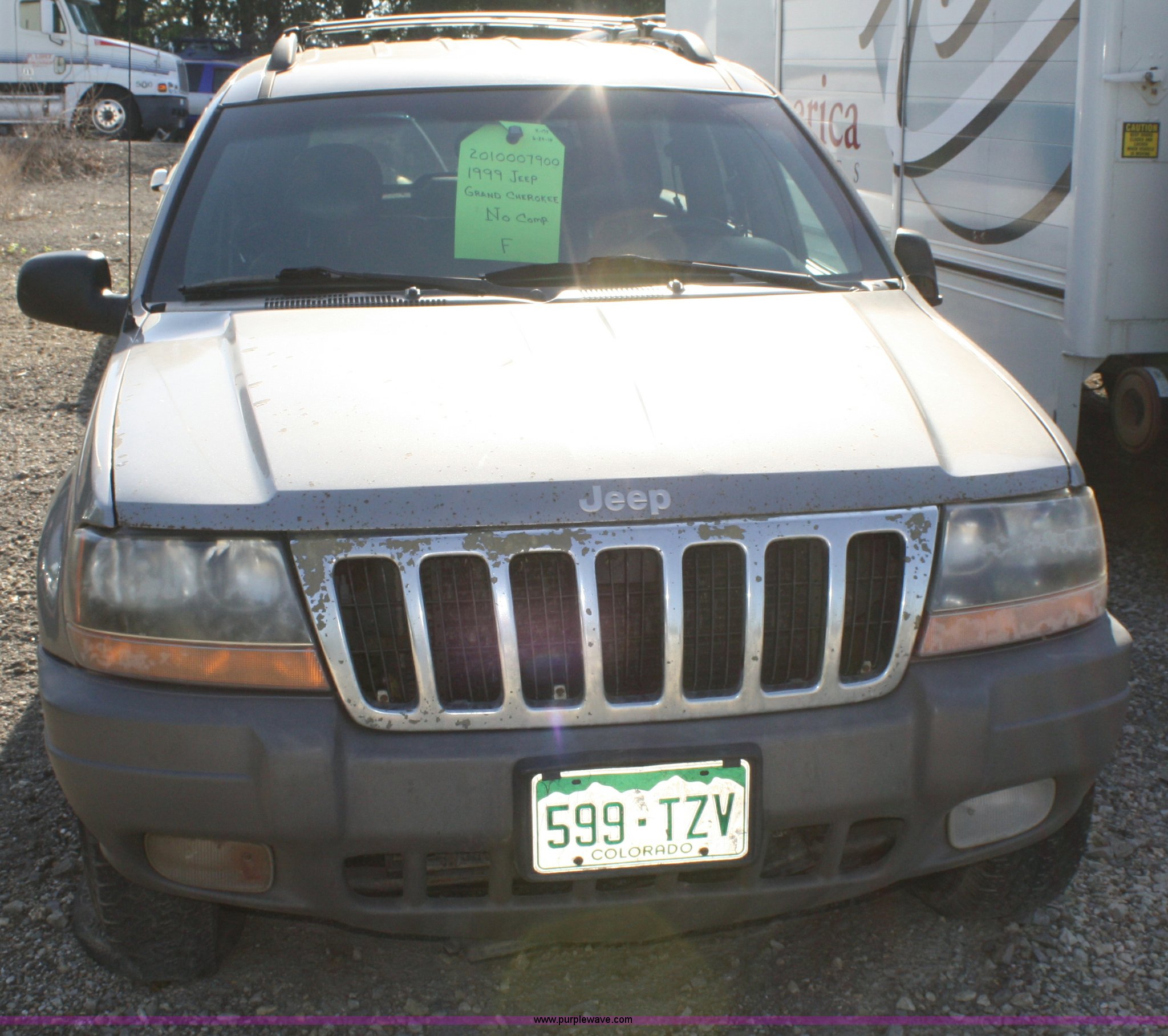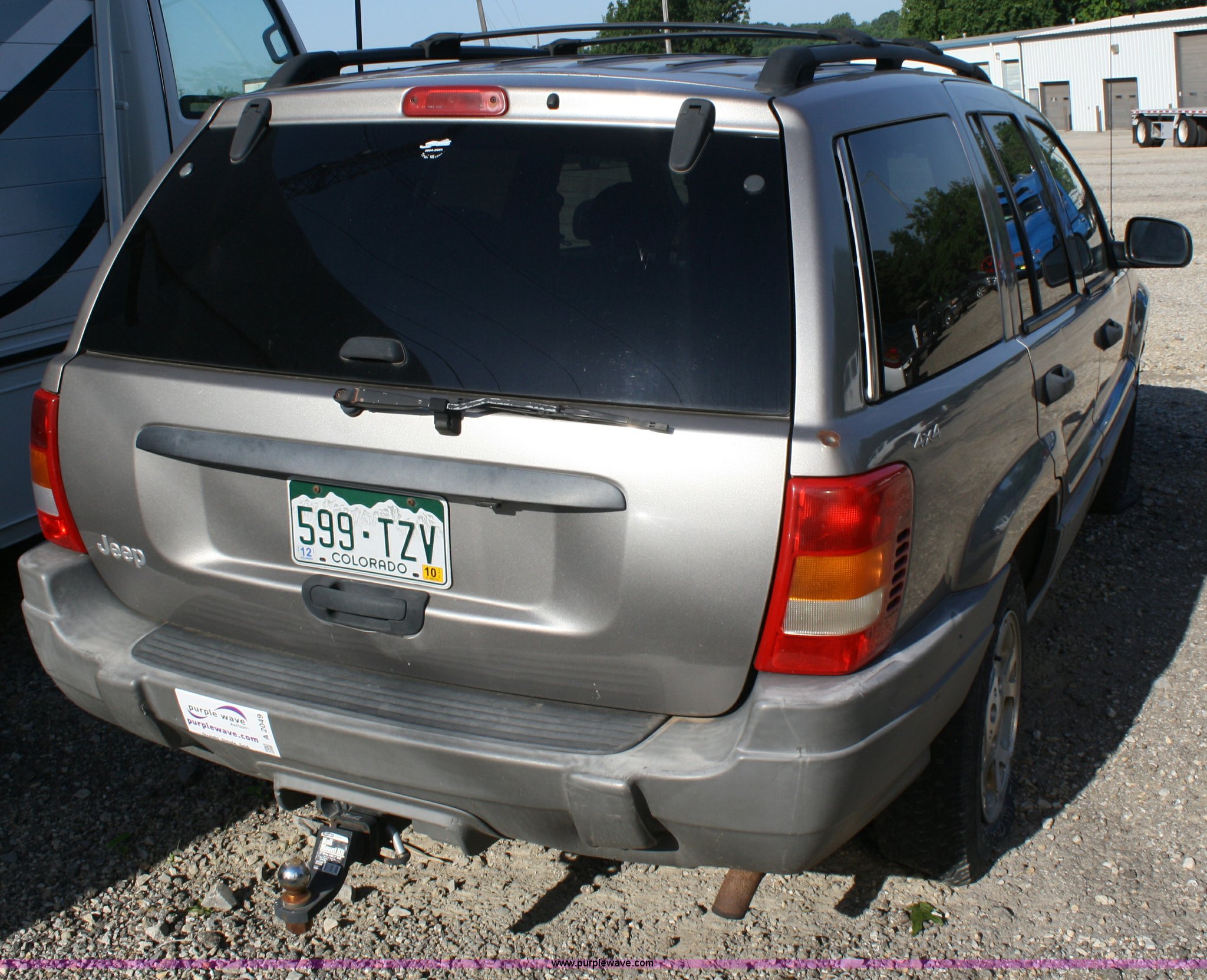 Purple Wave is selling a used Passenger Vehicle in Kansas. This item is a 1999 Jeep Grand Cherokee Laredo SUV with the following: Mileage unknown, 4.0L I6 SFI engine, Automatic transmission, Four wheel drive, AC and heat, Tilt, Cruise, AM/FM/CD, Power windows, locks, mirrors, and seats, Vinyl seats, cracked, Receiver hitch, Trailer wiring, 235/75R16 tires, flat, Rust spots, Exterior cosmetic damage, Battery dead, Unit# 16