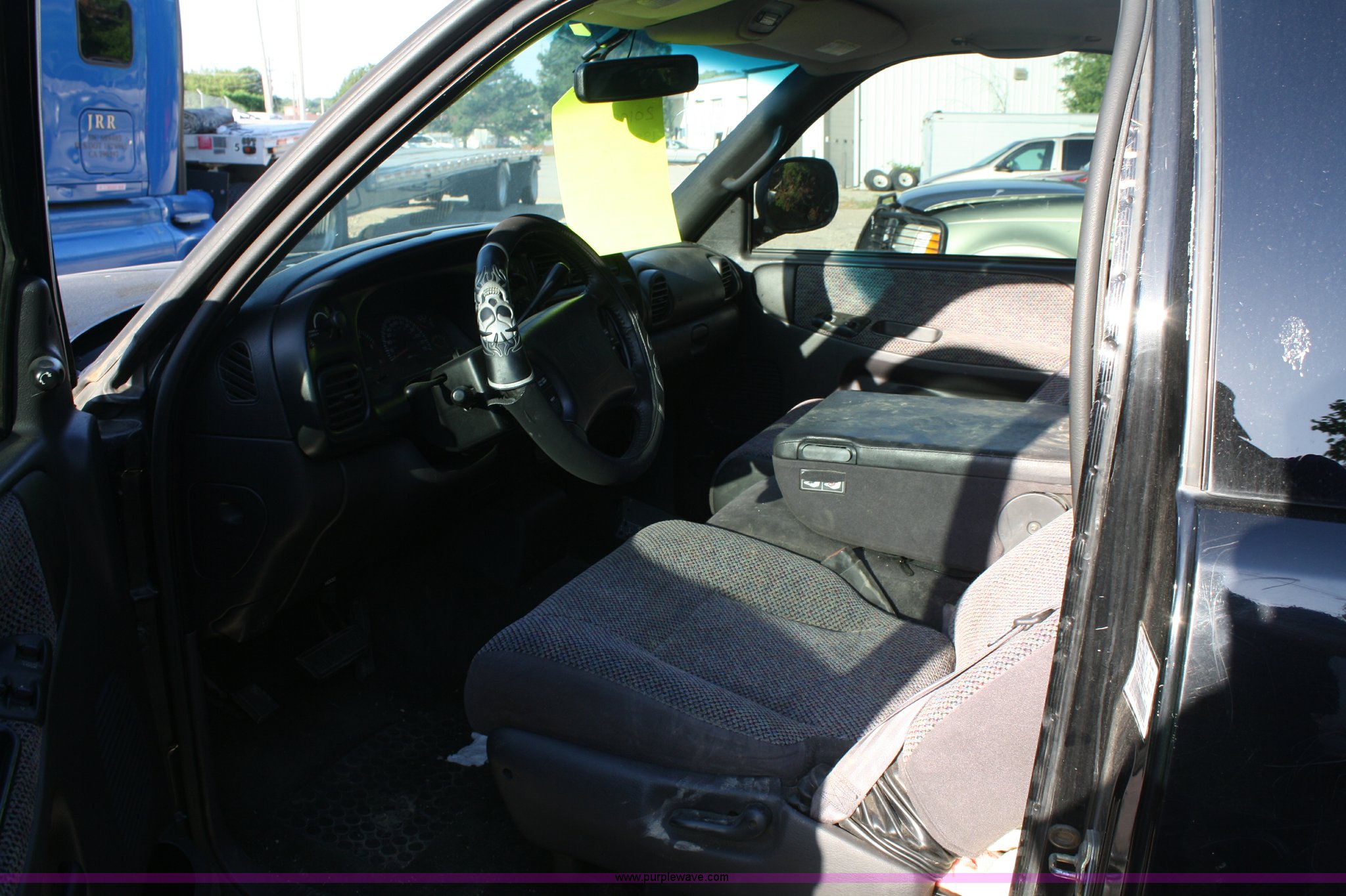 Purple Wave is selling a used Passenger Vehicle in Kansas. This item is a 1998 Dodge Ram 1500 pickup truck with the following: Mileage unknown, Magnum 5.9L V8 engine, Automatic transmission, AC and heat, Tilt, Cruise, AM/FM/CD, Power windows, locks, and mirrors, Cloth seats, Star boards, Grill guard, Receiver hitch, Bed liner, 265/75R16 tires, Missing intake manifold, Interior/exterior cosmetic damage, Battery dead, Unit# 4