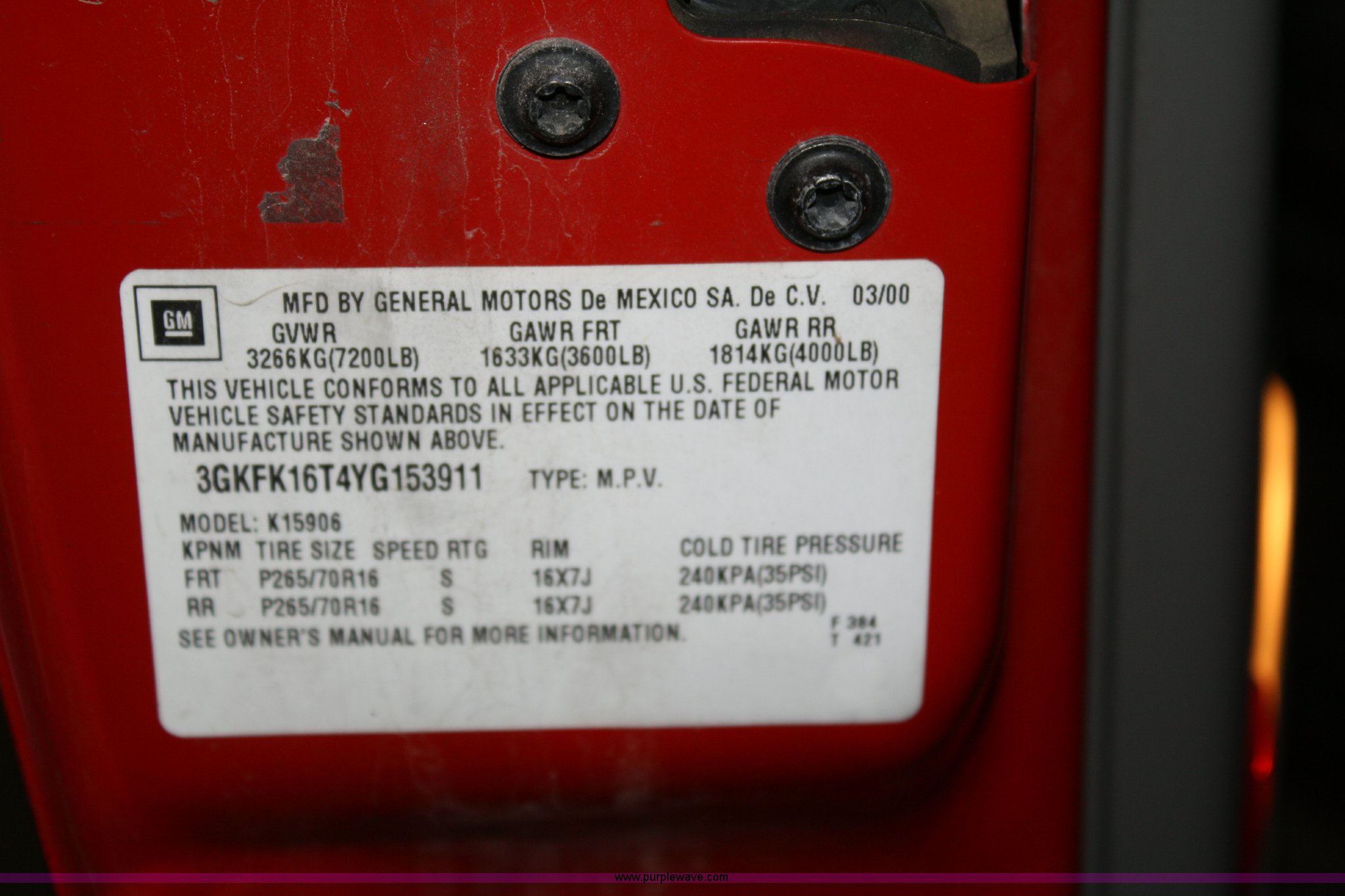 Purple Wave is selling a used Passenger Vehicle in Kansas. This item is a 2000 GMC Yukon XL 1500 SLE SUV with the following: 163,128 miles on odometer, 5.3L V8 SFI engine, Automatic transmission, AC and heat, Tilt, Cruise, AM/FM/CD, Power windows, locks, mirrors, and seats, Cloth seats, Running boards, Receiver hitch, Trailer wiring, 245/75R16 tires, Battery dead
