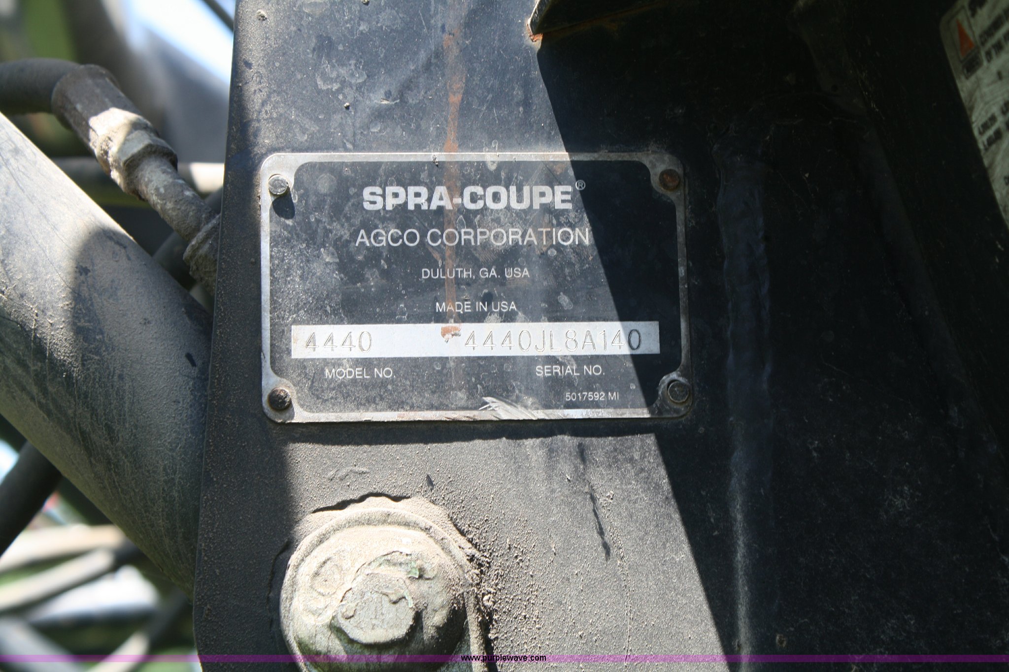 Take a look at this used 2000 AGCO Spra-Coupe 4440 sprayer being sold on July 21st, 2011 in the SOLD! Dean Ag Services Rental Fleet Reduction Internet Auction made by AGCO. Take a look at all of the item information below or take a look at similar auctions for Applicators.
