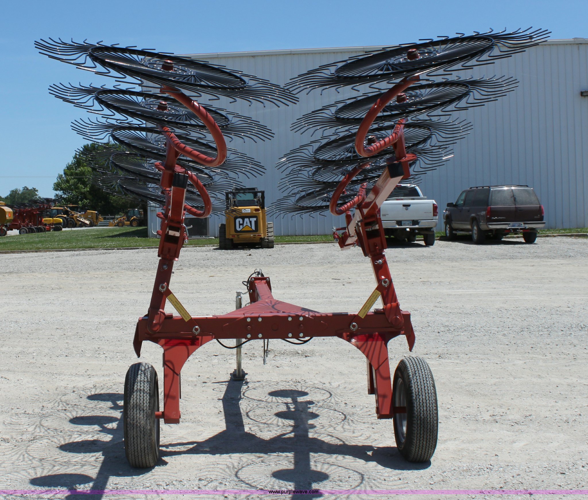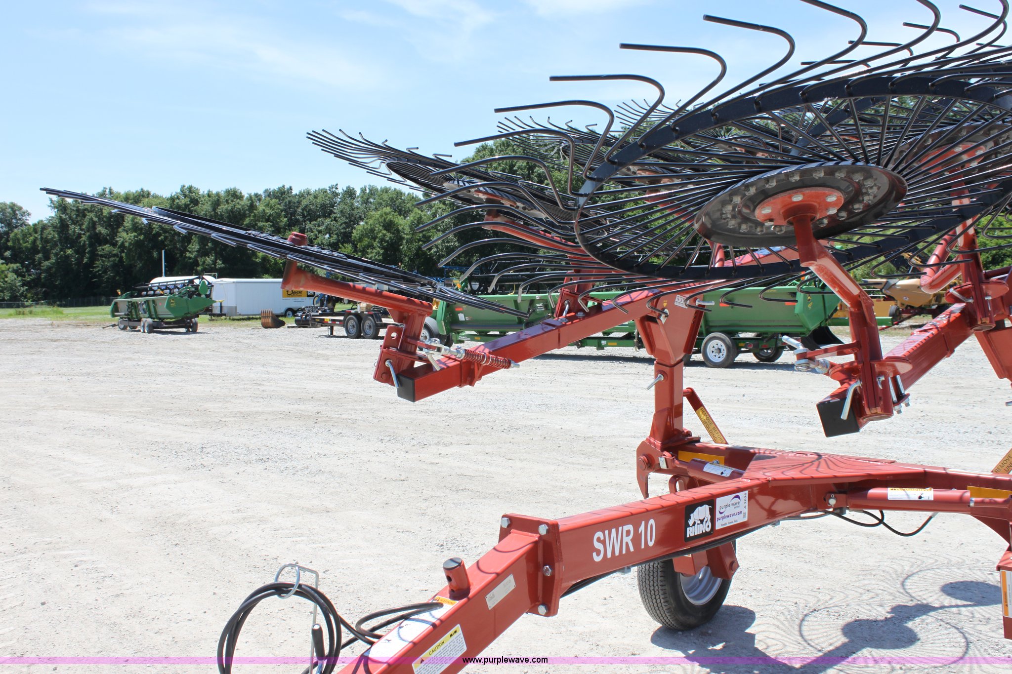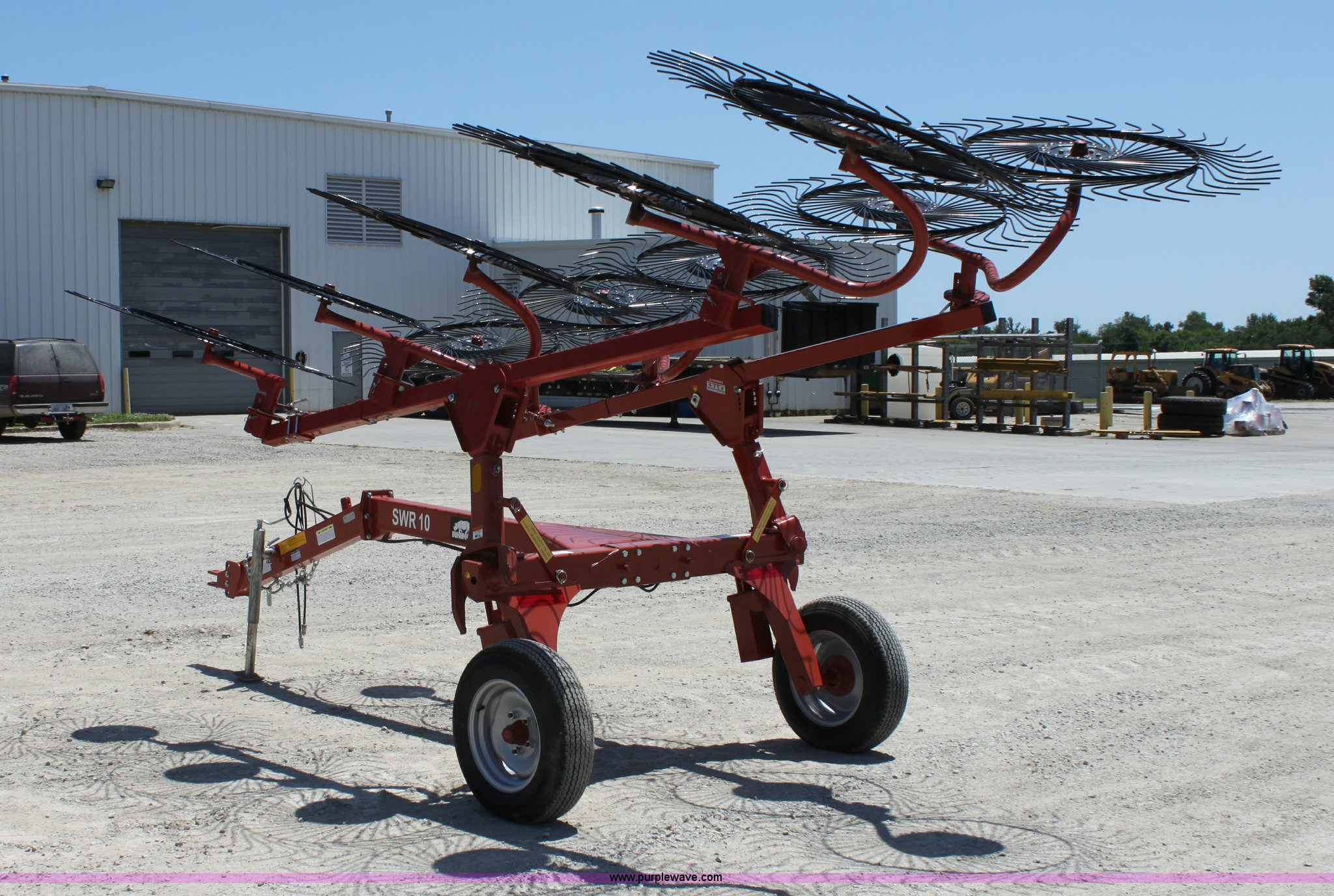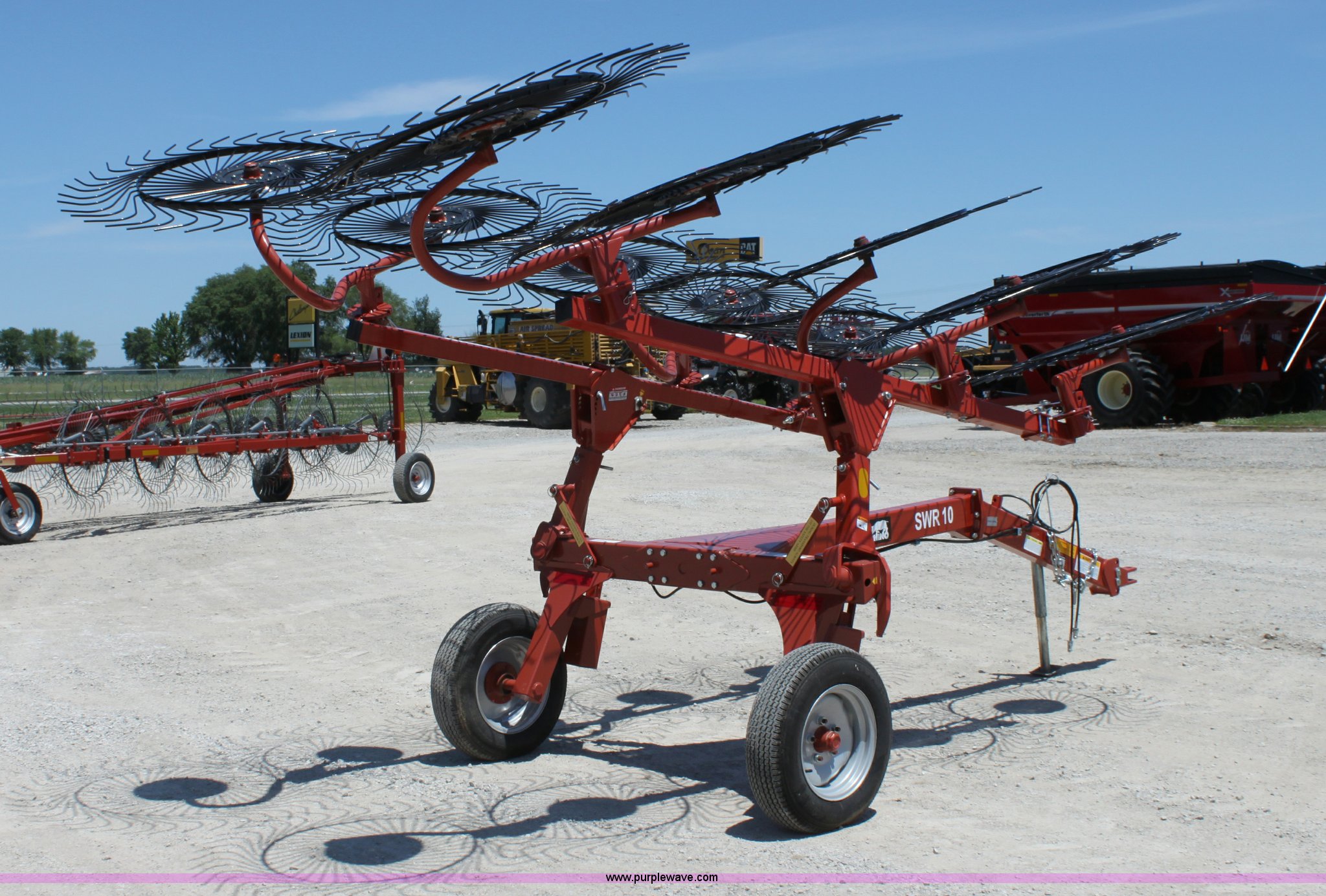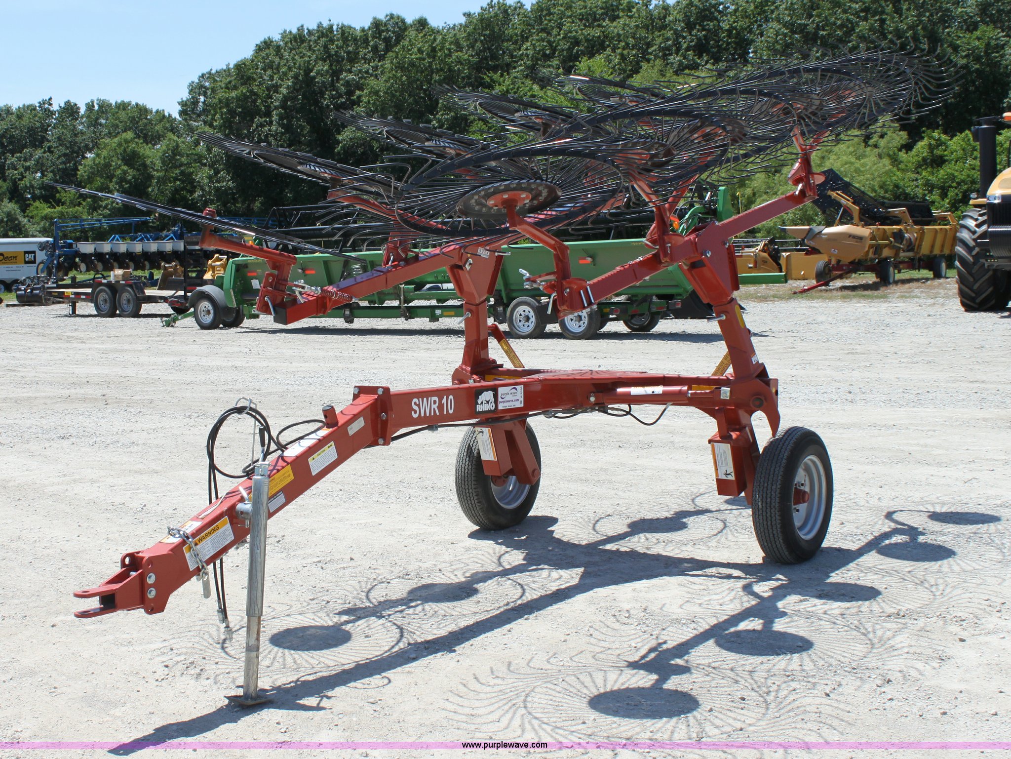 Purple Wave is selling a used Hay Rake in Missouri. This item is a 2009 Rhino SWR10 hay rake with the following: 10 wheels, Hydraulic fold, Two wheel carriage, Pin hitch, Serial 206701, ID 08F765