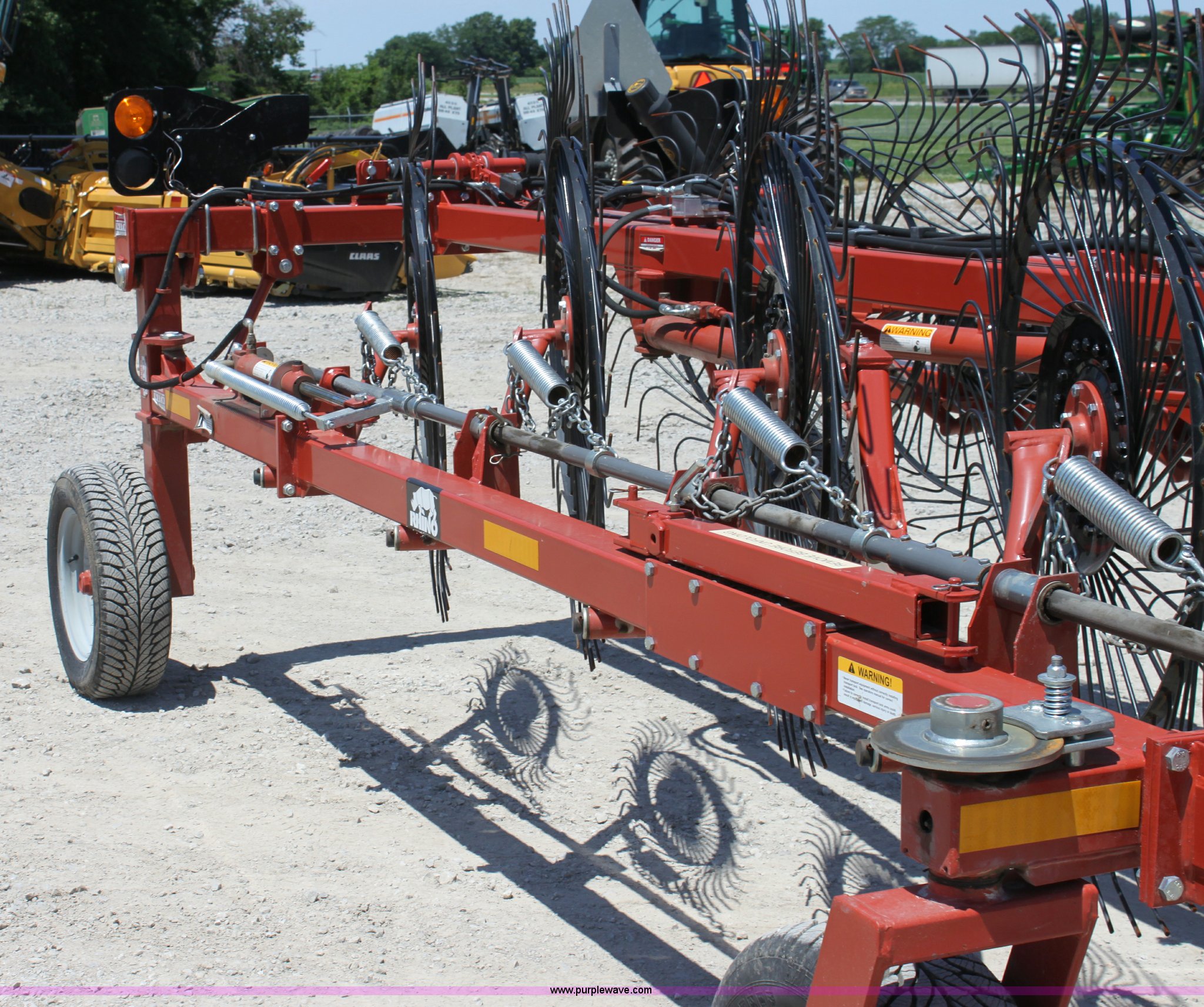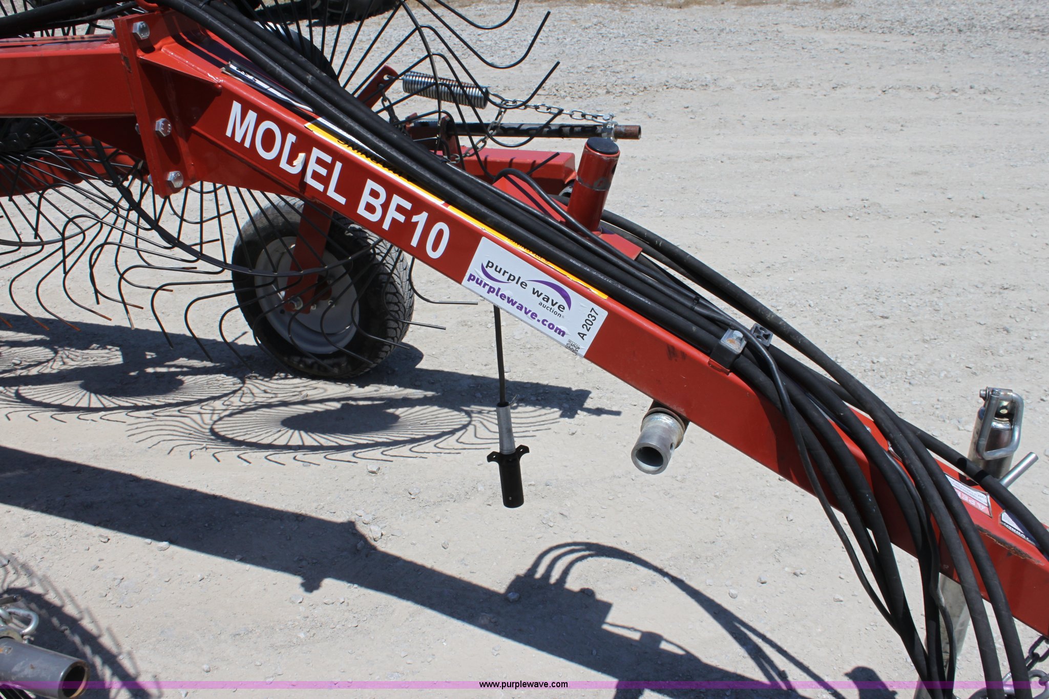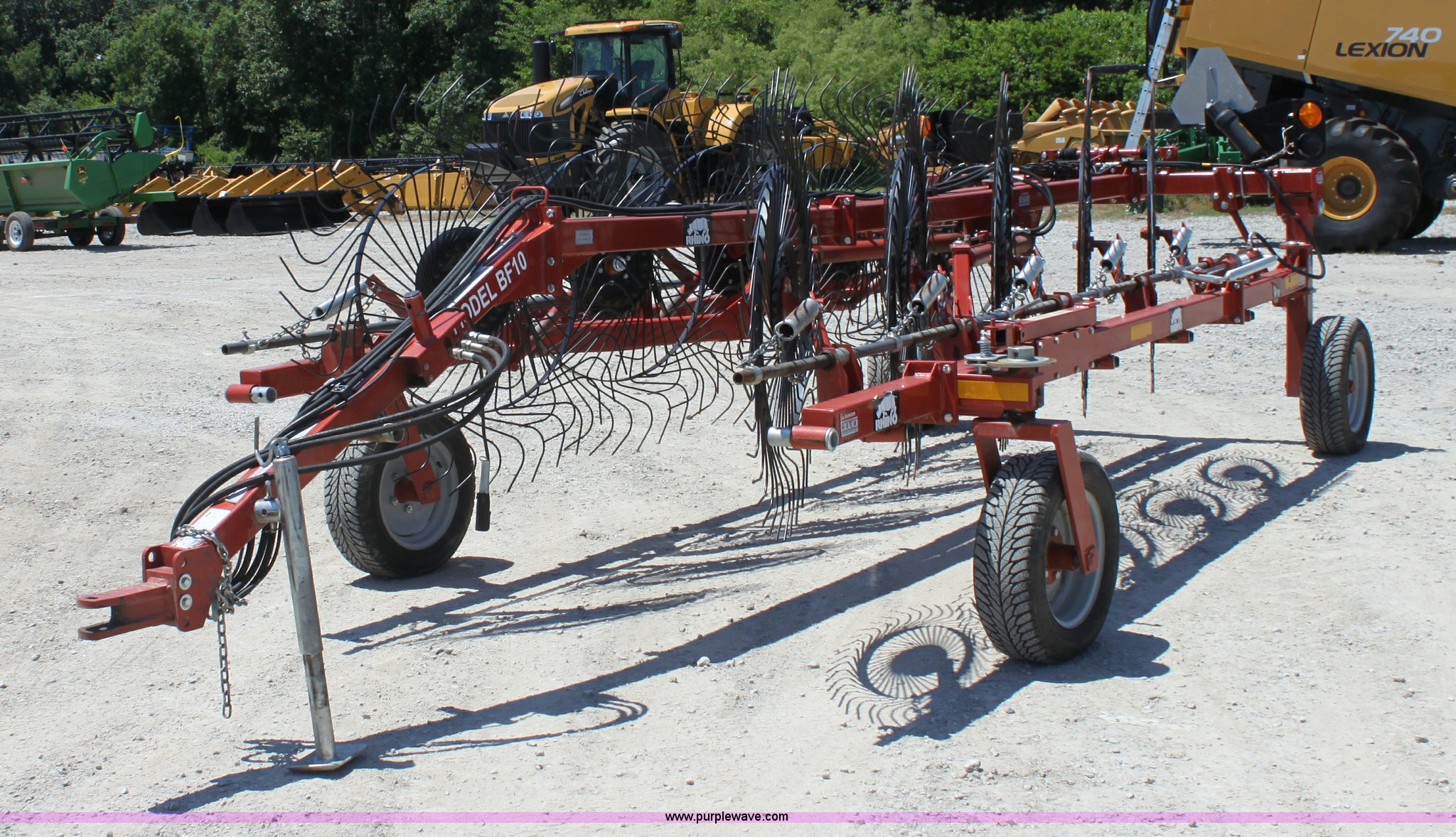 Purple Wave is selling a used Hay Rake in Missouri. This item is a 2009 Rhino BF10 hay rake with the following: 10 wheels, Hydraulic fold and lift, Four wheel carriage, Pin hitch, 205/65R15 tires, Serial 209116, ID 08F773