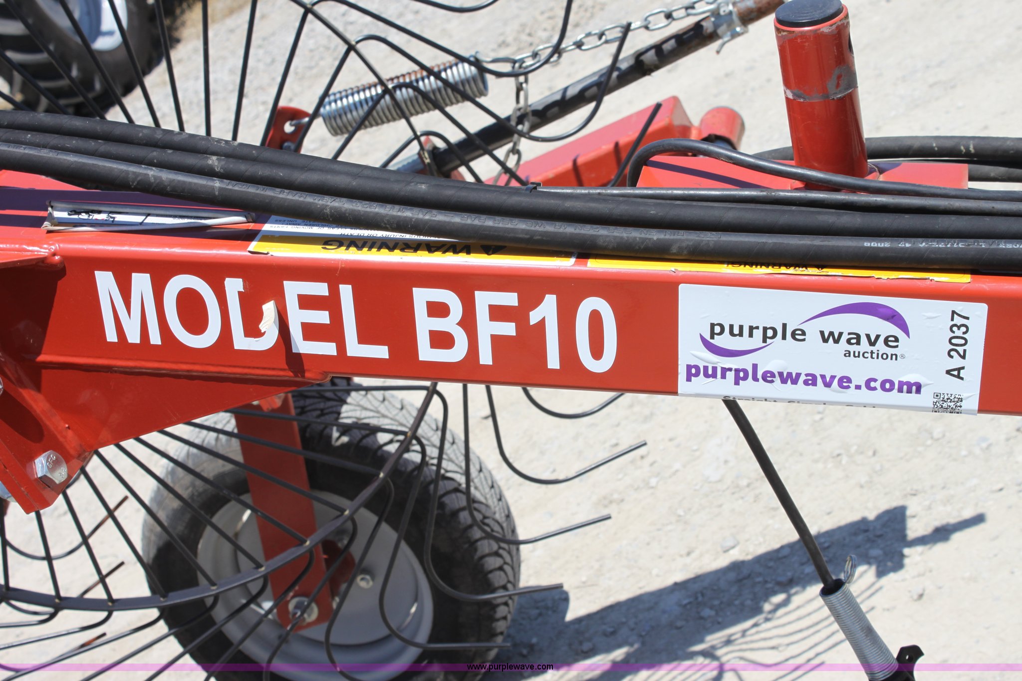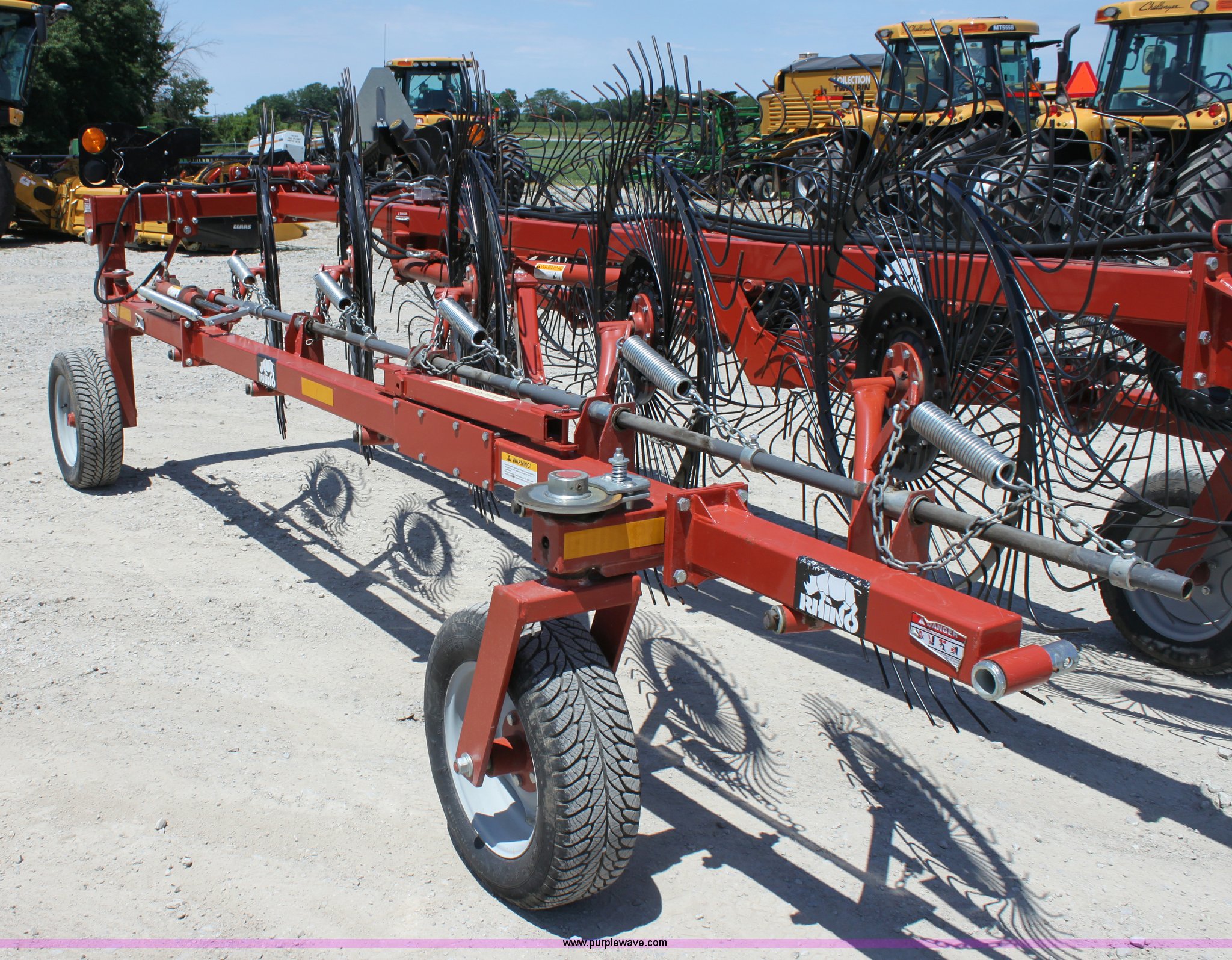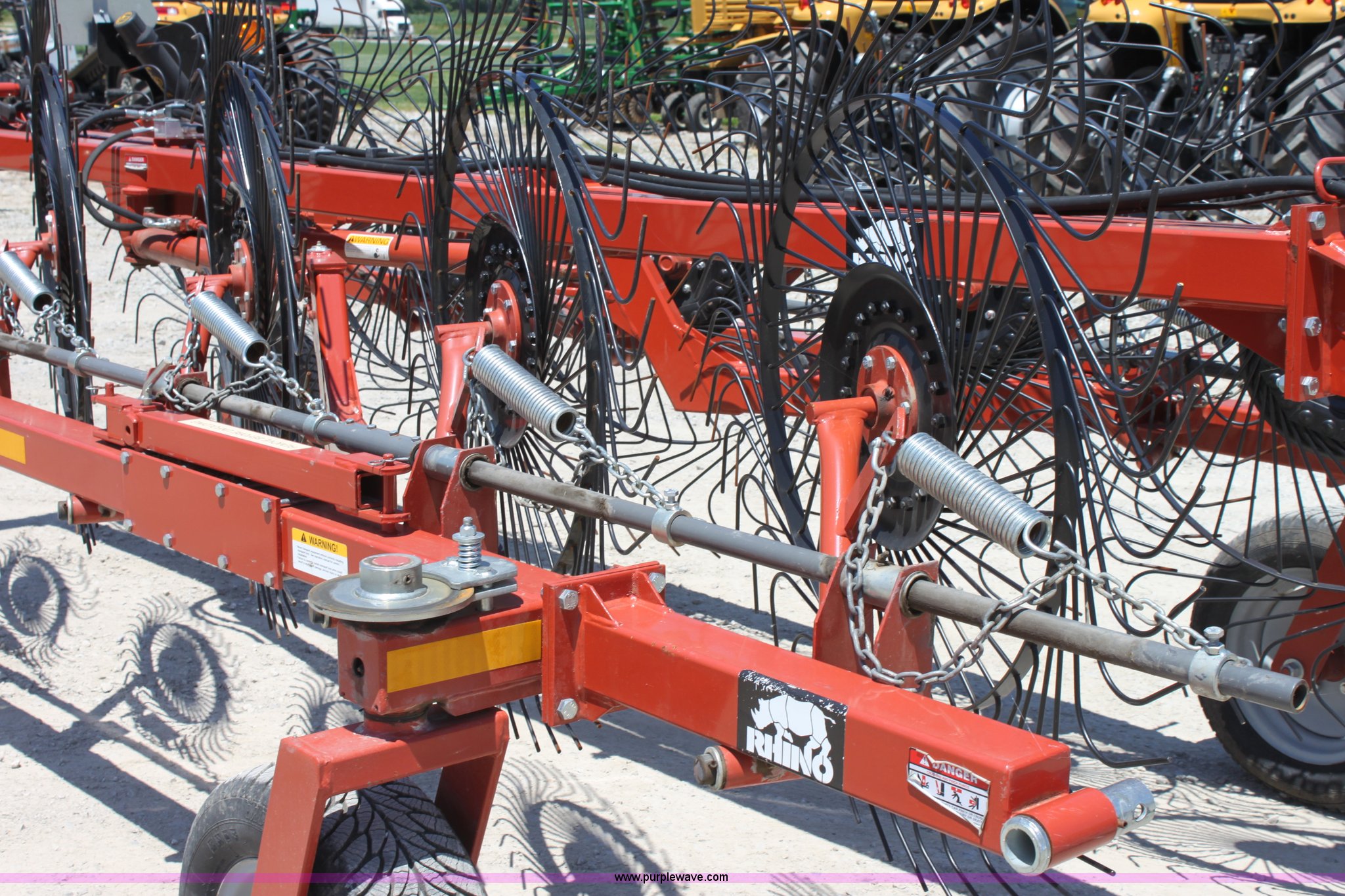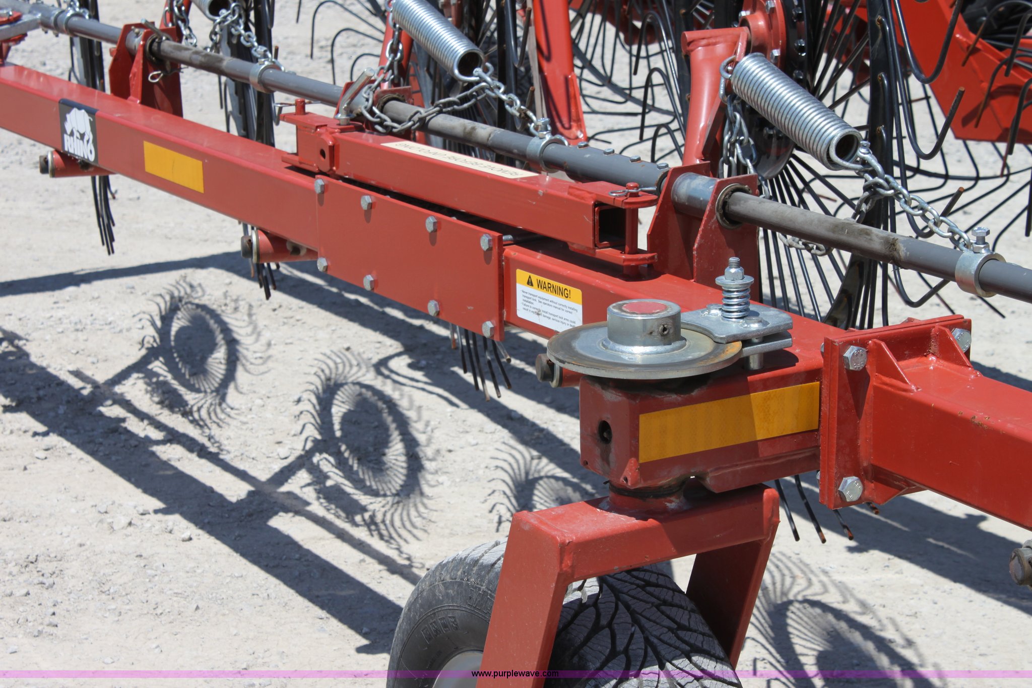Purple Wave is selling a used Hay Rake in Missouri. This item is a 2009 Rhino BF10 hay rake with the following: 10 wheels, Hydraulic fold and lift, Four wheel carriage, Pin hitch, 205/65R15 tires, Serial 209116, ID 08F773