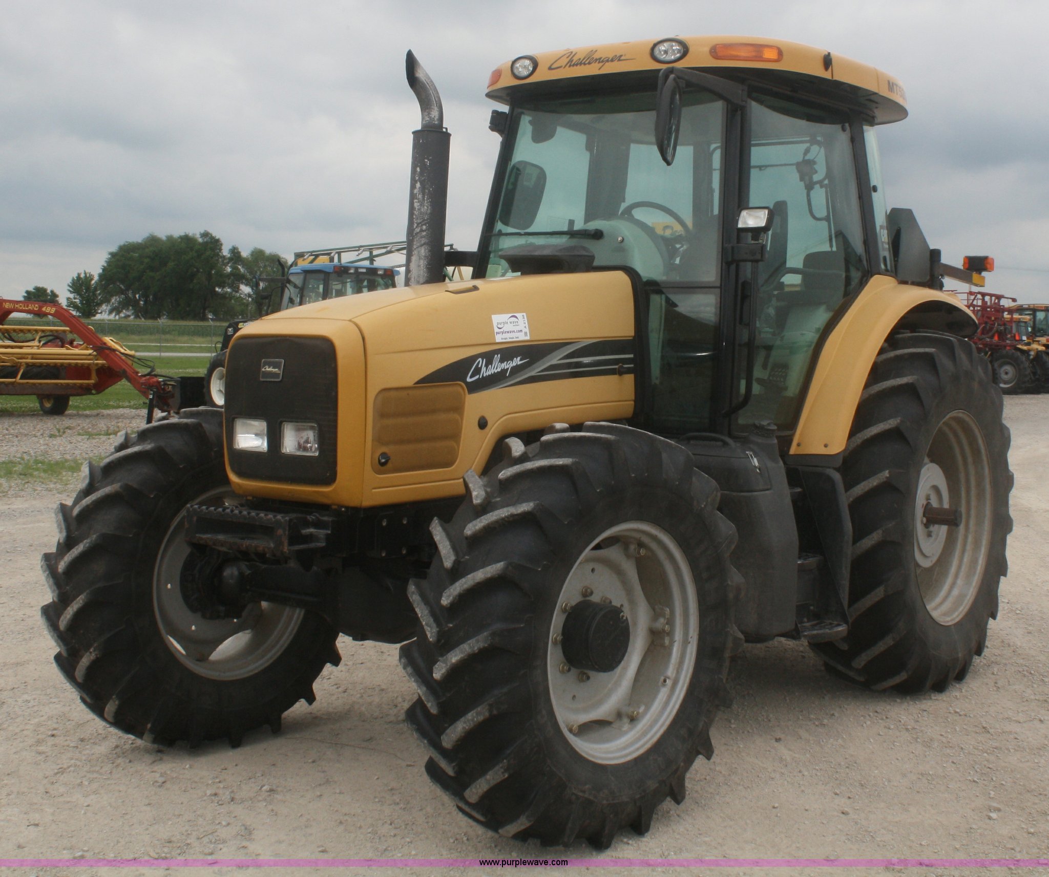 Purple Wave is selling a used Tractor in Missouri. This item is a 2006 Caterpillar Challenger MT535B MFWD tractor with the following: 218 hours on meter, 978 actual hours, Perkins 5.9L six cylinder engine, 105 PTO HP, Auto Power 6 transmission, 32 forward and reverse gears, AC and heat, AM/FM/CD, Suspension seat, Buddy seat, 540 PTO, Three point hitch, Draw bar, (4) hydraulic remote sets, Radar, 18.4R38 rear tires, 14.9R28 front tires, Serial P004124, ID 06F080