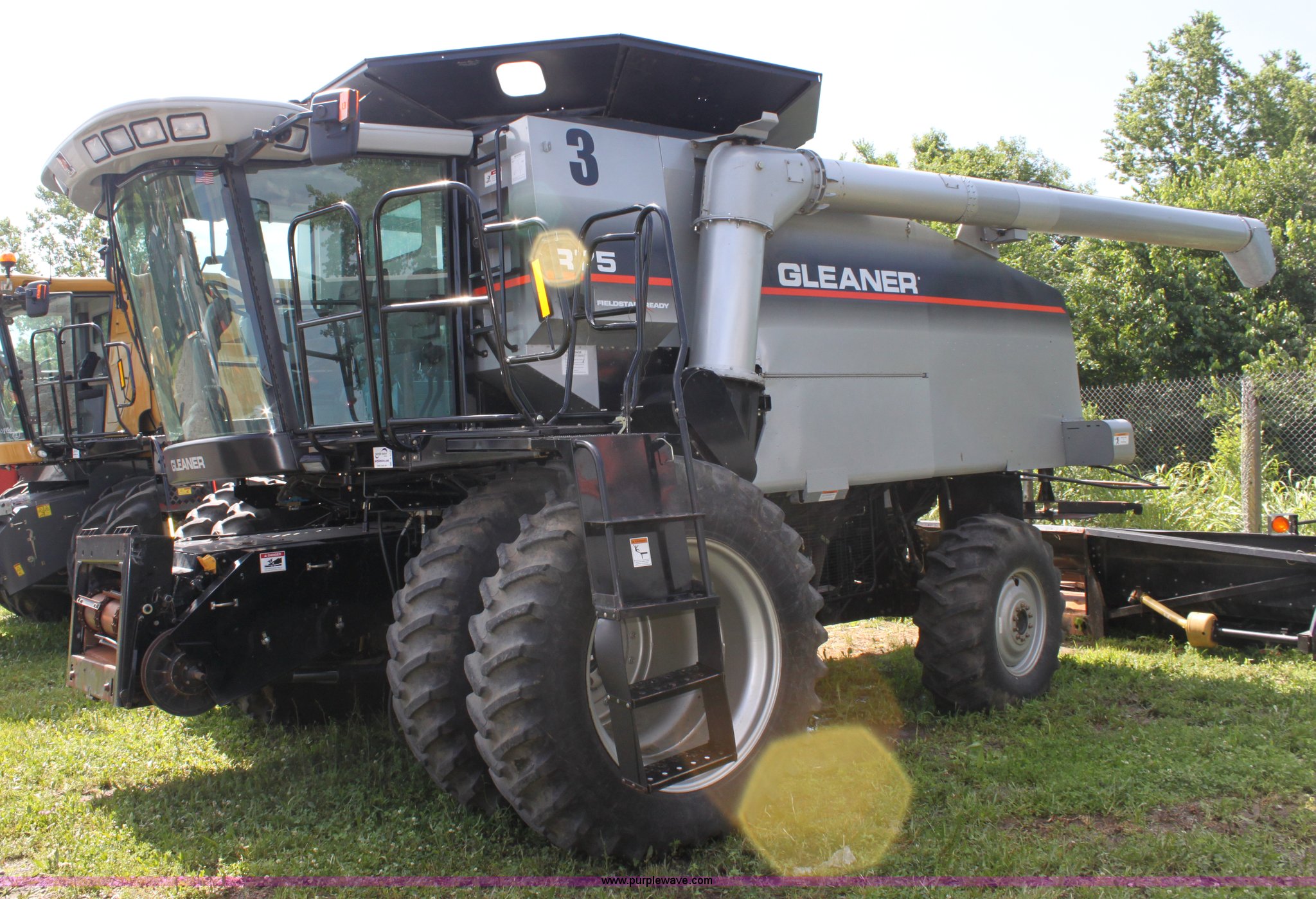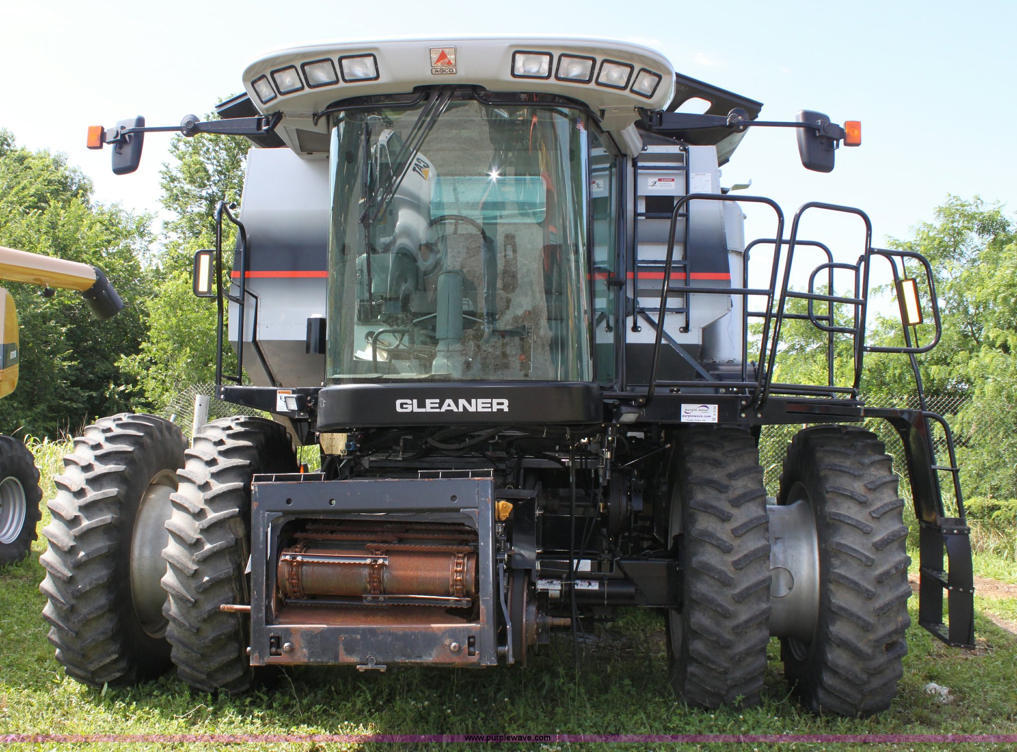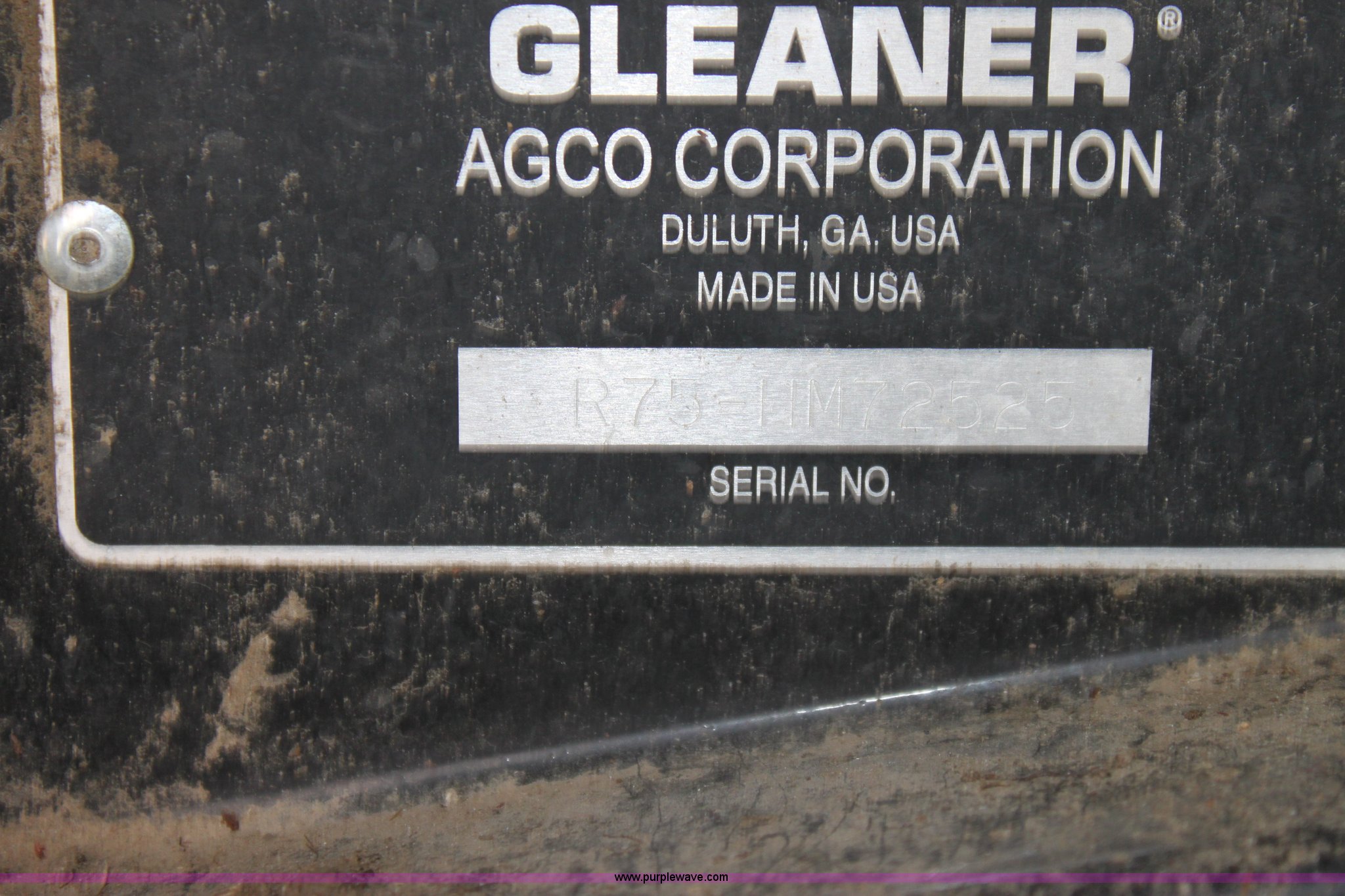 Purple Wave is selling a used Combine in Missouri. This item is a 2003 AGCO Gleaner R75 RWA combine with the following: 2,032 engine hours on meter, 1,375 separator hours on meter, Cummins M11 10.8L six cylinder diesel engine, Four speed hydrostatic transmission, Rear wheel assist, AC and heat, AM/FM, Field star monitor, Yield, moisture, and grain loss monitors, Maurer bin extensions, 18.4R42 front tires, duals, 18.4-26 rear tires, Serial HM72525, ID 10S122